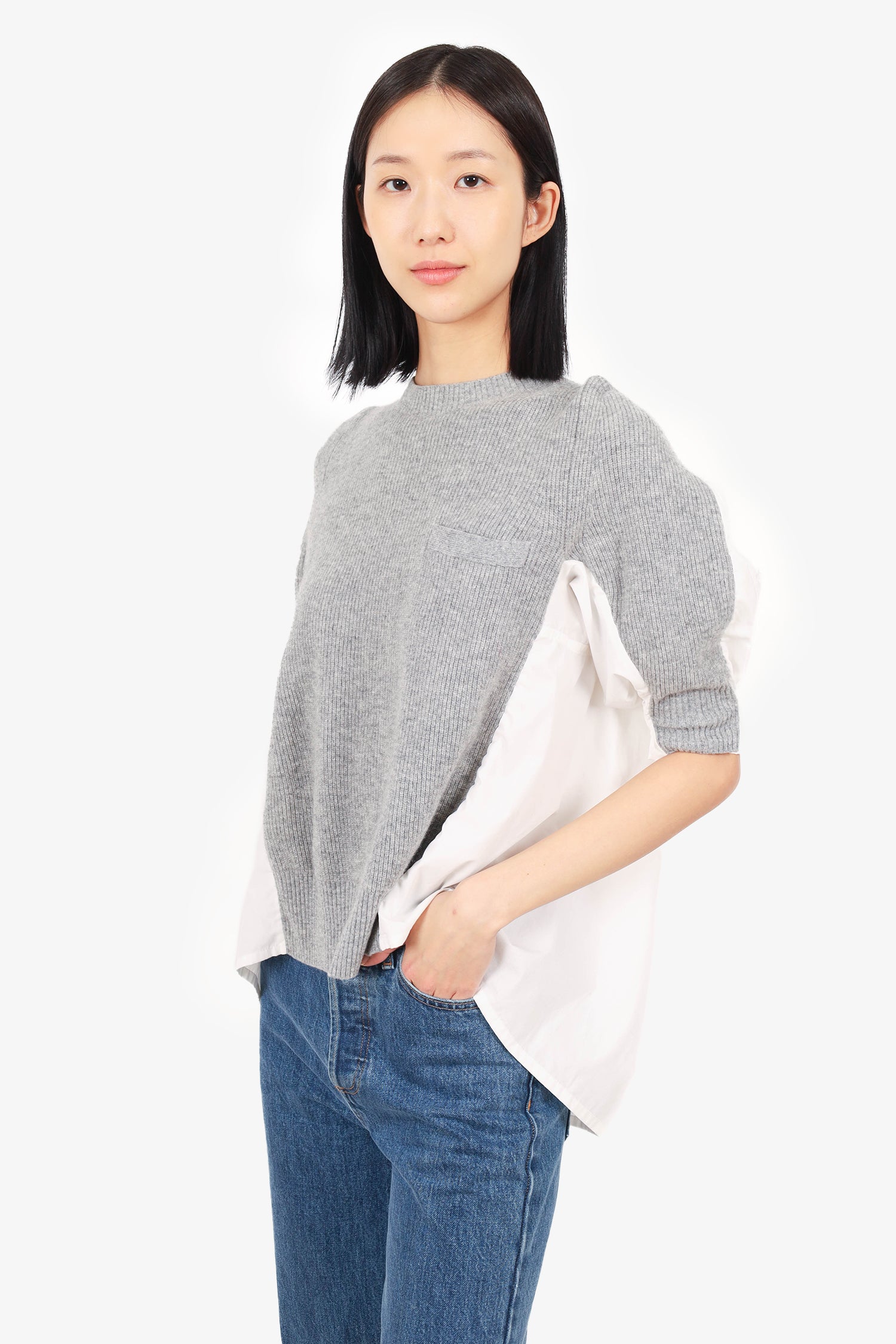 Sacai Grey/Wool Wool Knit Front 3/4 Sleeve Blouse Size 1