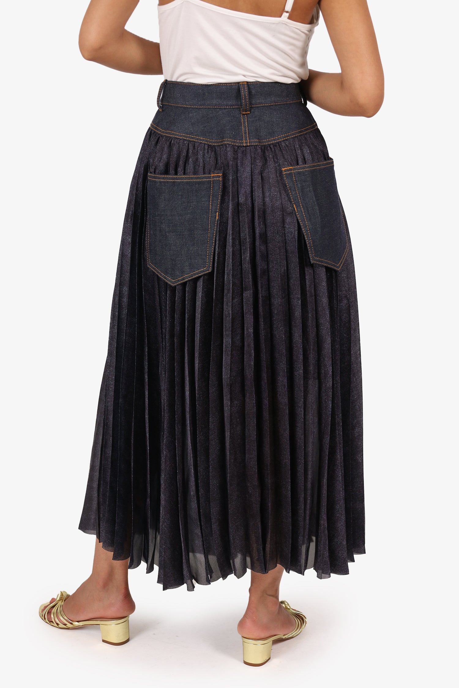 Sacai Navy Denim Trimmed Pleated Midi Wrap Skirt Size 2