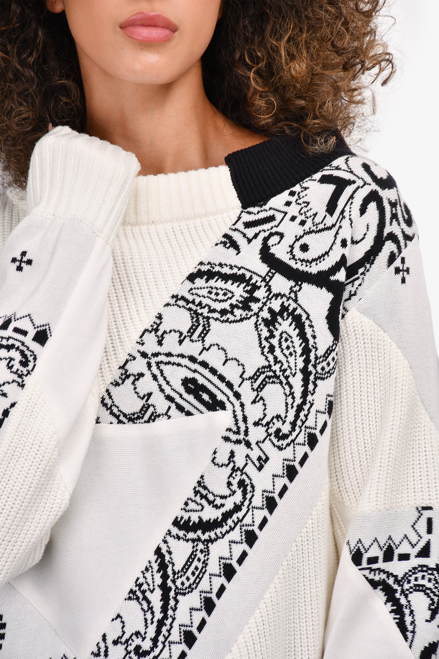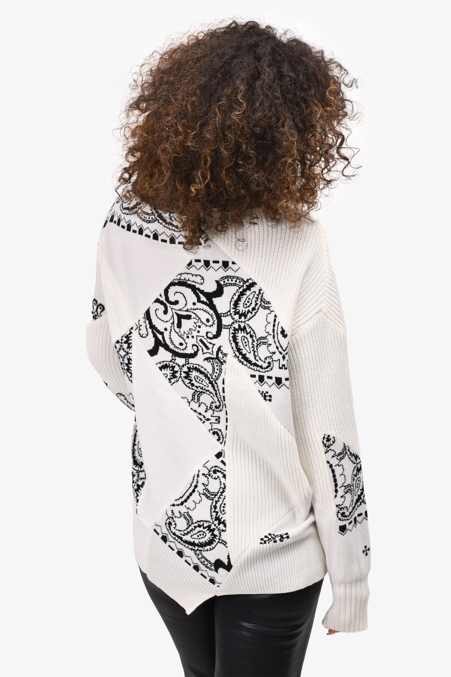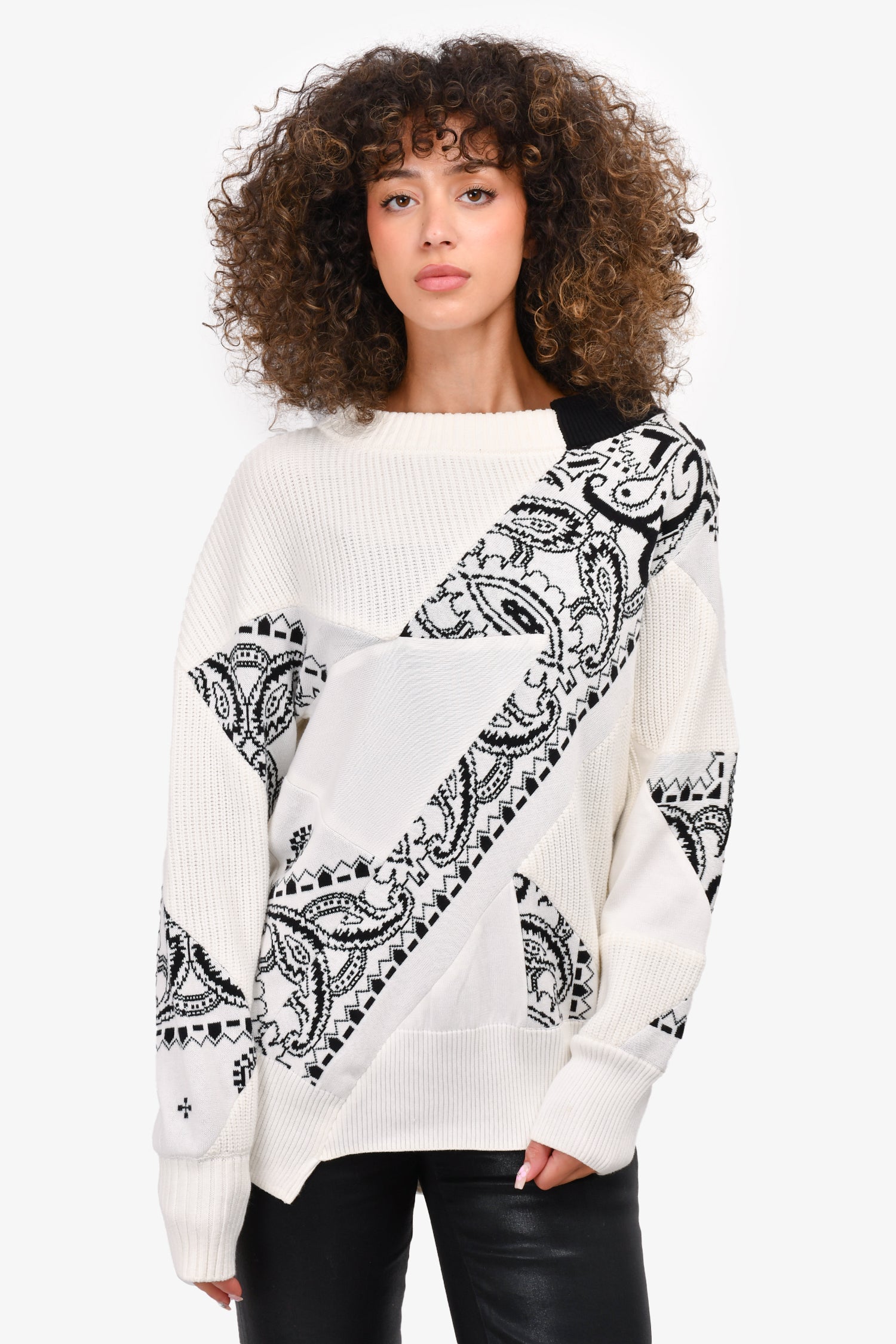 Refresh availabilitySacai White Cotton Blend Bandana Pattern Sweater. Slip on. Tonal Stitching.