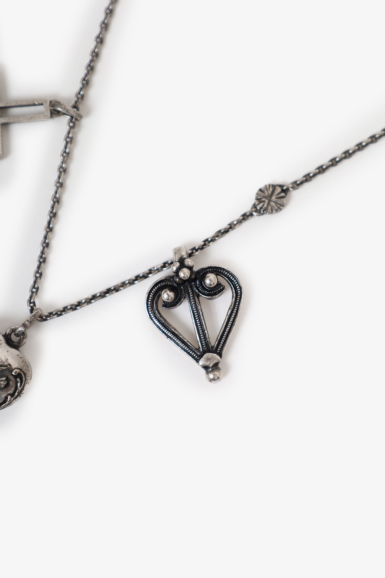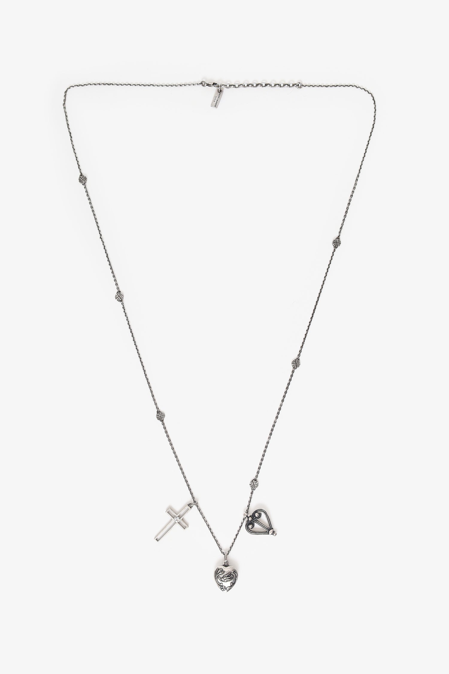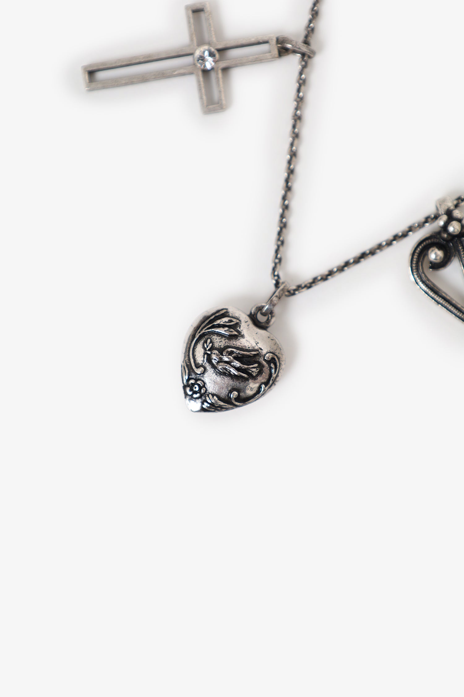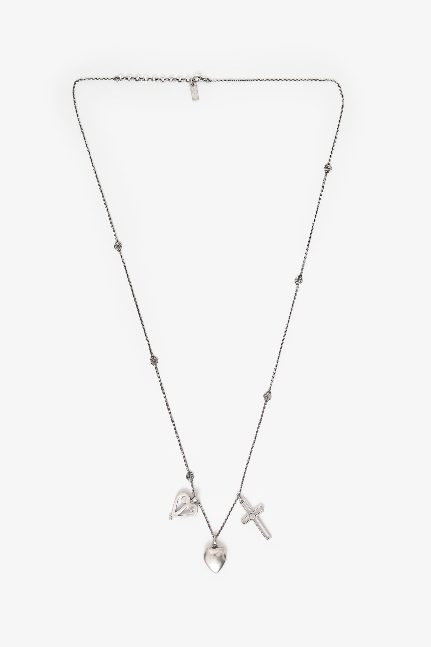 Saint Lauren Silver Tone Cross/Heart Long Necklace