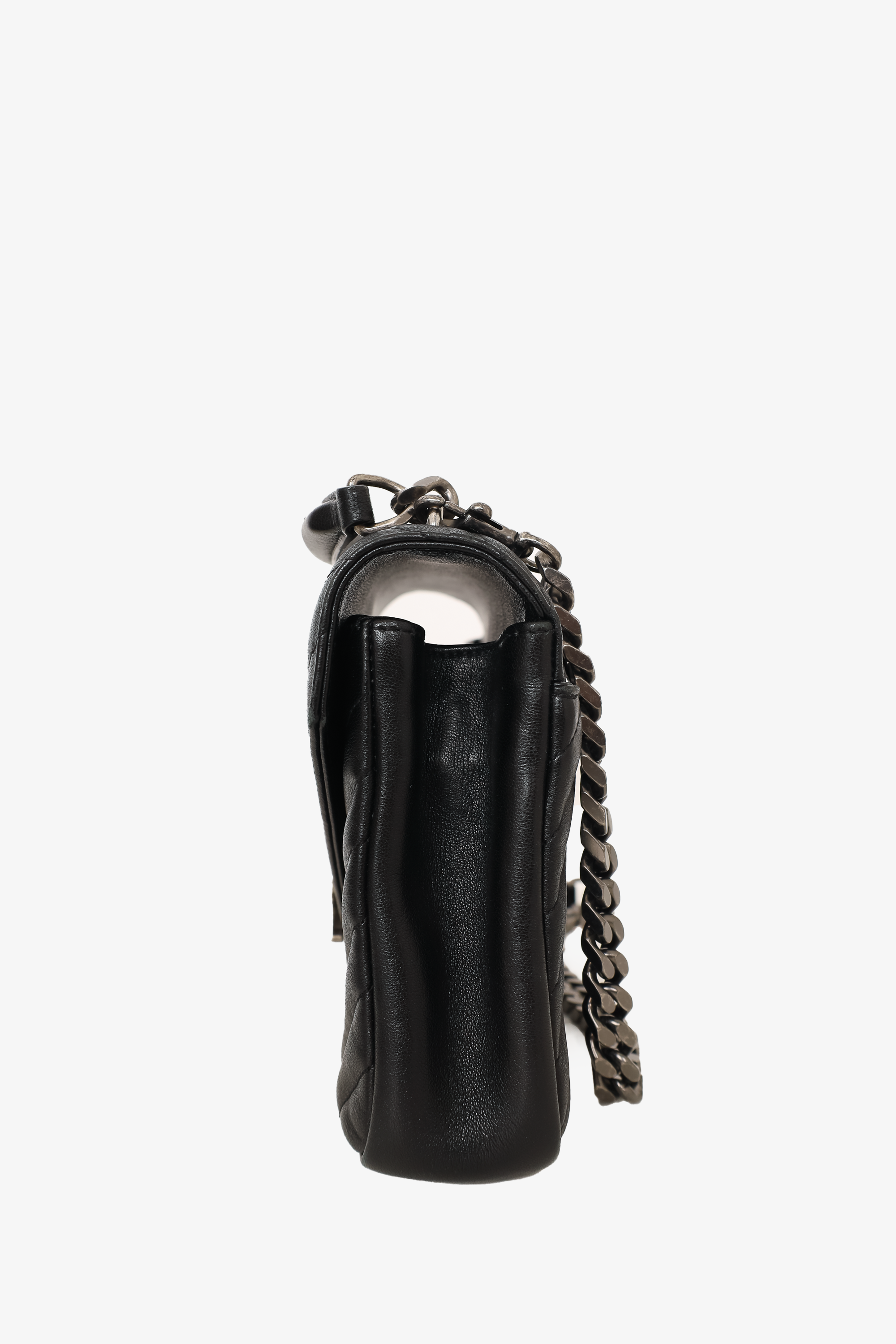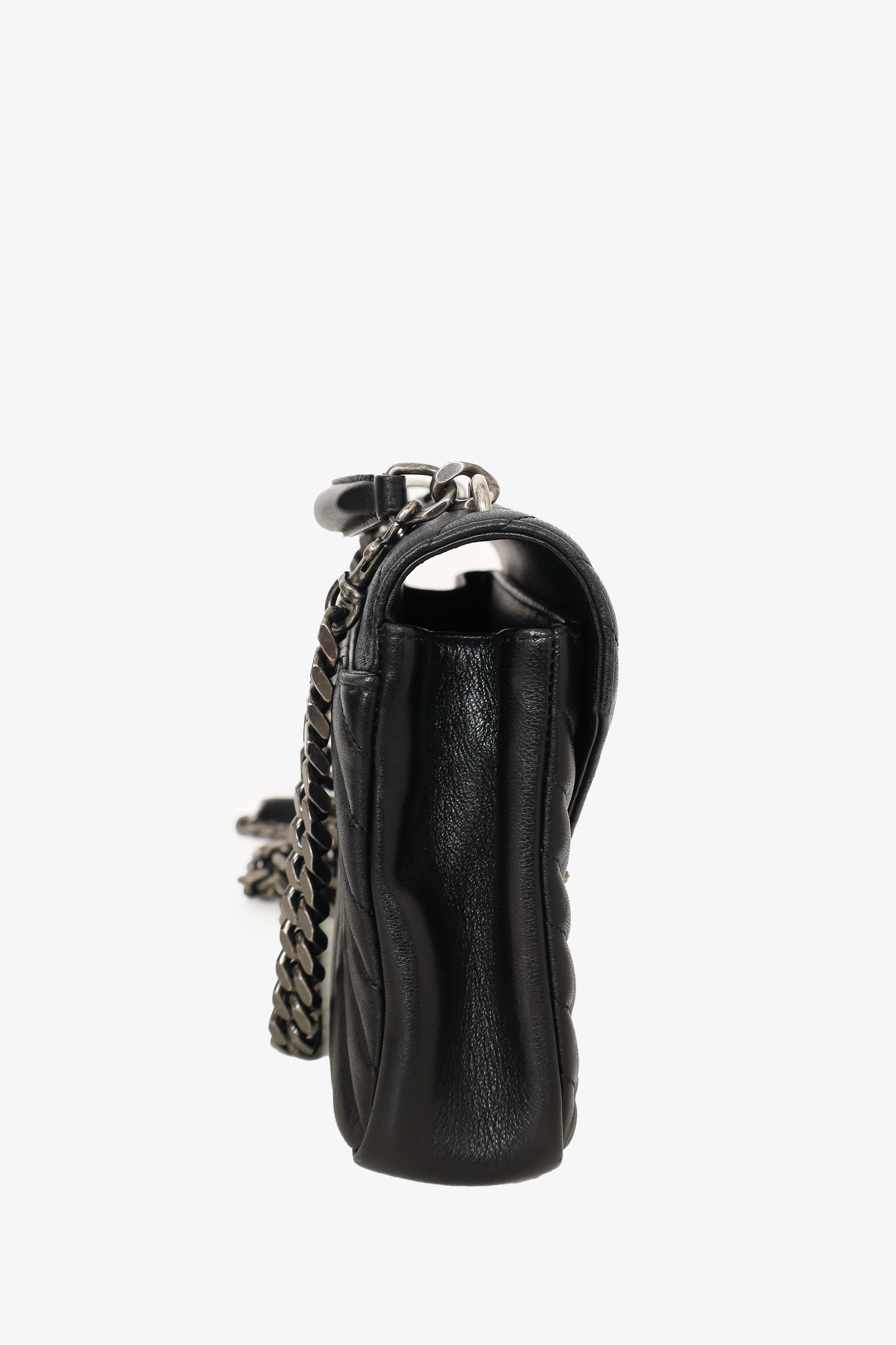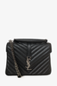 Saint Laurent 2017 Black Leather Chevron Medium College Crossbody Bag