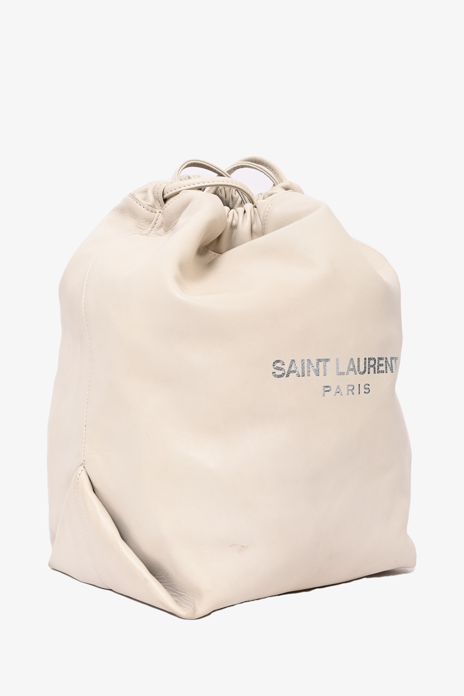 Saint Laurent 2019 Light Grey Leather 'Teddy' Bucket Bag With Suede Pouch