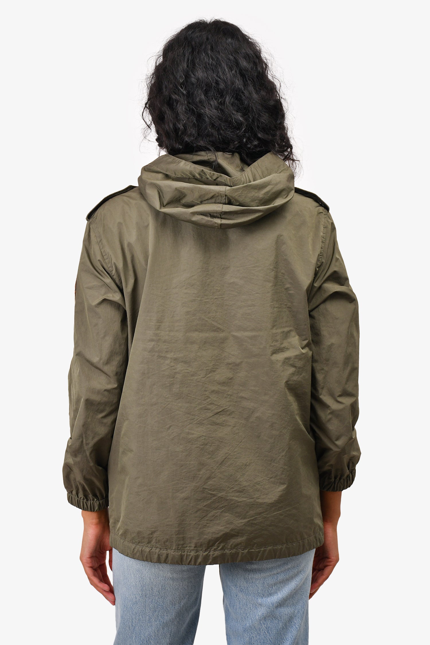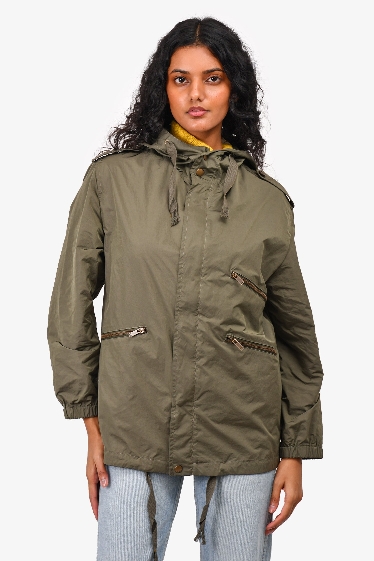Refresh availabilitySaint Laurent Army Green Lightweight Jacket. Elasticated cuffs. Zipped fastening with snap closures. Pull tabs by the hood and hemming. Unlined. Tonal stitching.