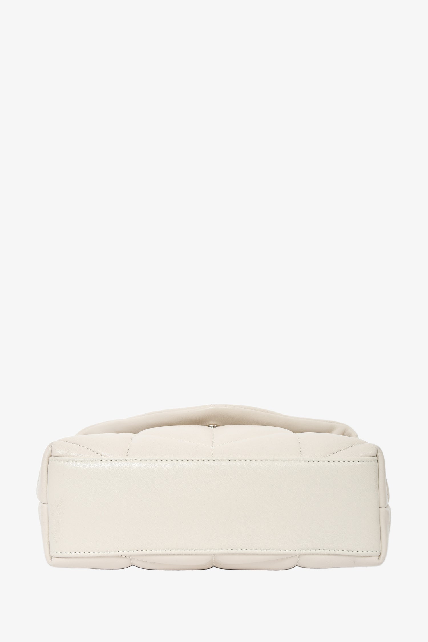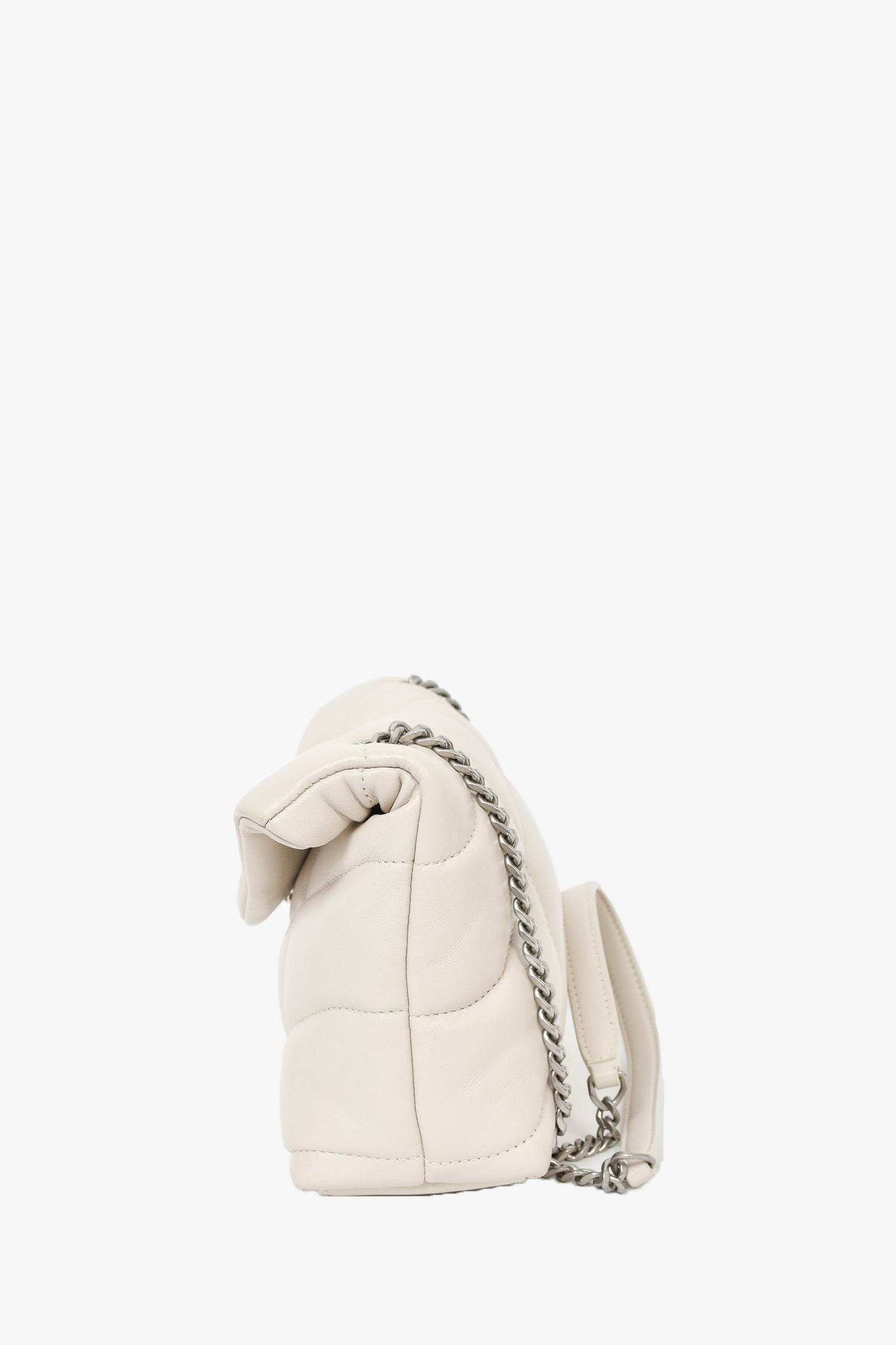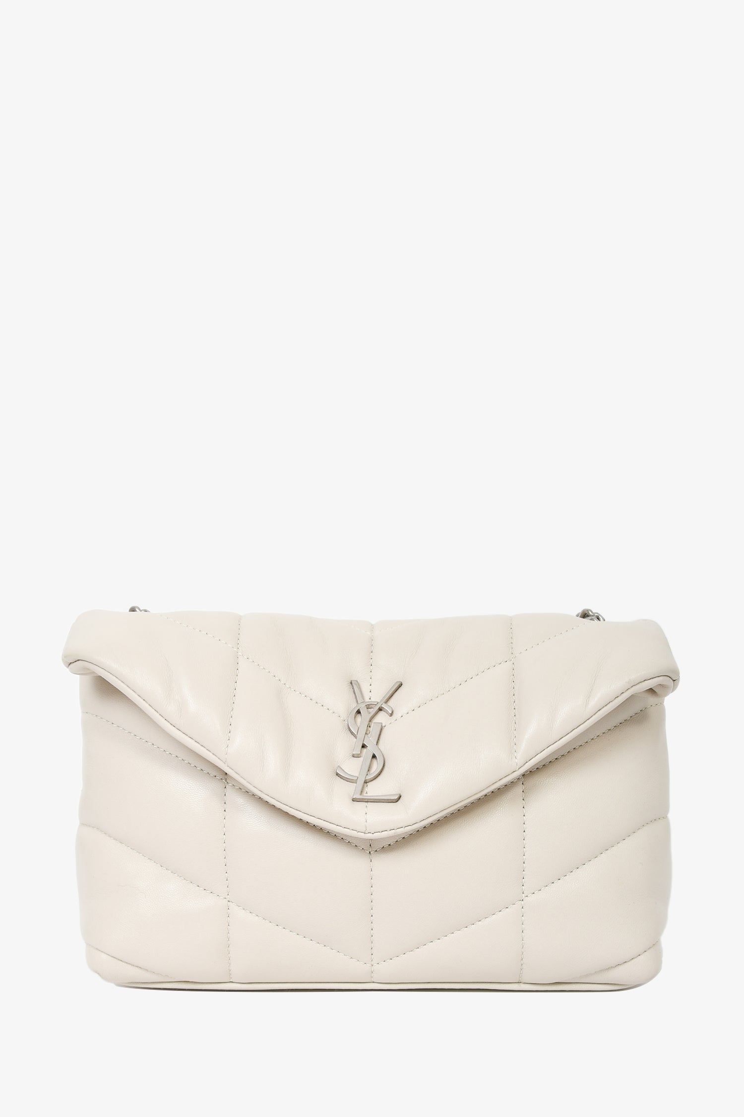 Saint Laurent Beige Leather Quilted Toy Puffer LouLou Shoulder Bag.