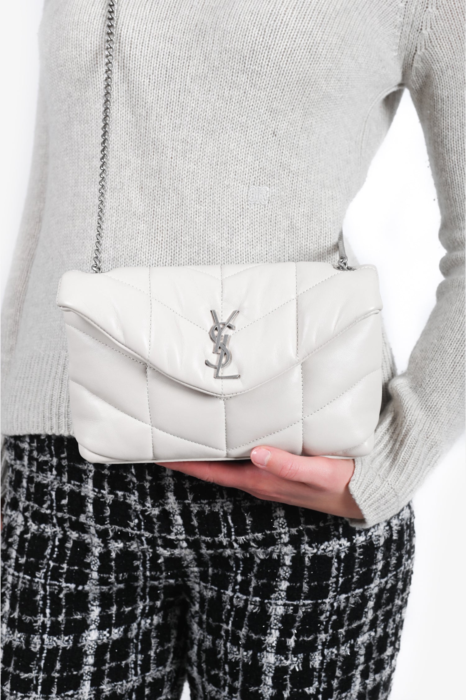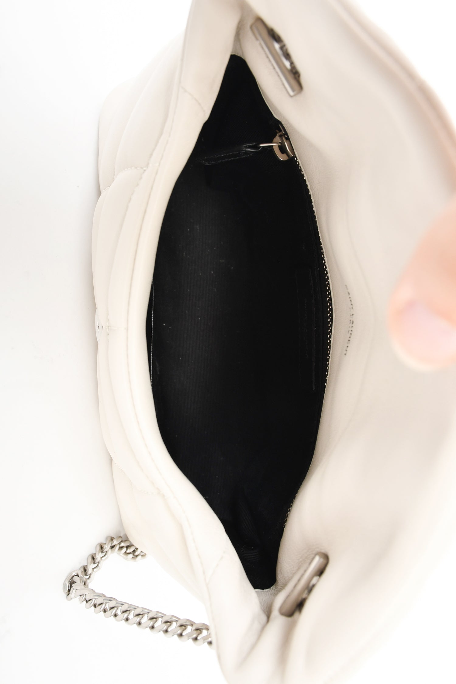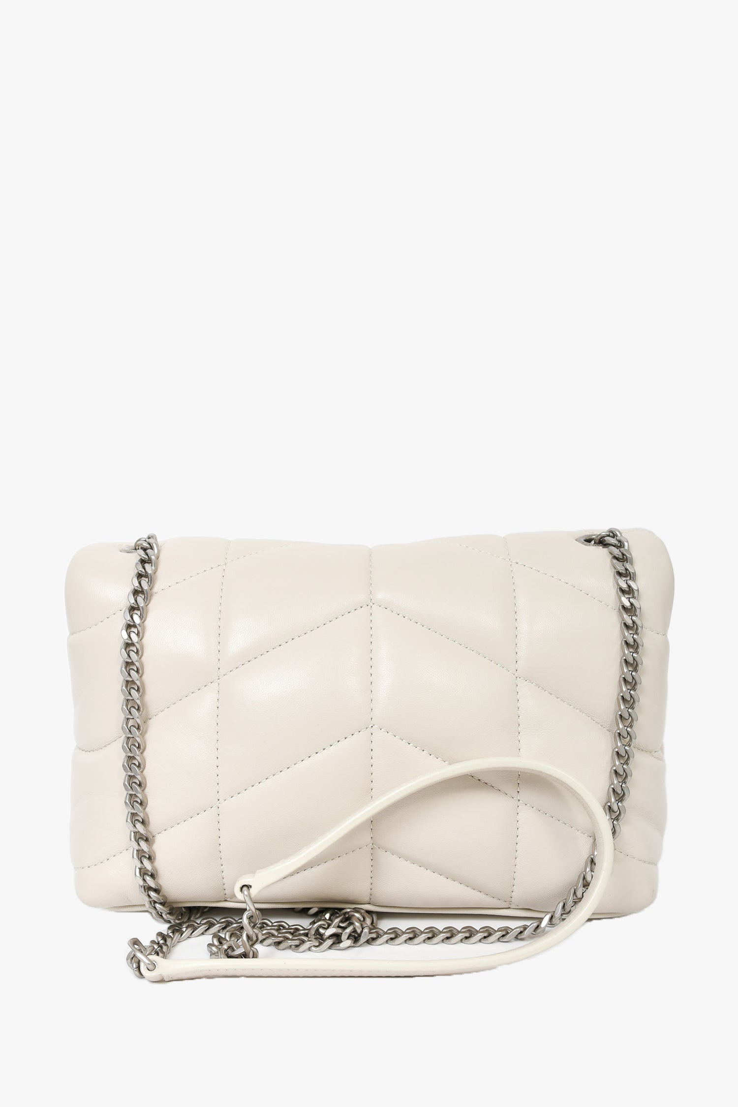 Saint Laurent Beige Leather Quilted Toy Puffer LouLou Shoulder Bag.