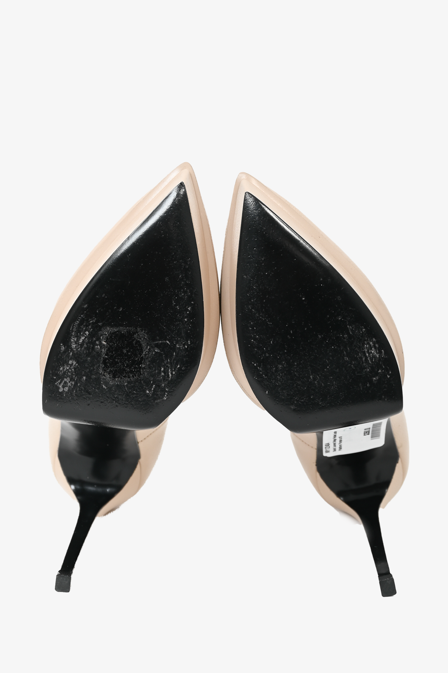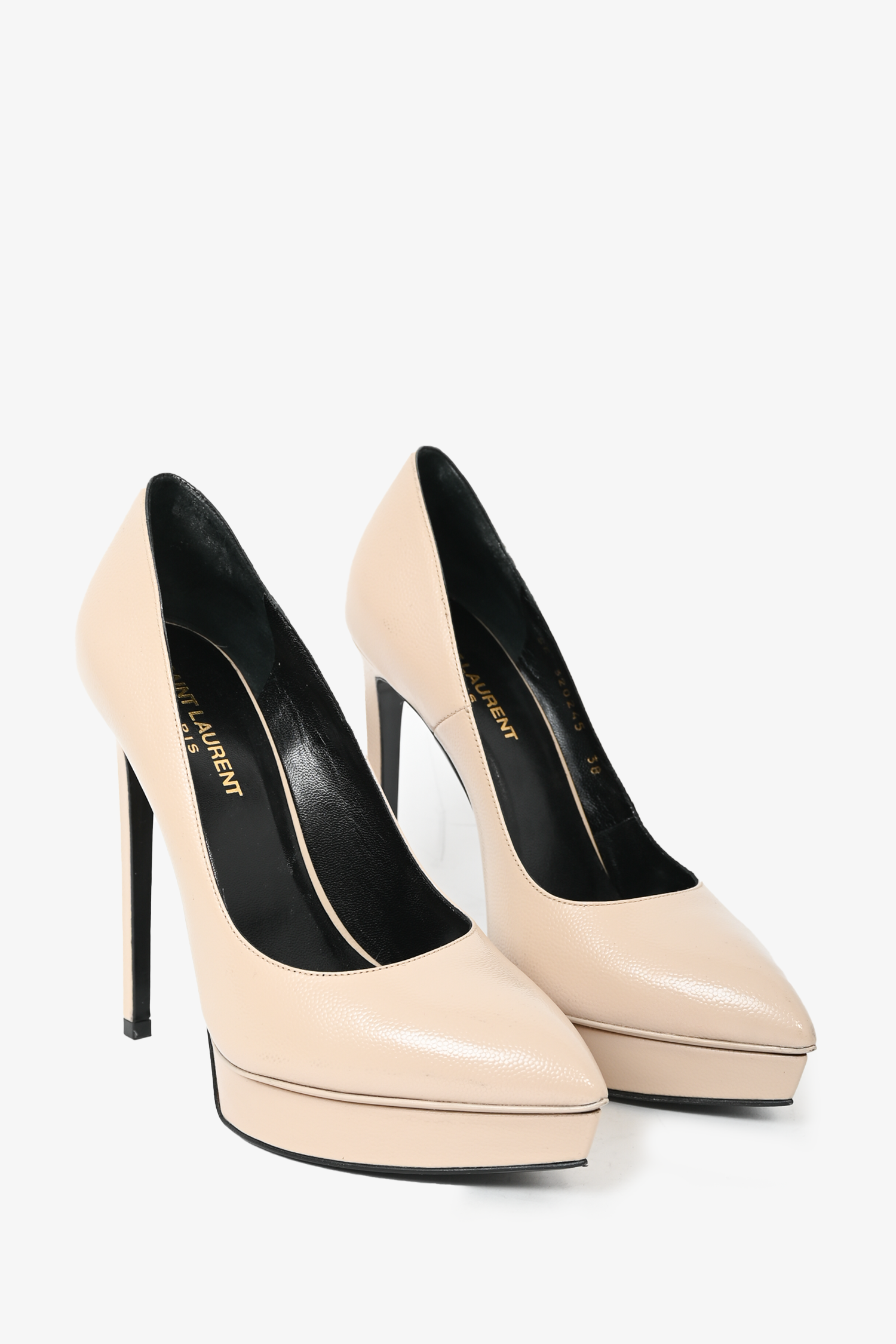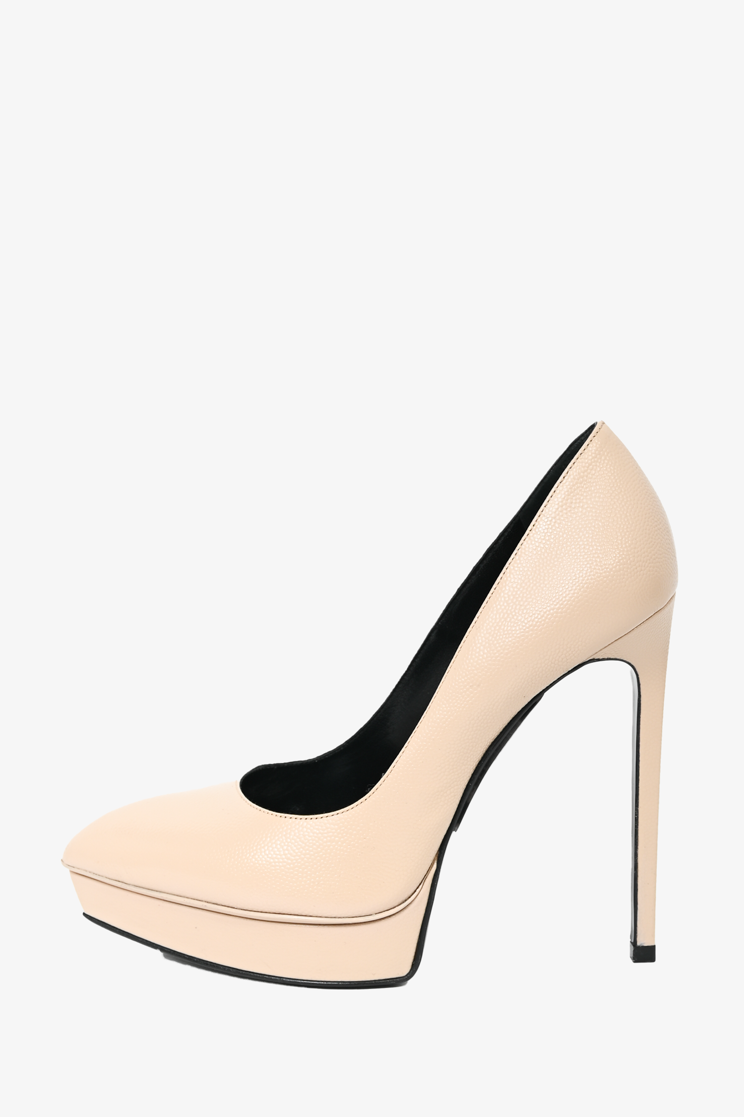 Refresh availabilitySaint Laurent Beige Pebbled Leather Platform Pumps. Pointed toe. Slip on. Tonal stitching.