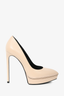 Saint Laurent Beige Pebbled Leather Platform Pumps Size 38