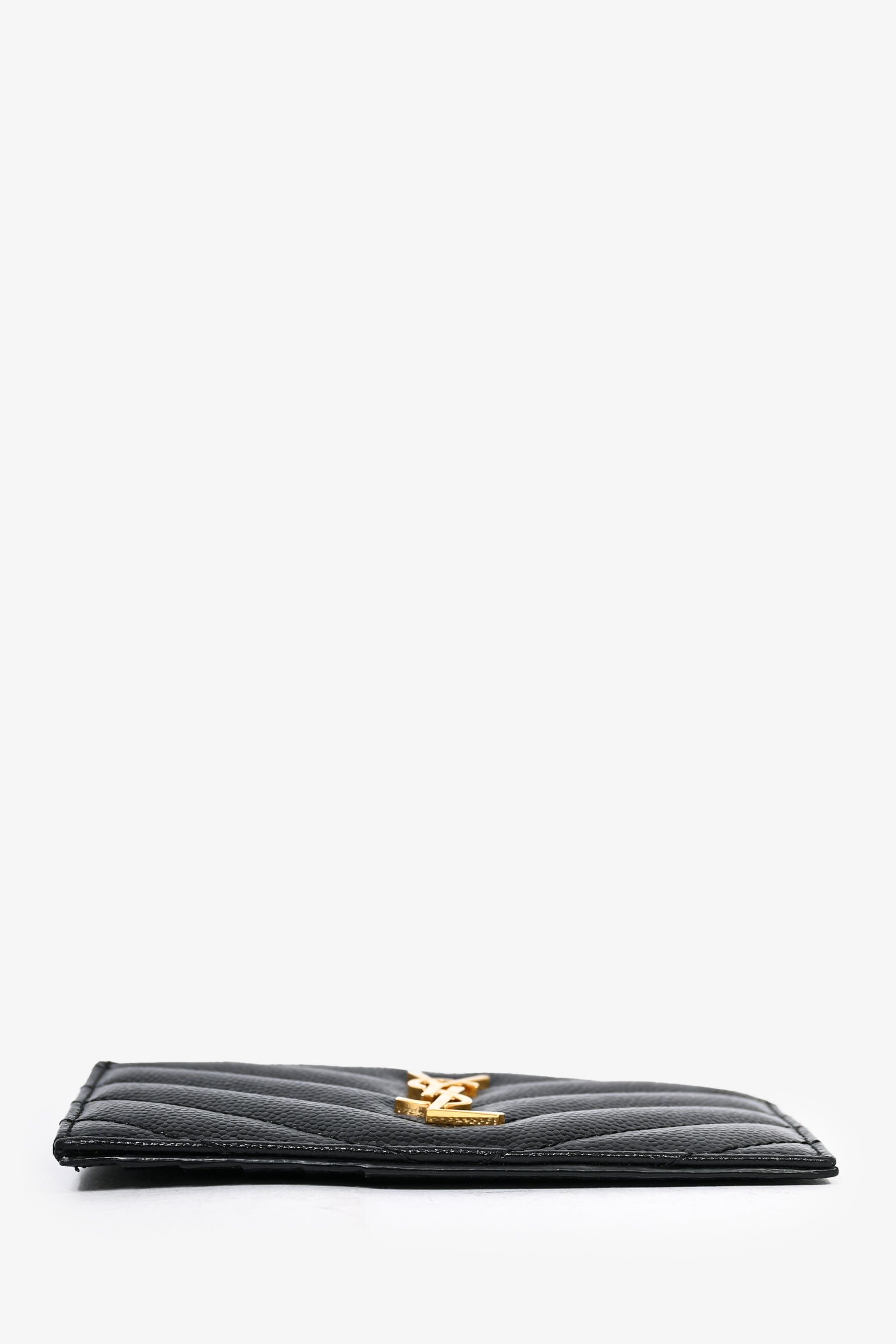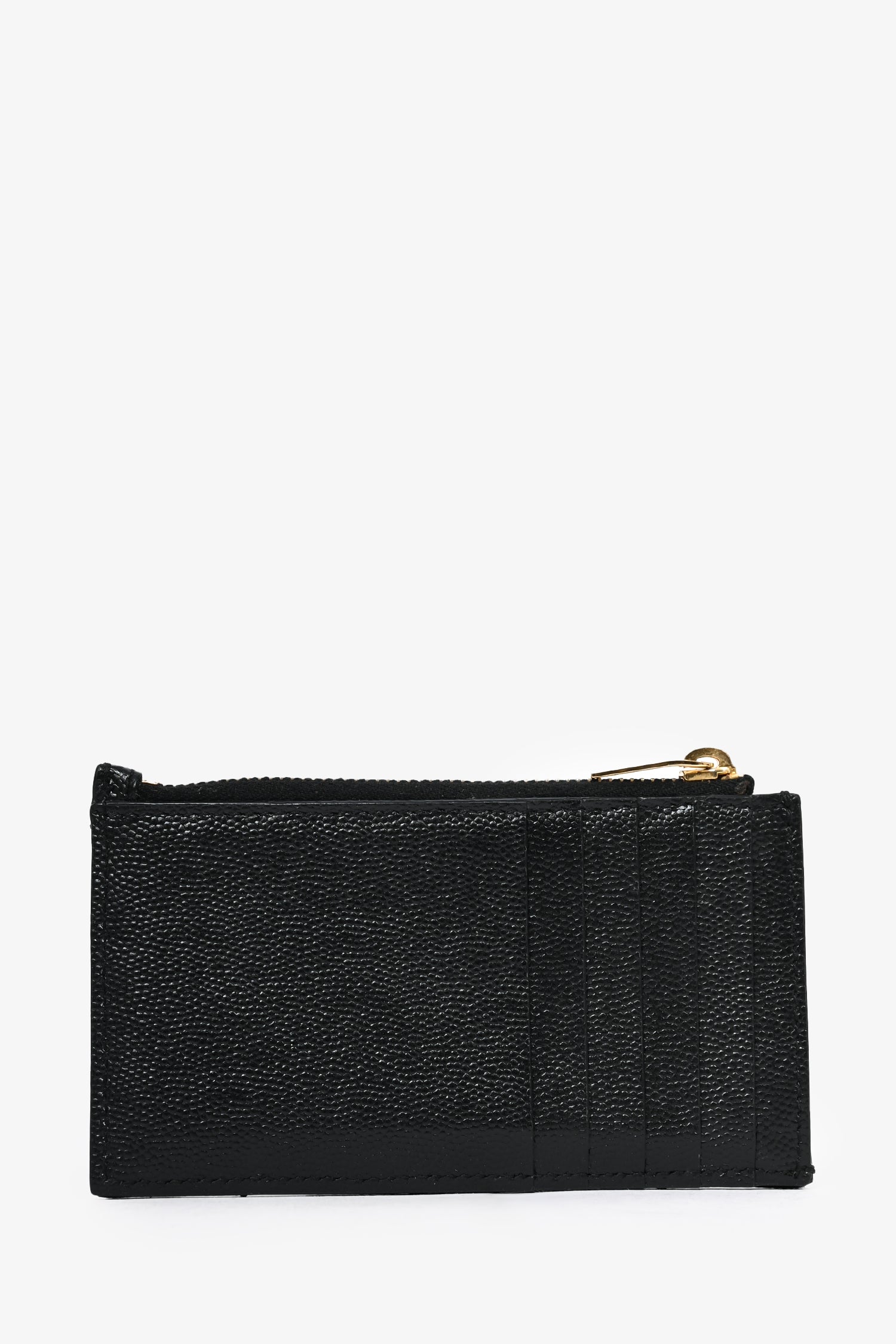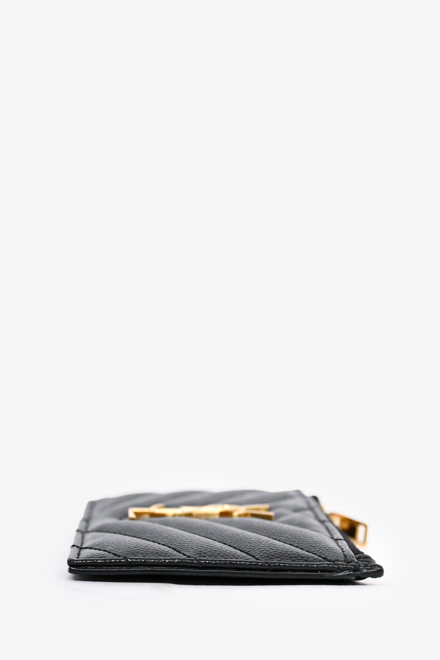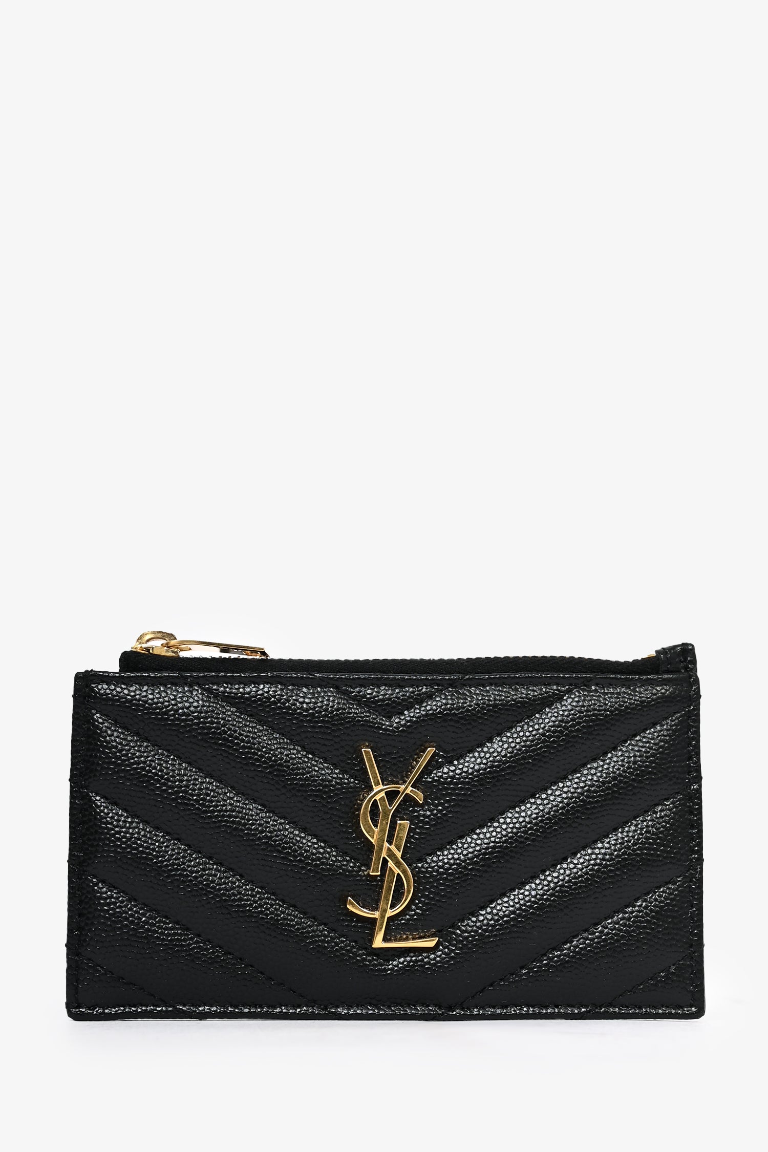 Refresh availabilitySaint Laurent Black Chevron Zip Card Holder. 5 exterior rear card slots. Top zip closure. Gold-tone hardware.
