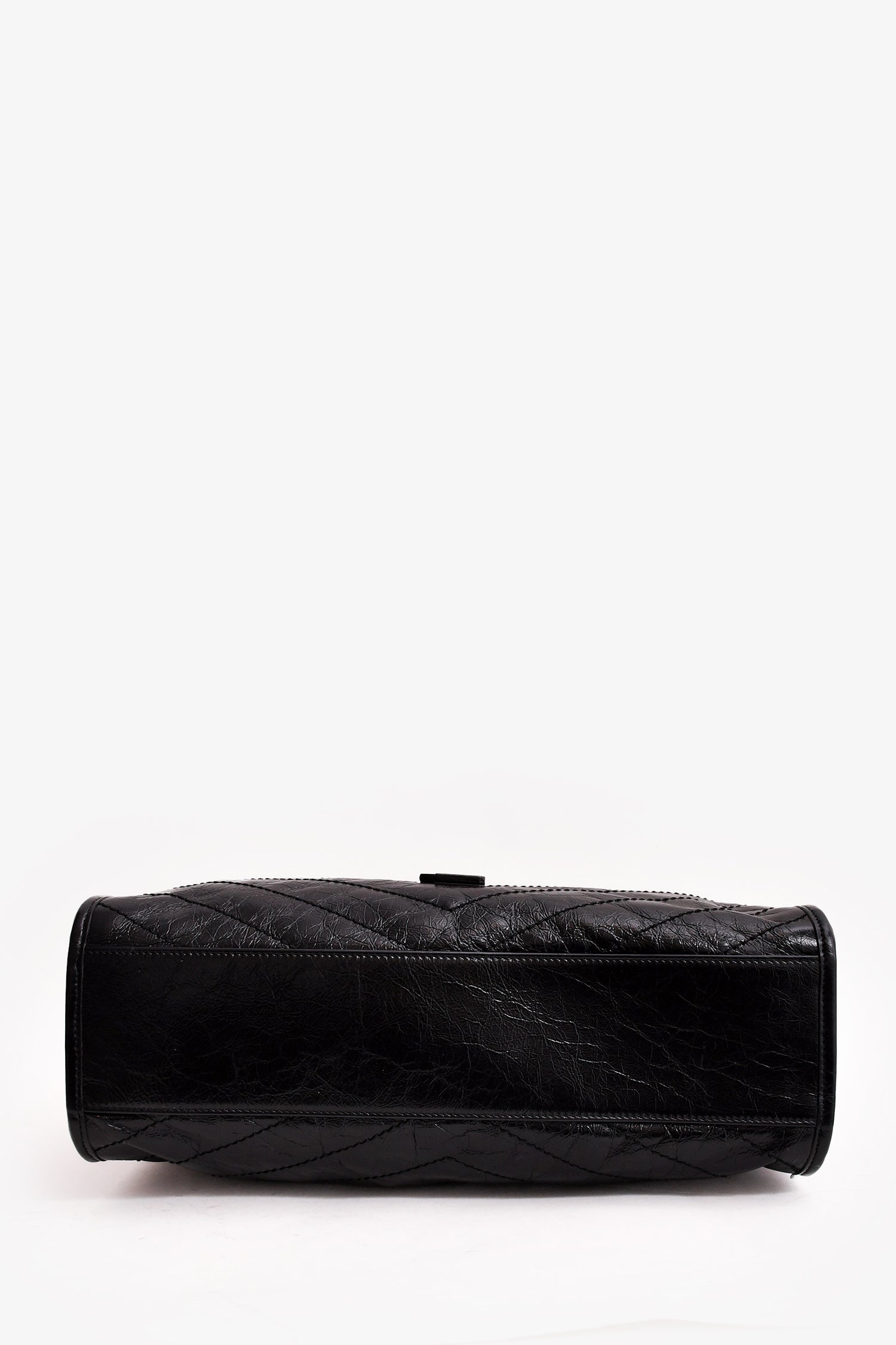 Saint Laurent Black Crinkled Leather Large 'Niki' Shoulder Bag