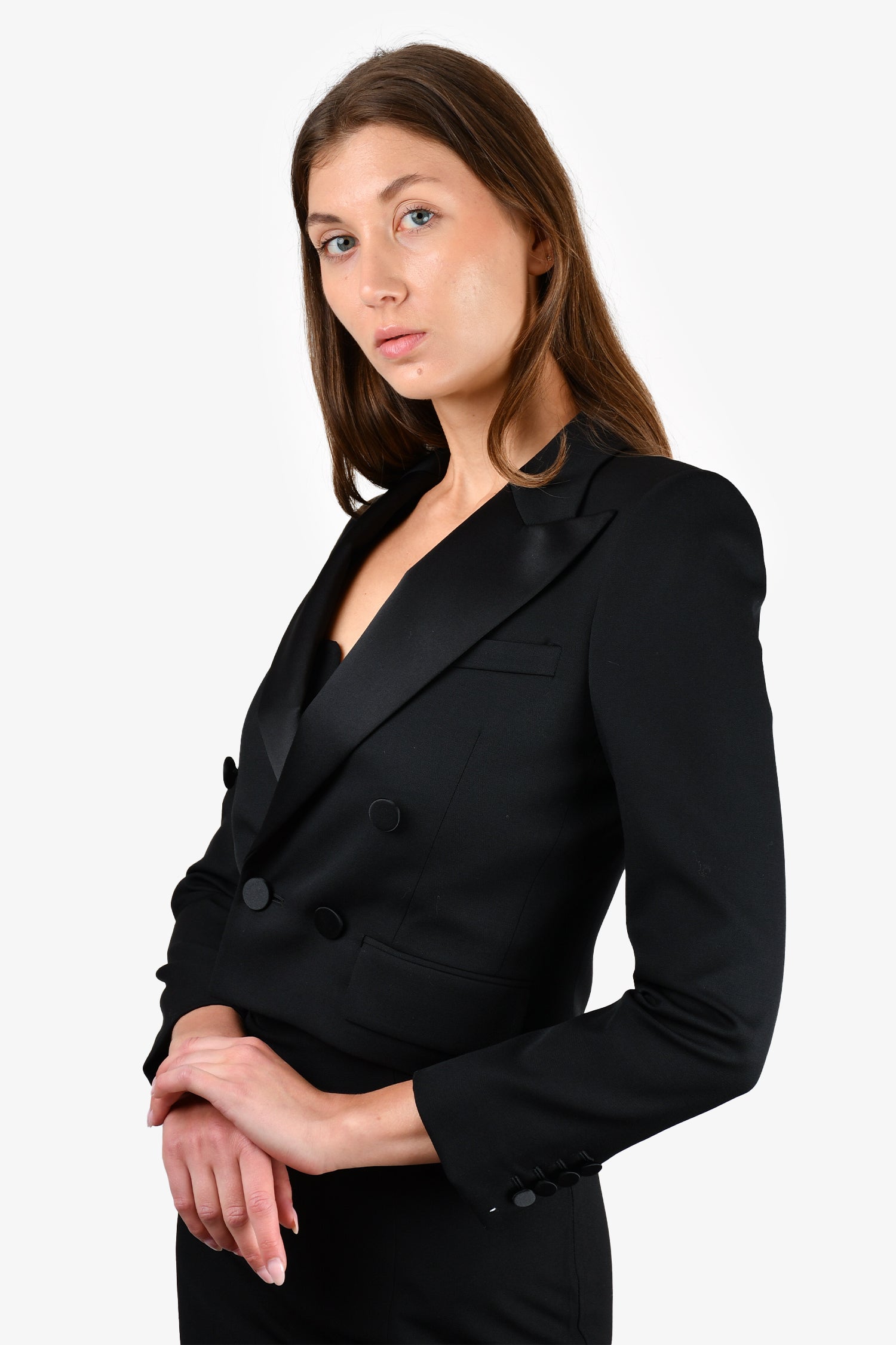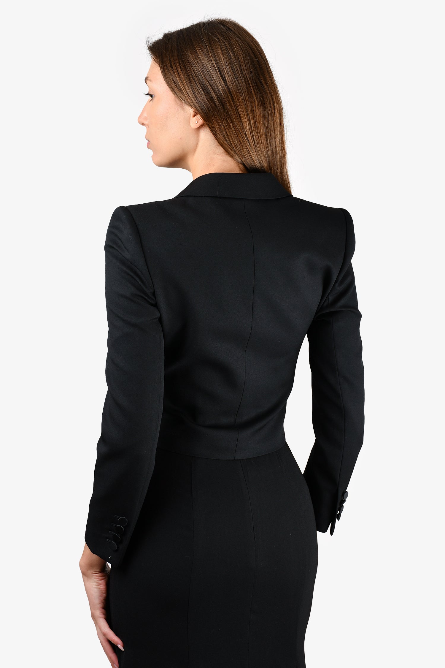 Refresh availabilitySaint Laurent Black Cropped Blazer. Front button closures. Padded shoulders. Lined. Tonal stitching.