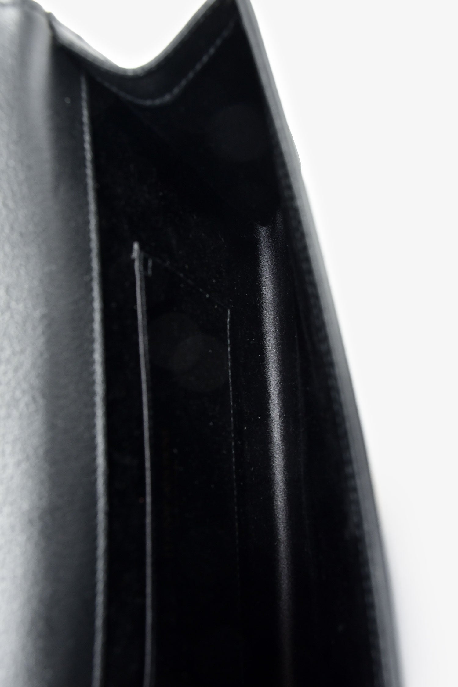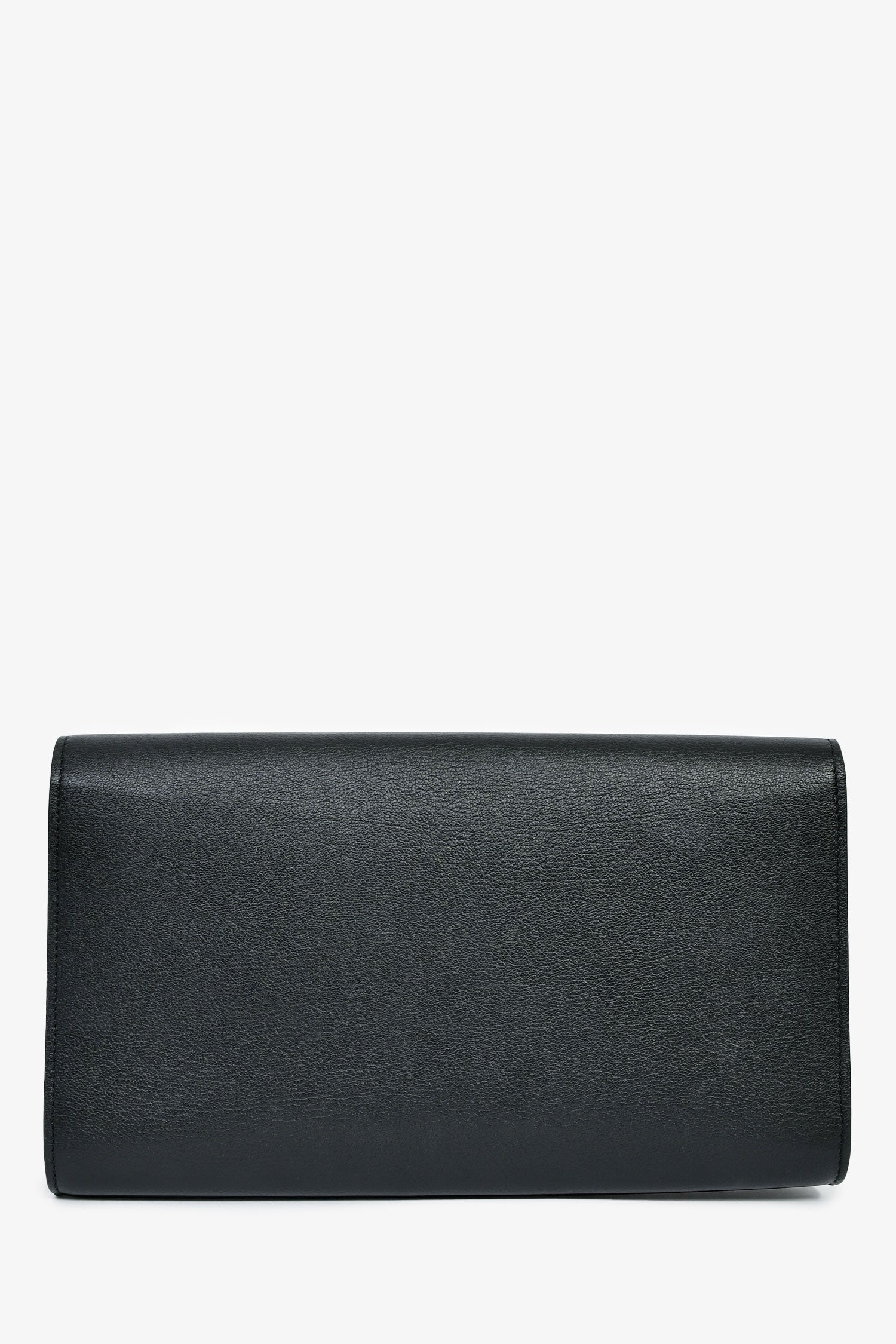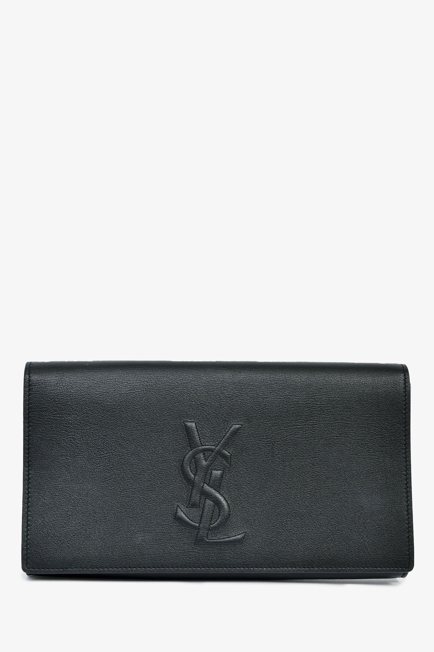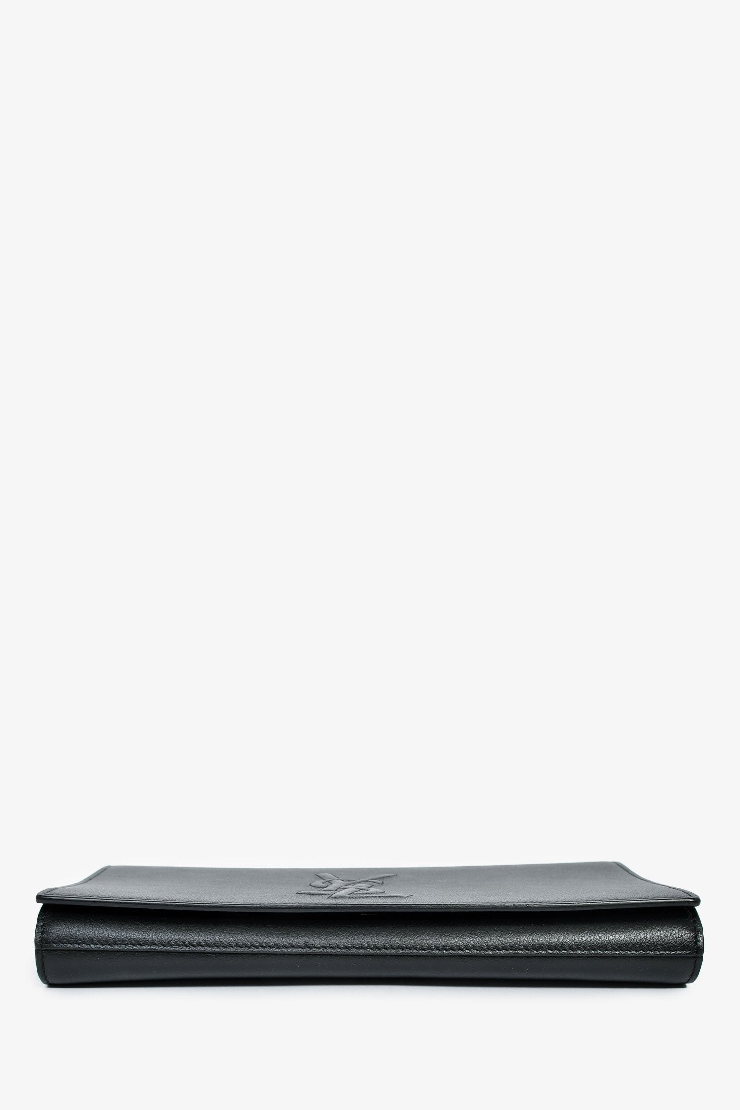 Refresh availabilitySaint Laurent Black Leather Belle de Jour Clutch. Front fold-over flap with a magnetic closure. Satin-lined interior with single card compartment. Coated edges. Tonal stitching.