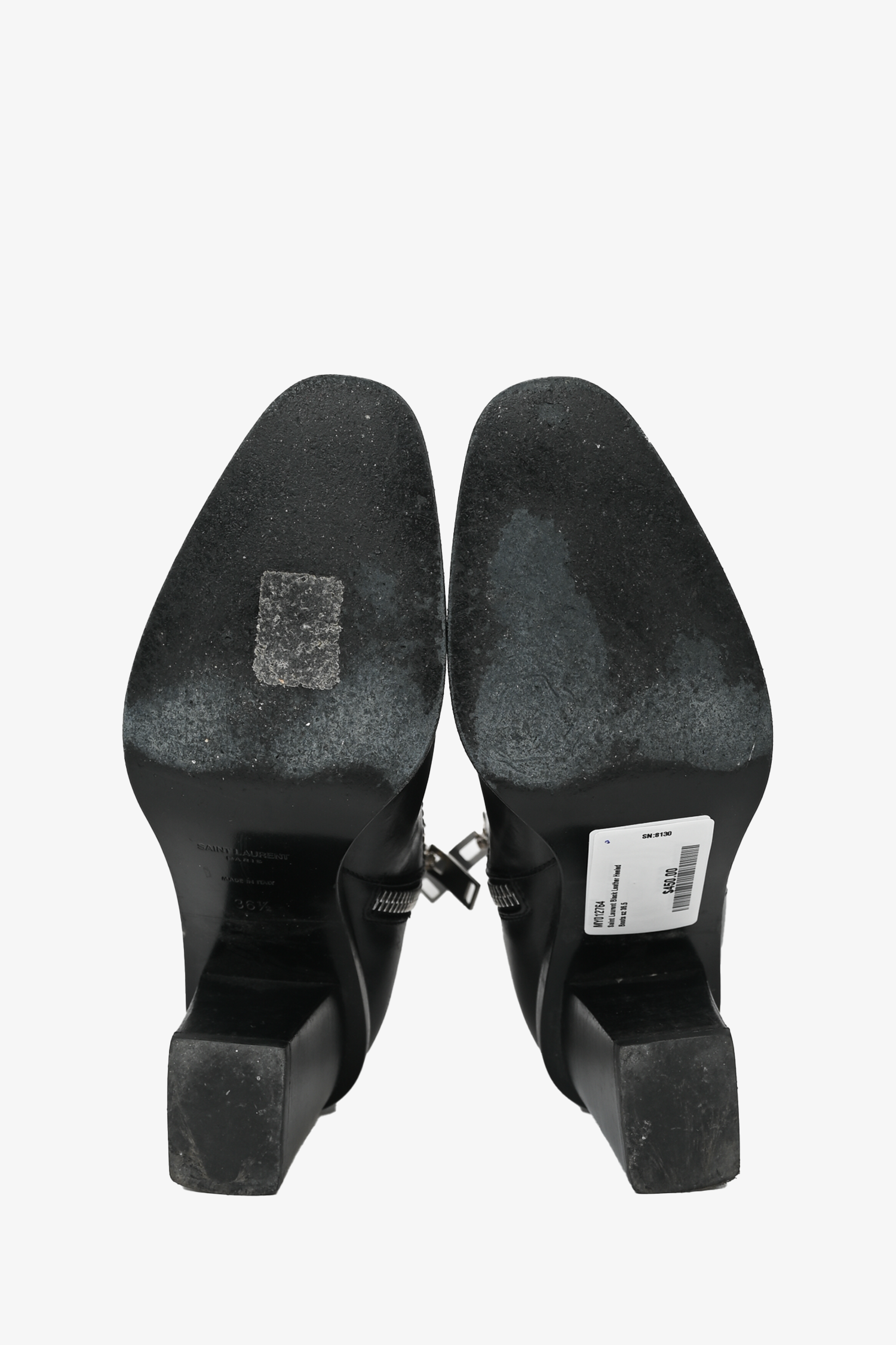 Saint Laurent Black Leather Heeled Boots Size 36.5