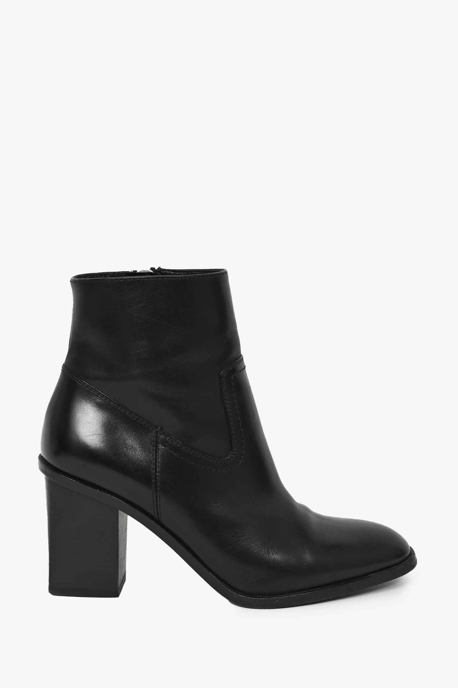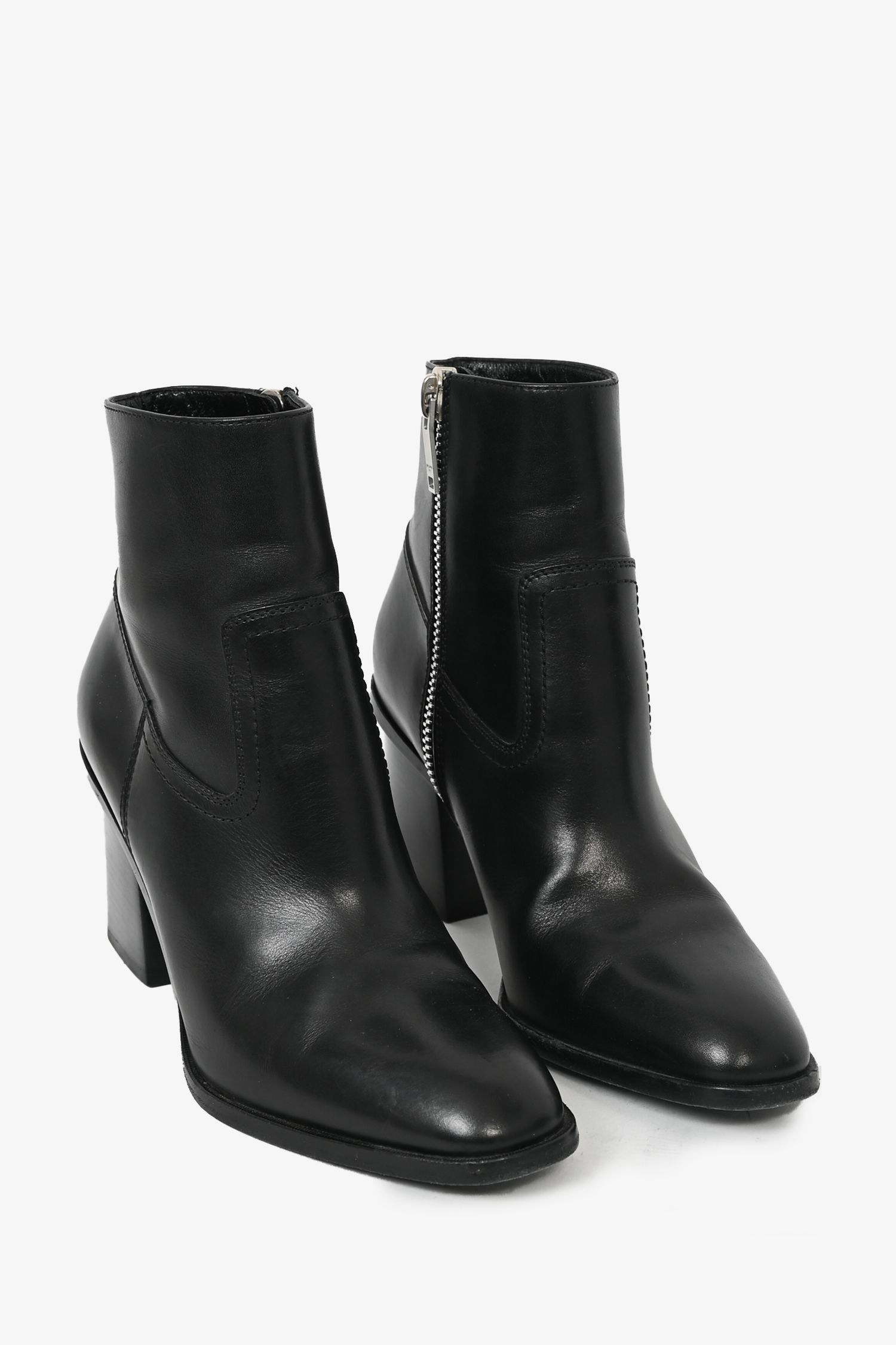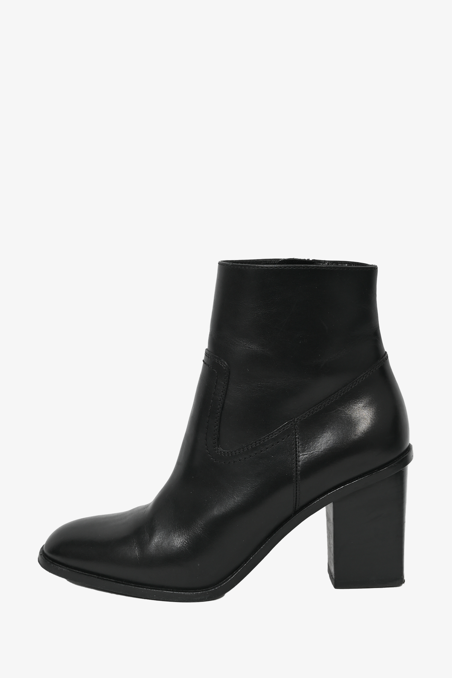 Refresh availabilitySaint Laurent Black Leather Heeled Boots Size 36.5. Side zip closure. Round toe. Tonal stitching.
