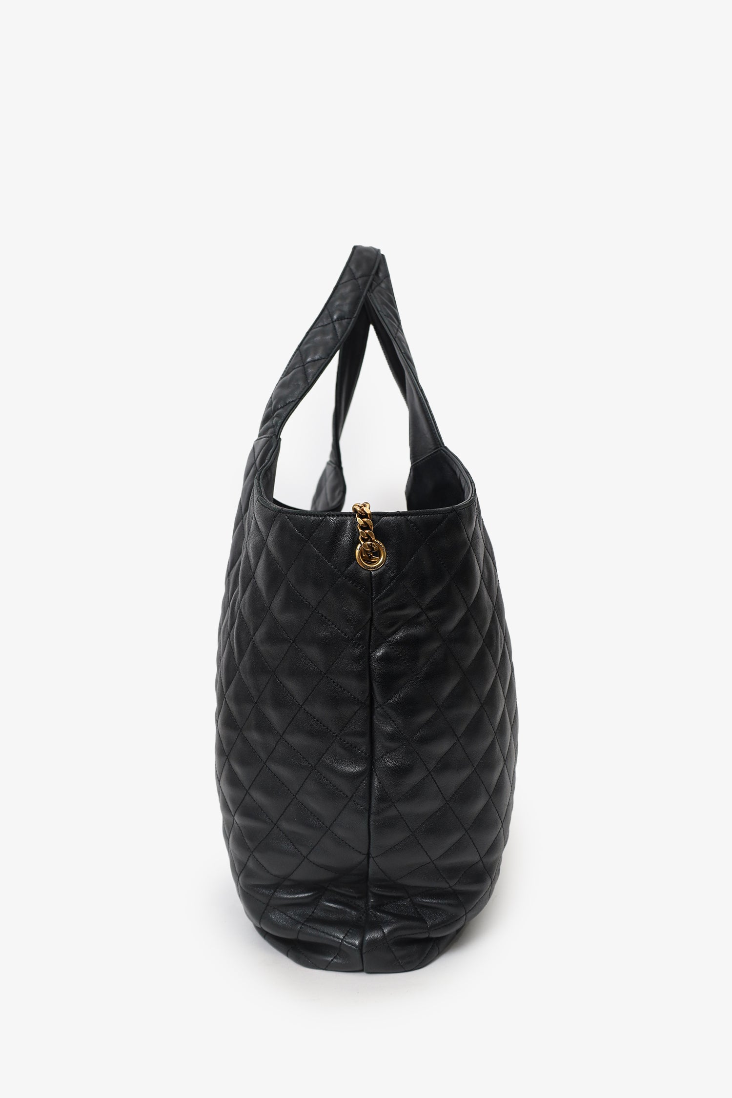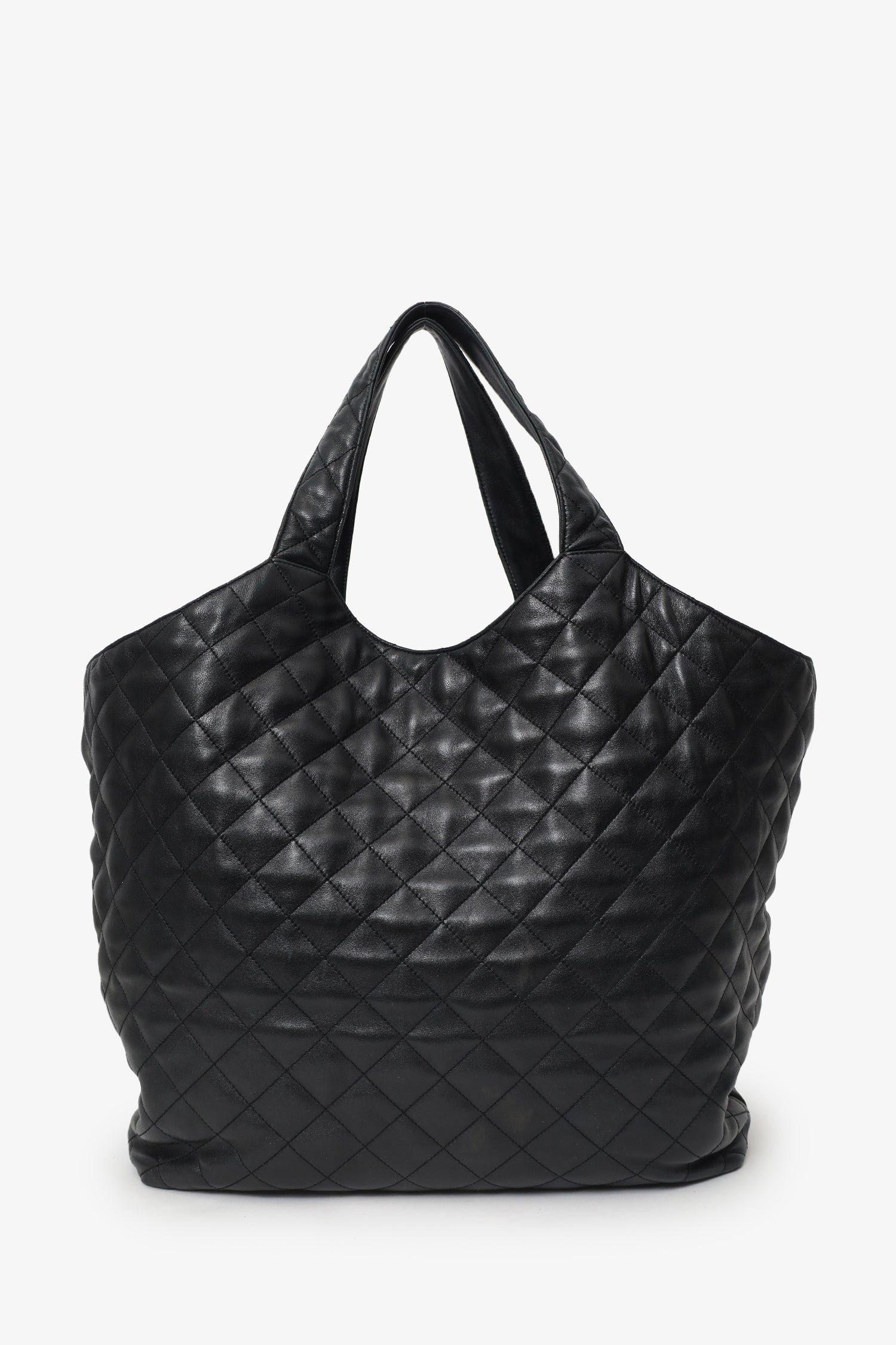 Saint Laurent Black Leather Quilted 'ICARE' Oversized Bag with Pouch