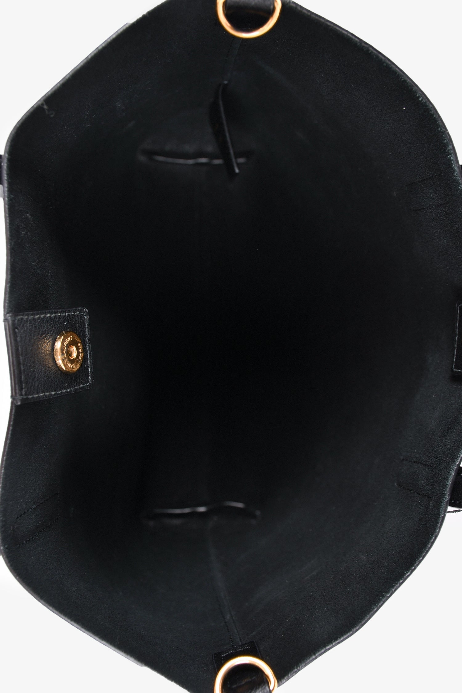 Refresh availabilitySaint Laurent Black Leather 'Toy Shopping' Tote with Strap. Dual handles. Interior magnetic button closure. Open interior. Removable and adjustable strap. Gold-tone hardware. Detachable clochette.