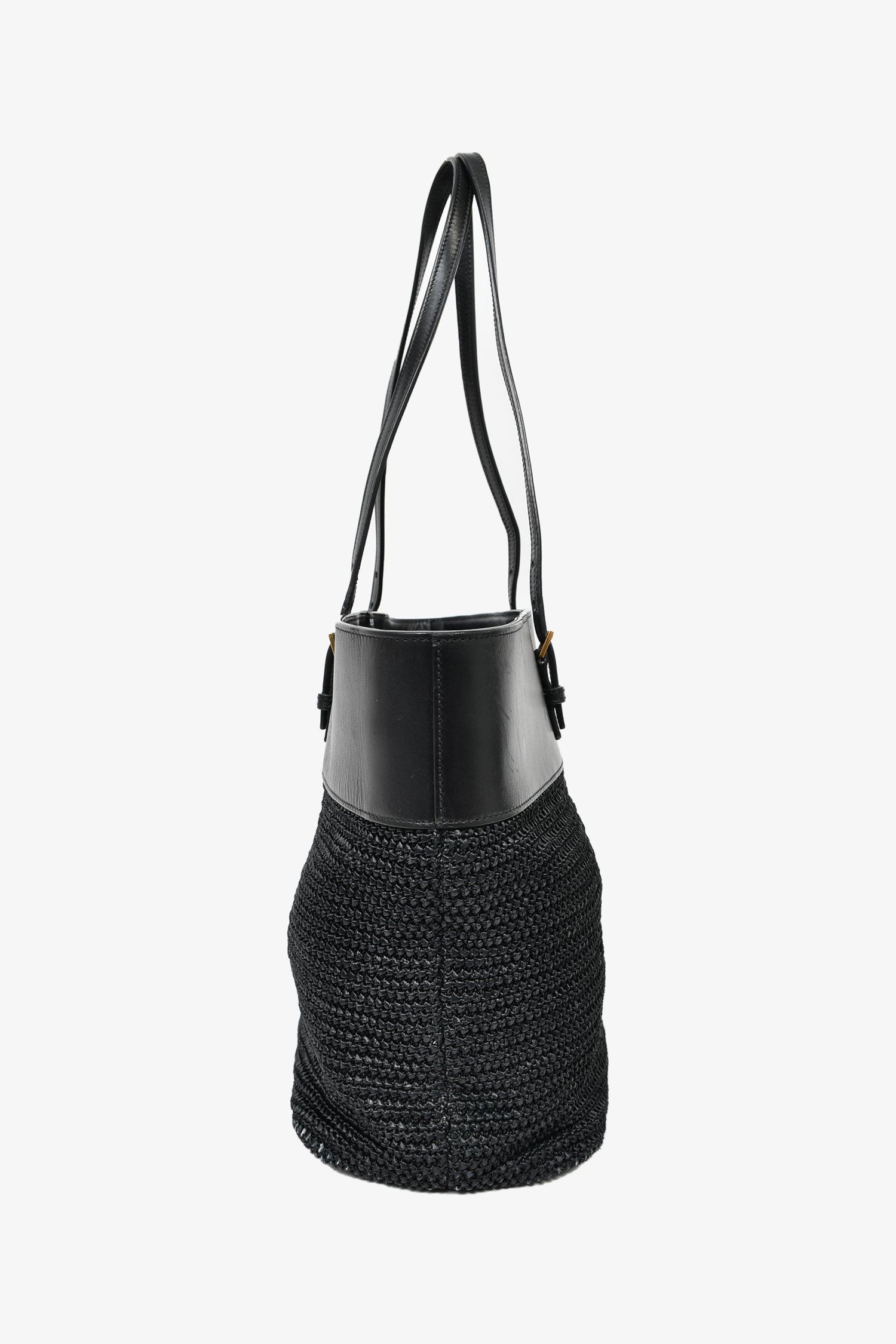 Saint Laurent Black Leather/Wicker Boucle Shopping Tote
