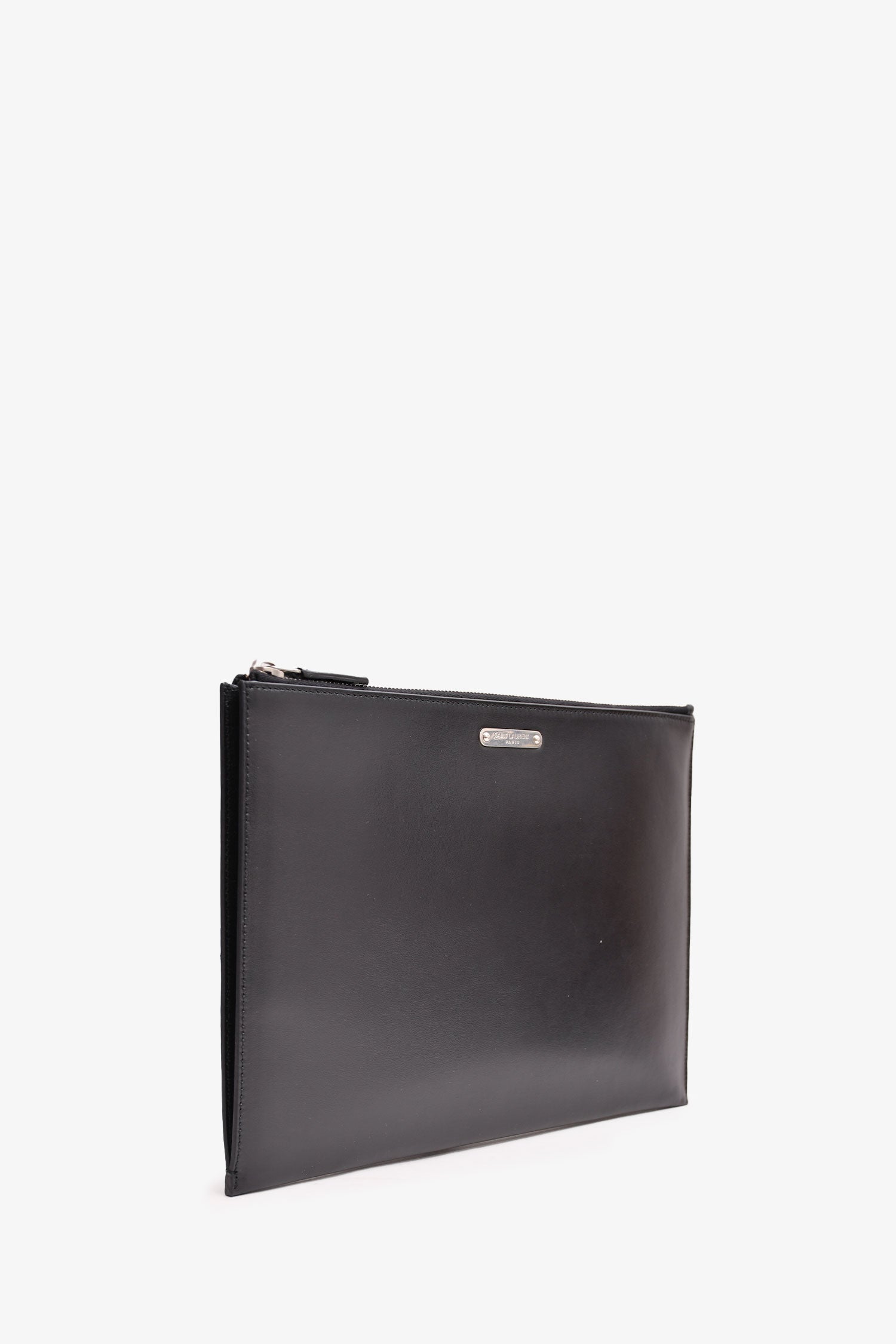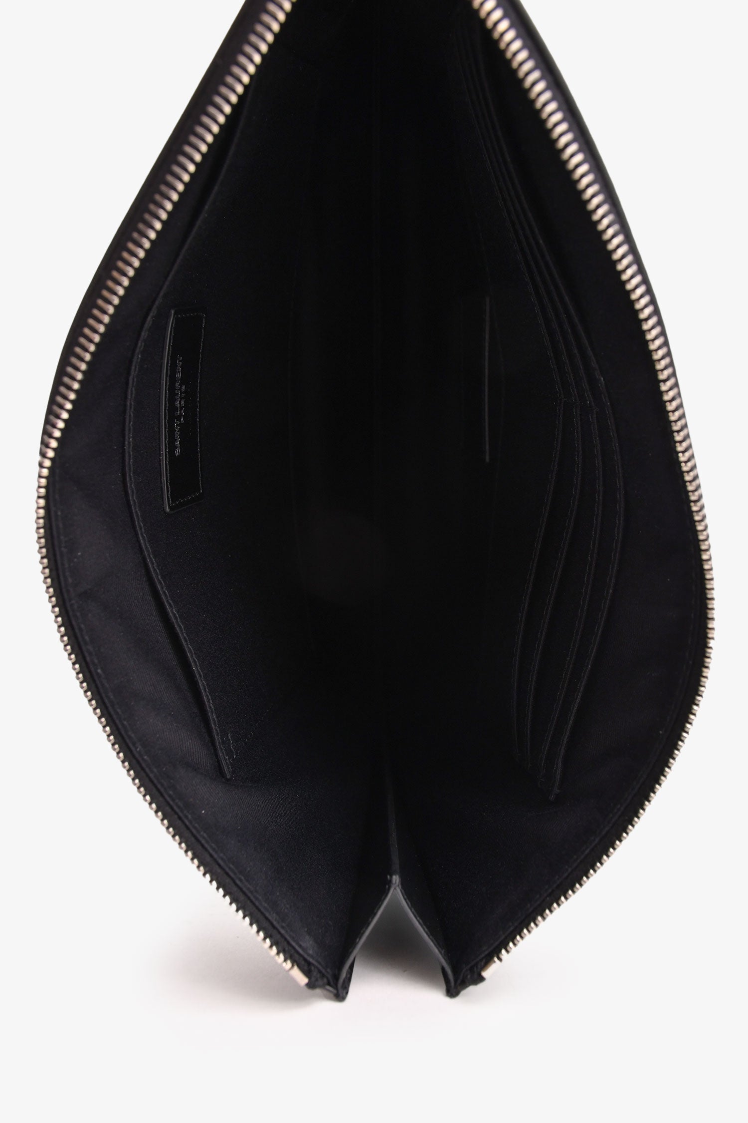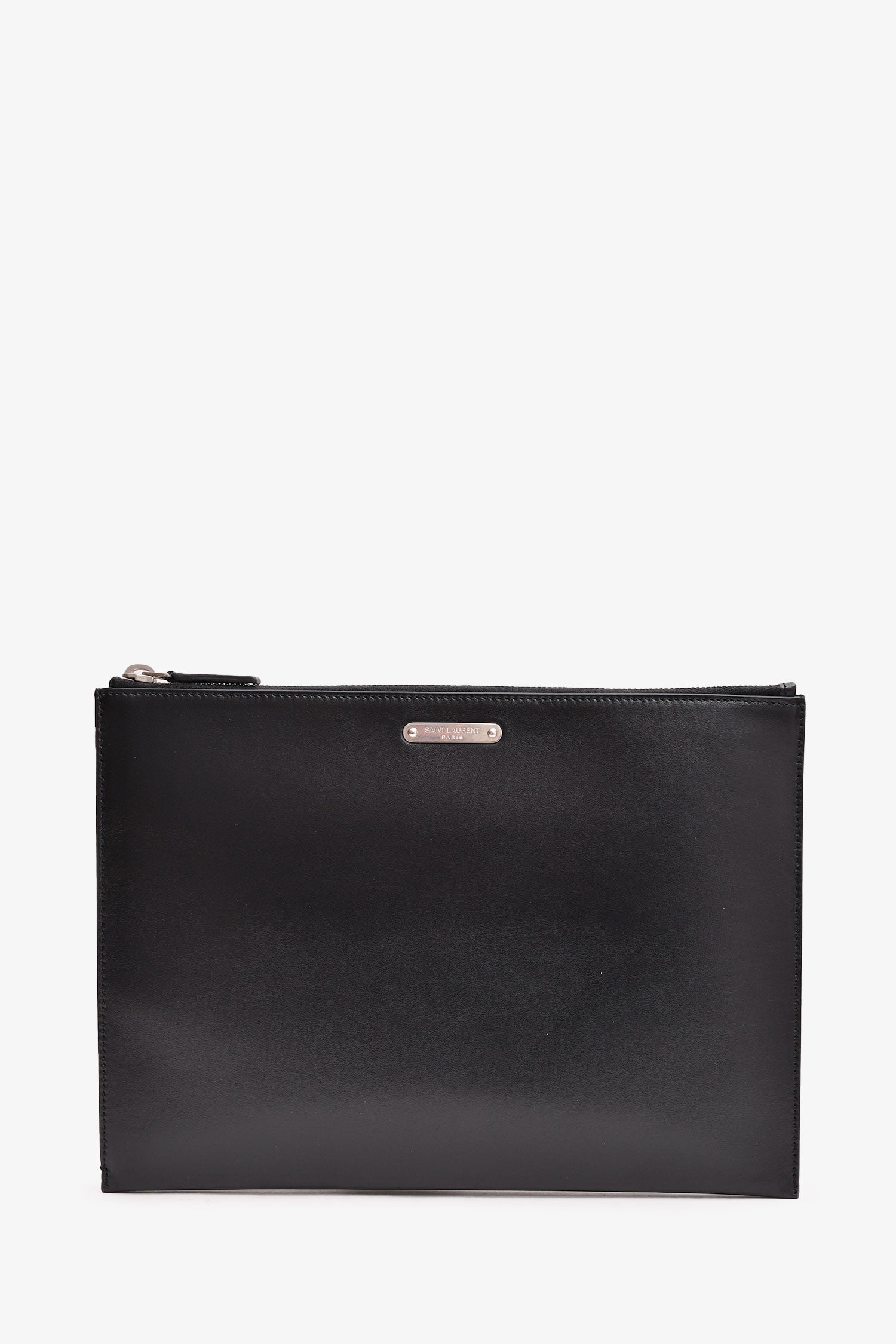 Refresh availabilitySaint Laurent Black Leather Zip Pouch. Top zip closure. Tonal stitching.