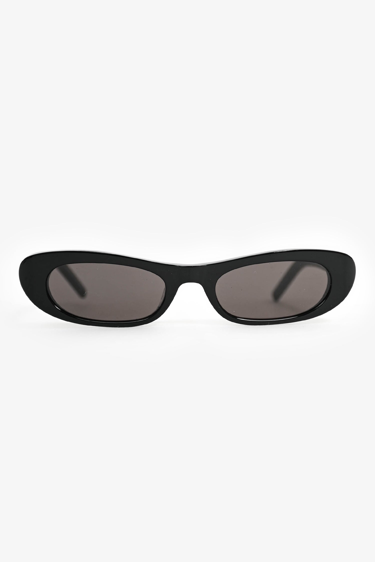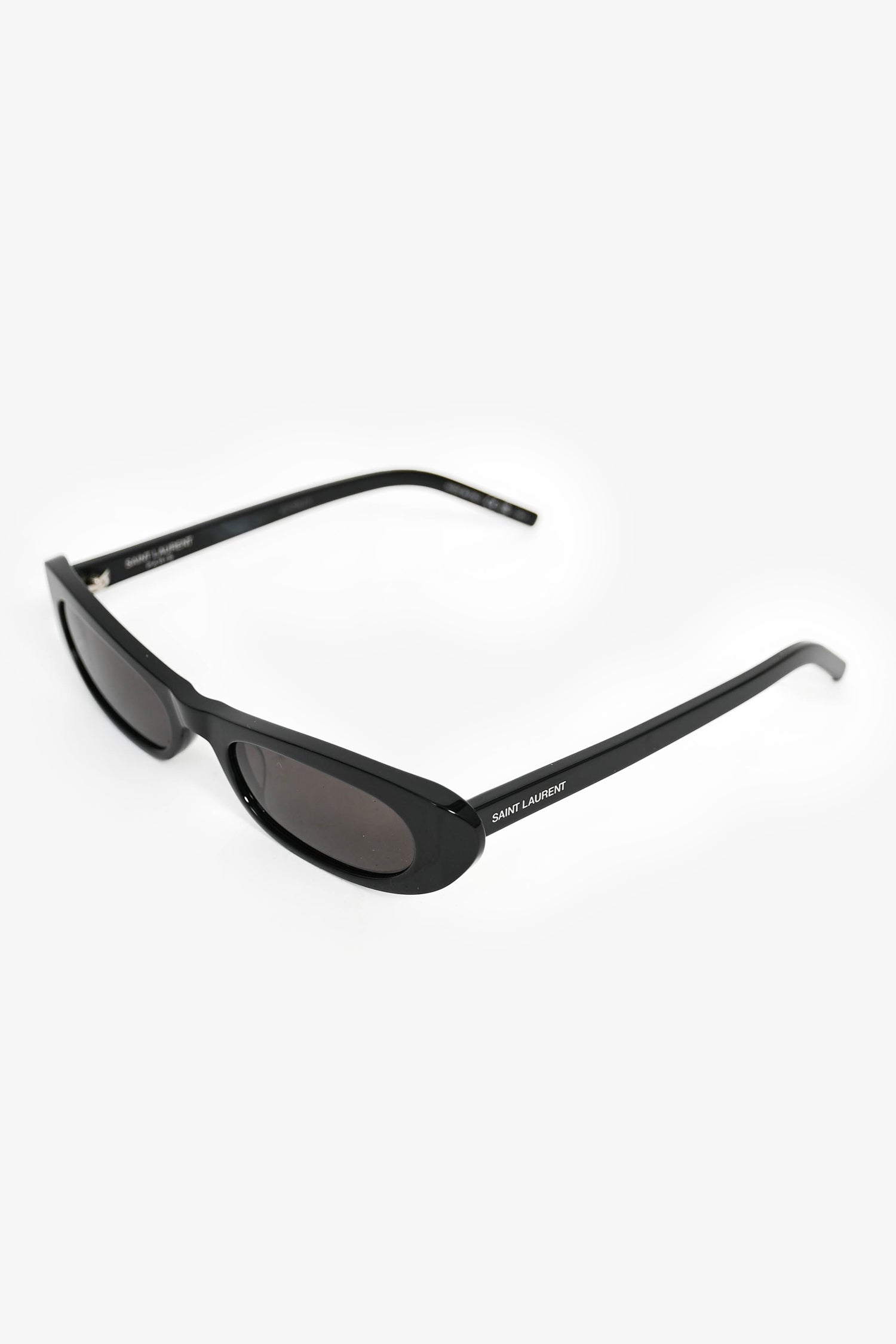 Refresh availabilitySaint Laurent Black Narrow 'SL 557 Shade' Sunglasses. Tinted lenses. Built-in nose-pads.