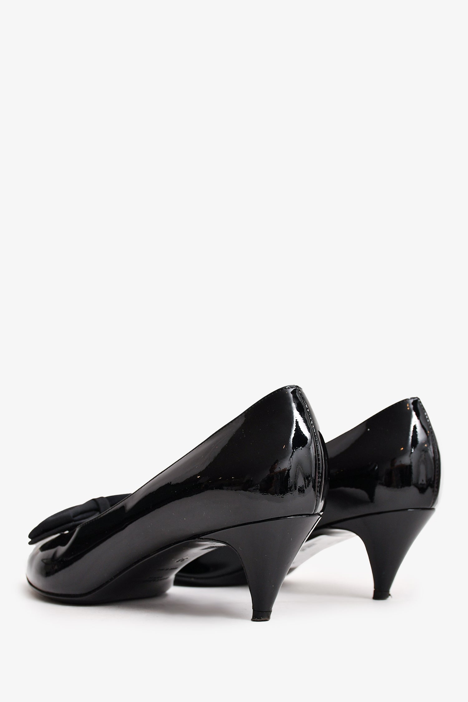 Saint Laurent Black Patent Bow Detail Kitten Heels Size 38