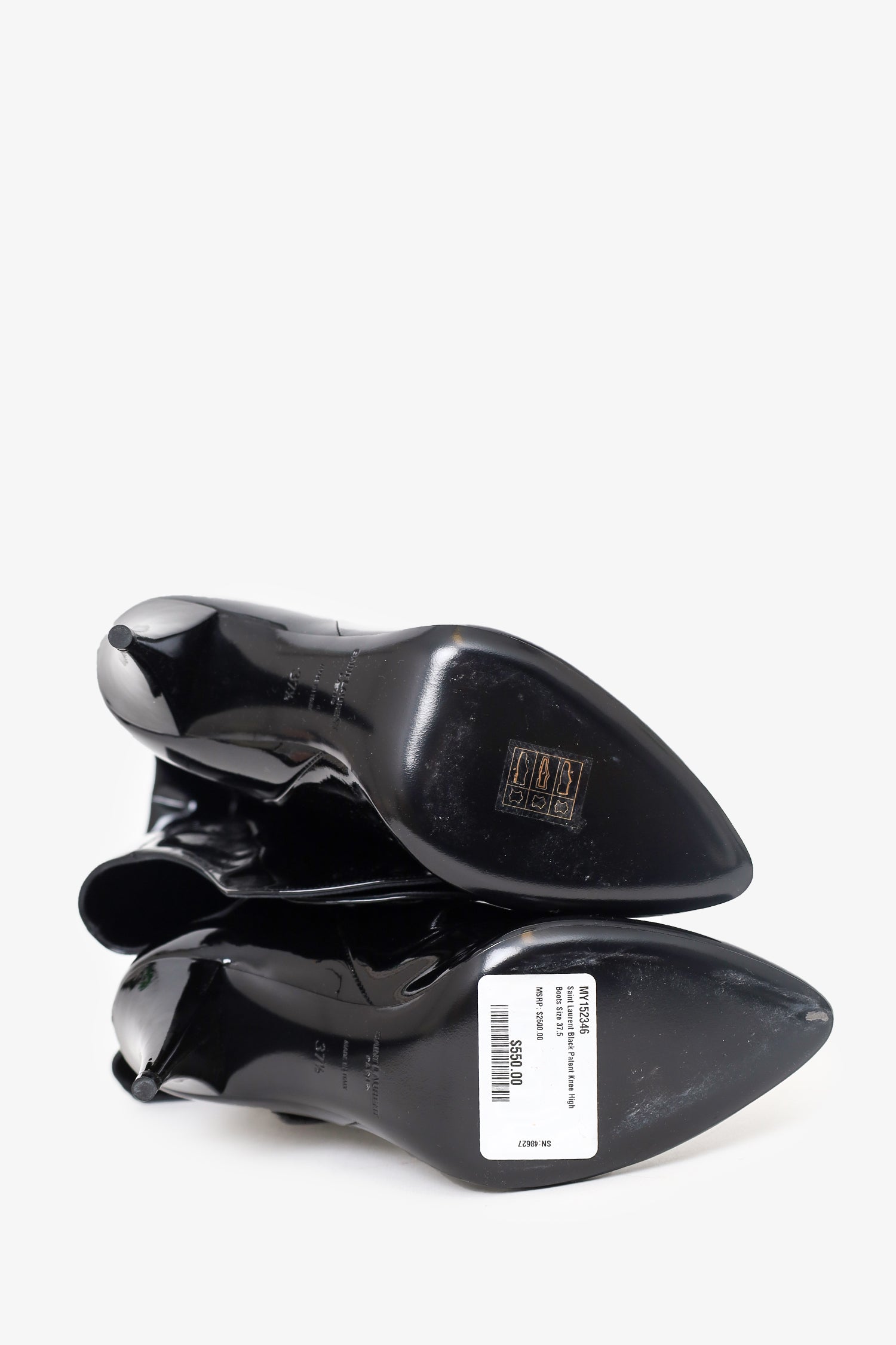 Saint Laurent Black Patent Knee High Boots Size 37.5