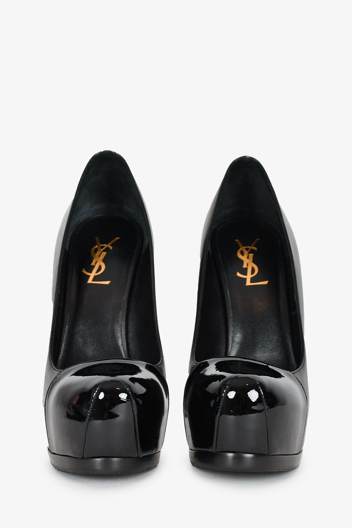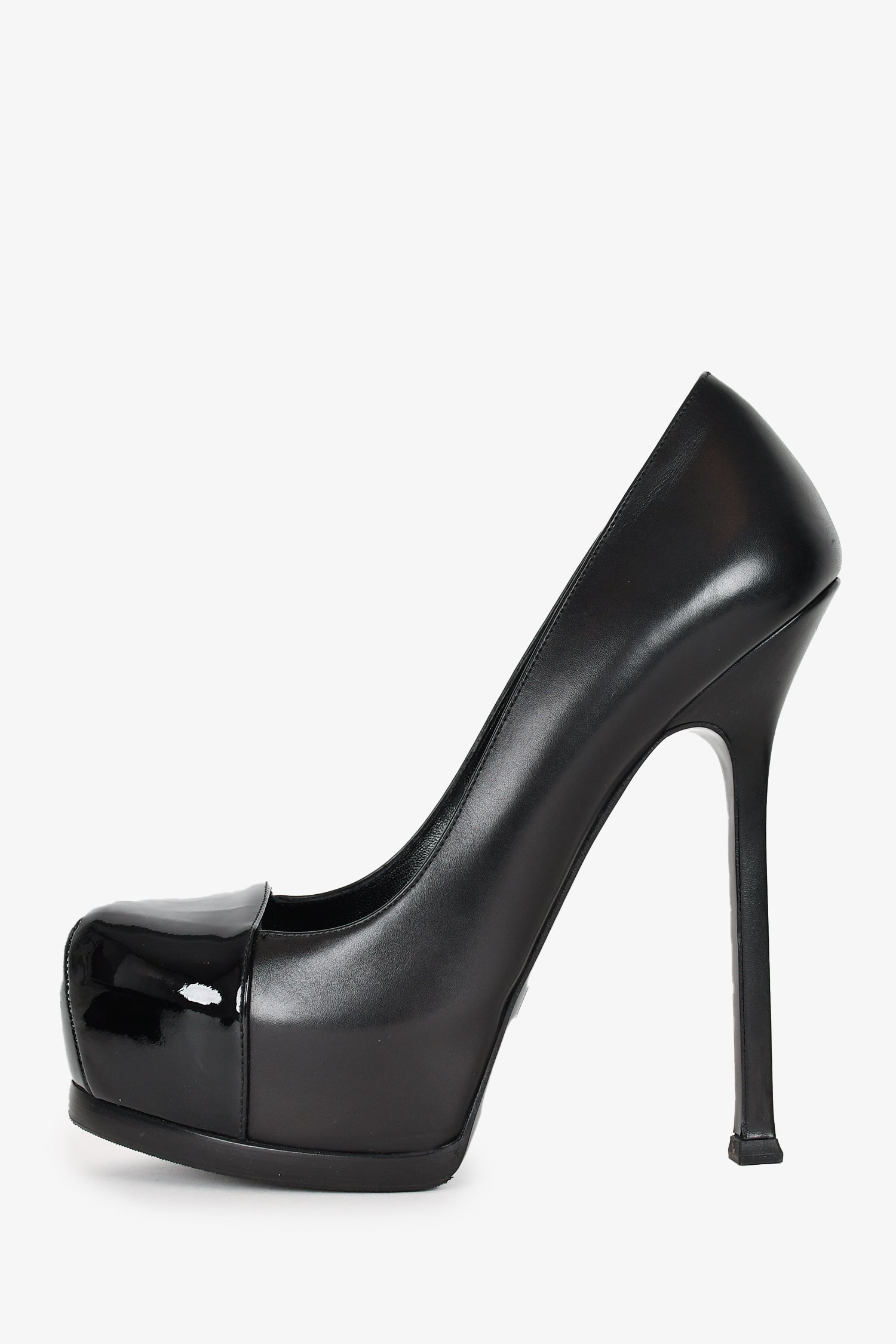 Refresh availabilitySaint Laurent Black Patent/Leather Platform Heels. Slip-on. Round toe. Skinny heel. Topy soles.