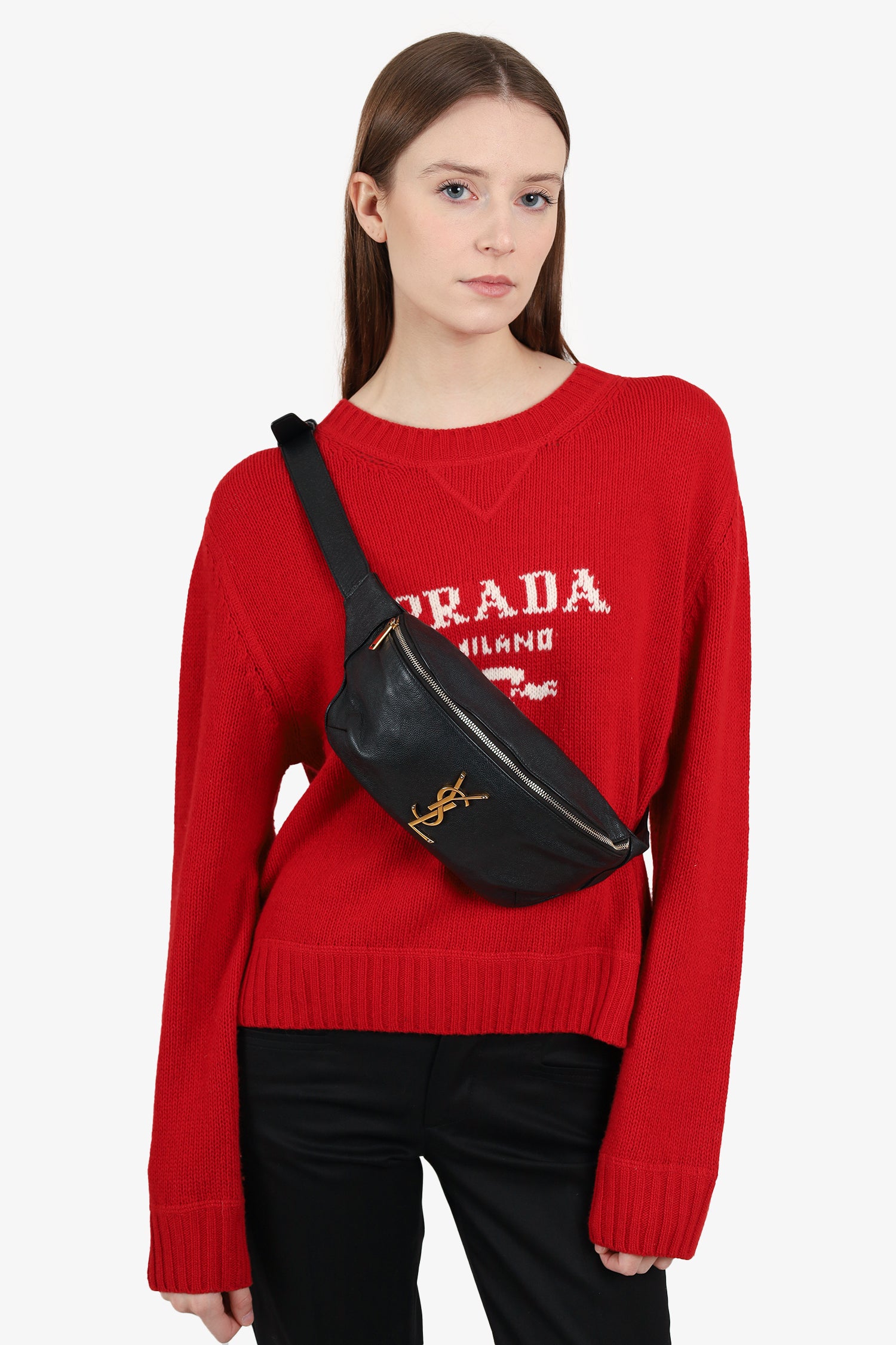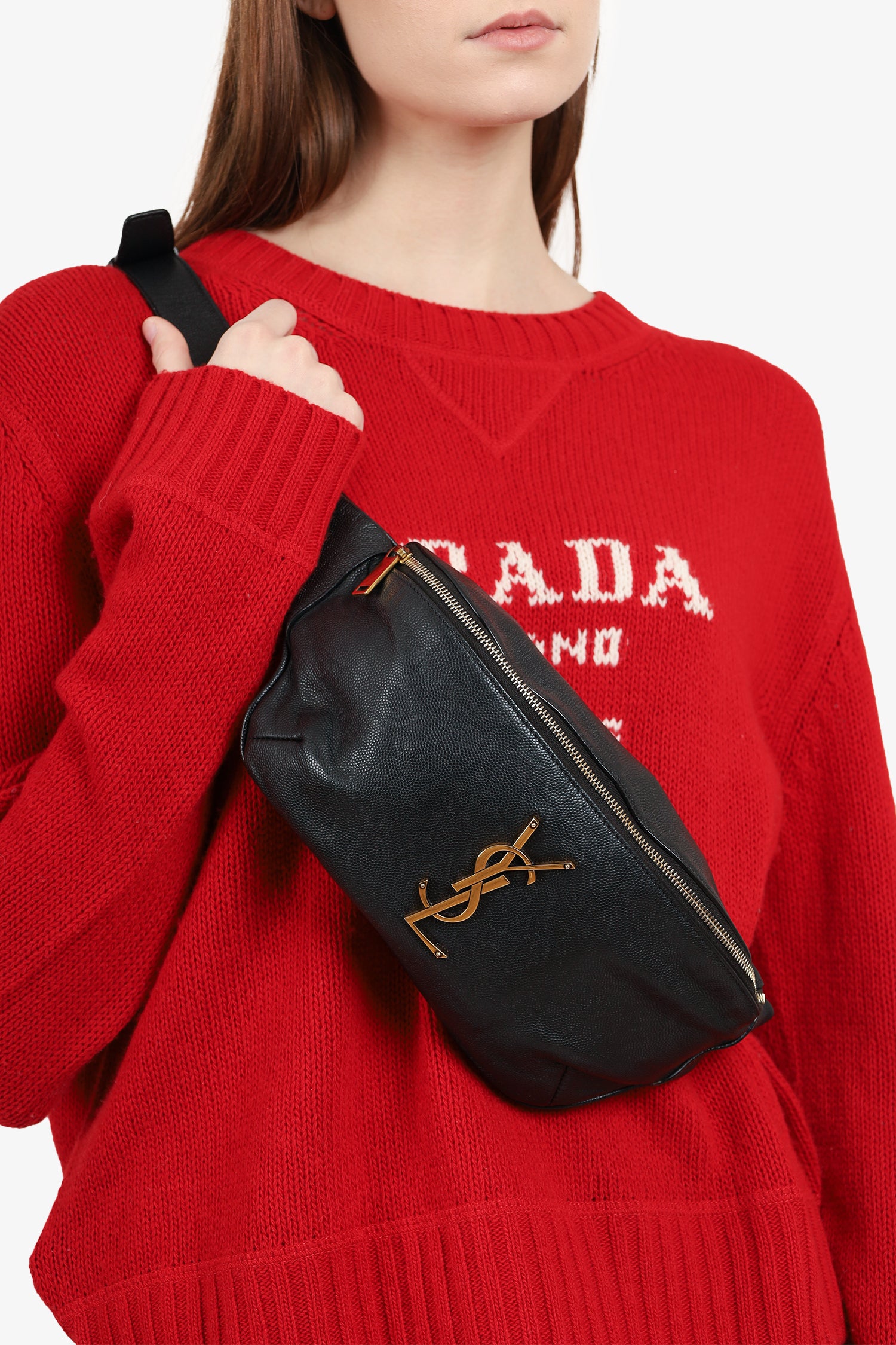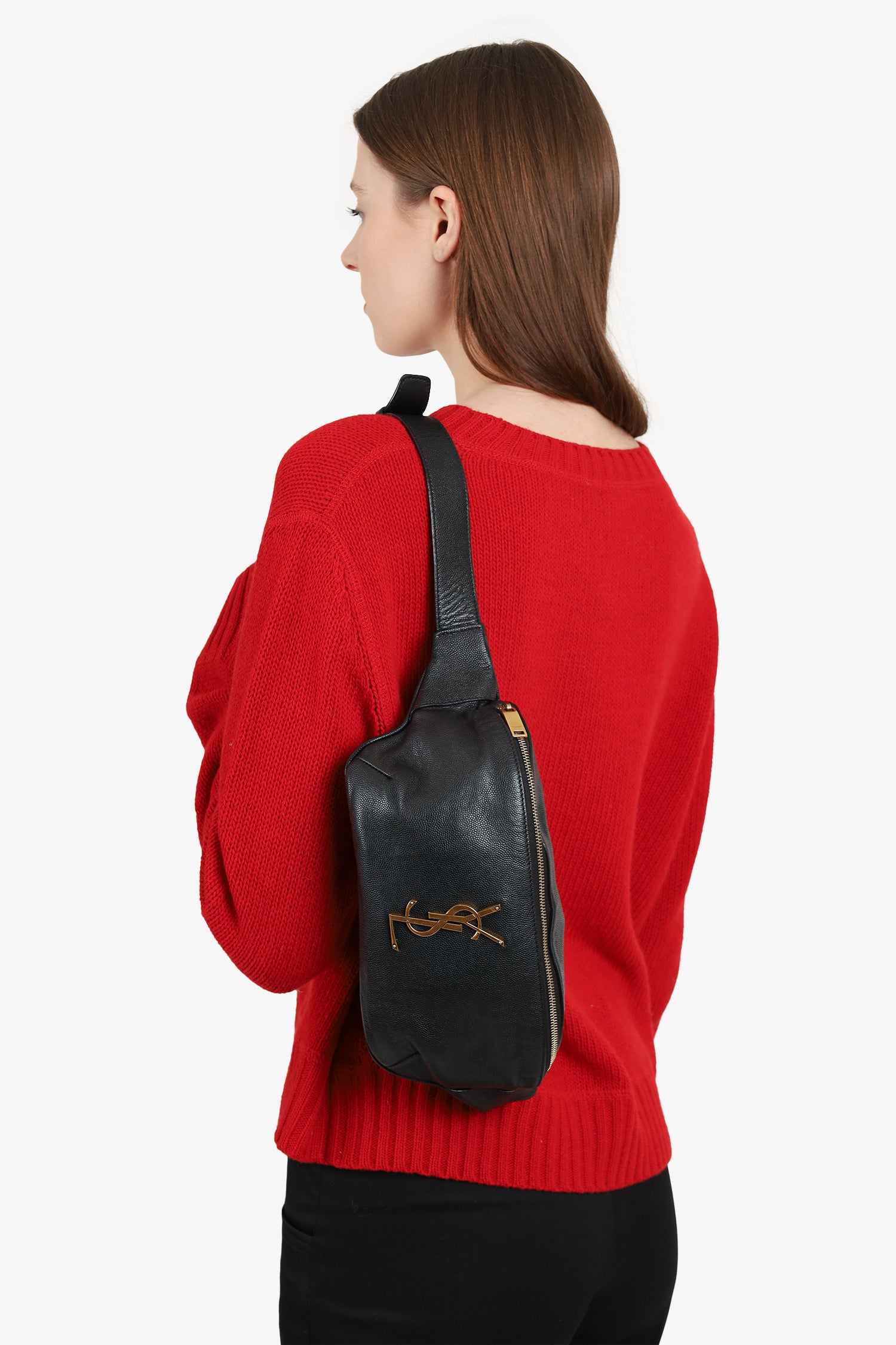 Saint Laurent Black Pebbled Leather 'Cassandre' Belt Bag