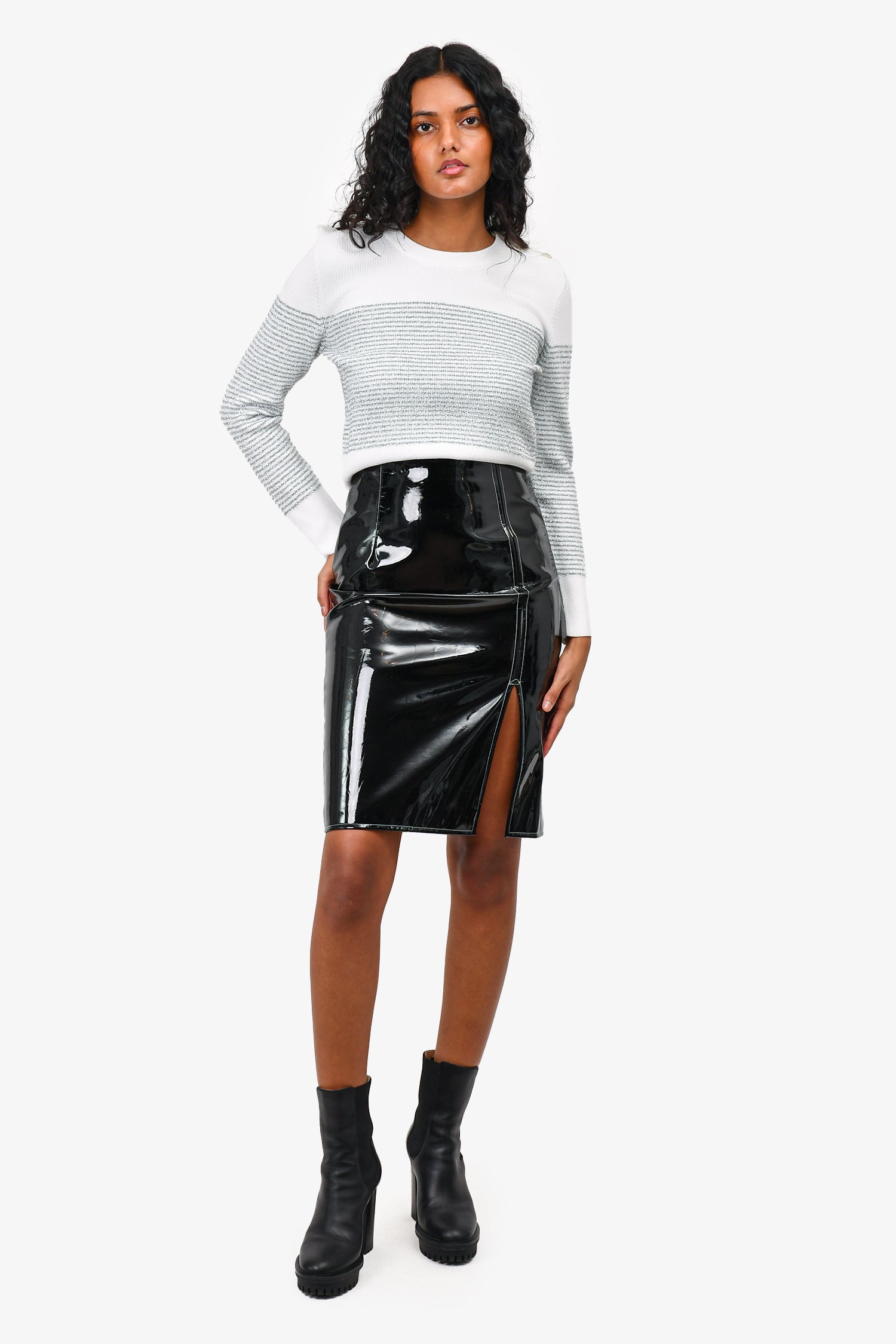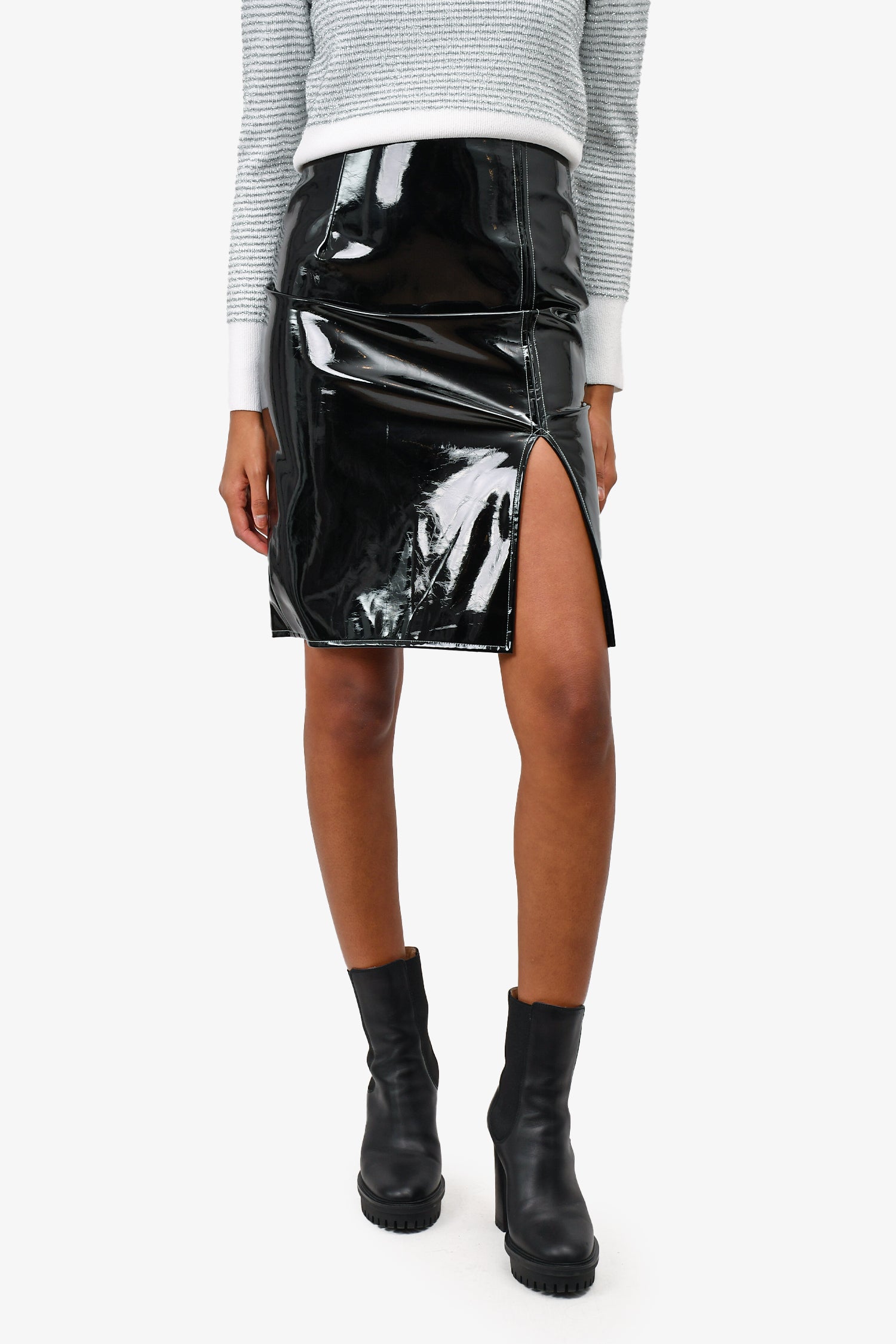 Refresh availabilitySaint Laurent Black PVC Midi Skirt. Rear zip up closure. Lined. Contrast stitching.