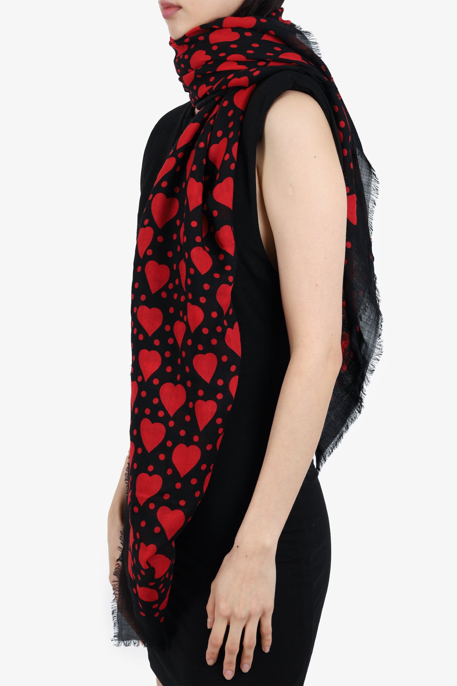 Saint Laurent Black/Red Wool Heart Scarf. Tonal stitching.