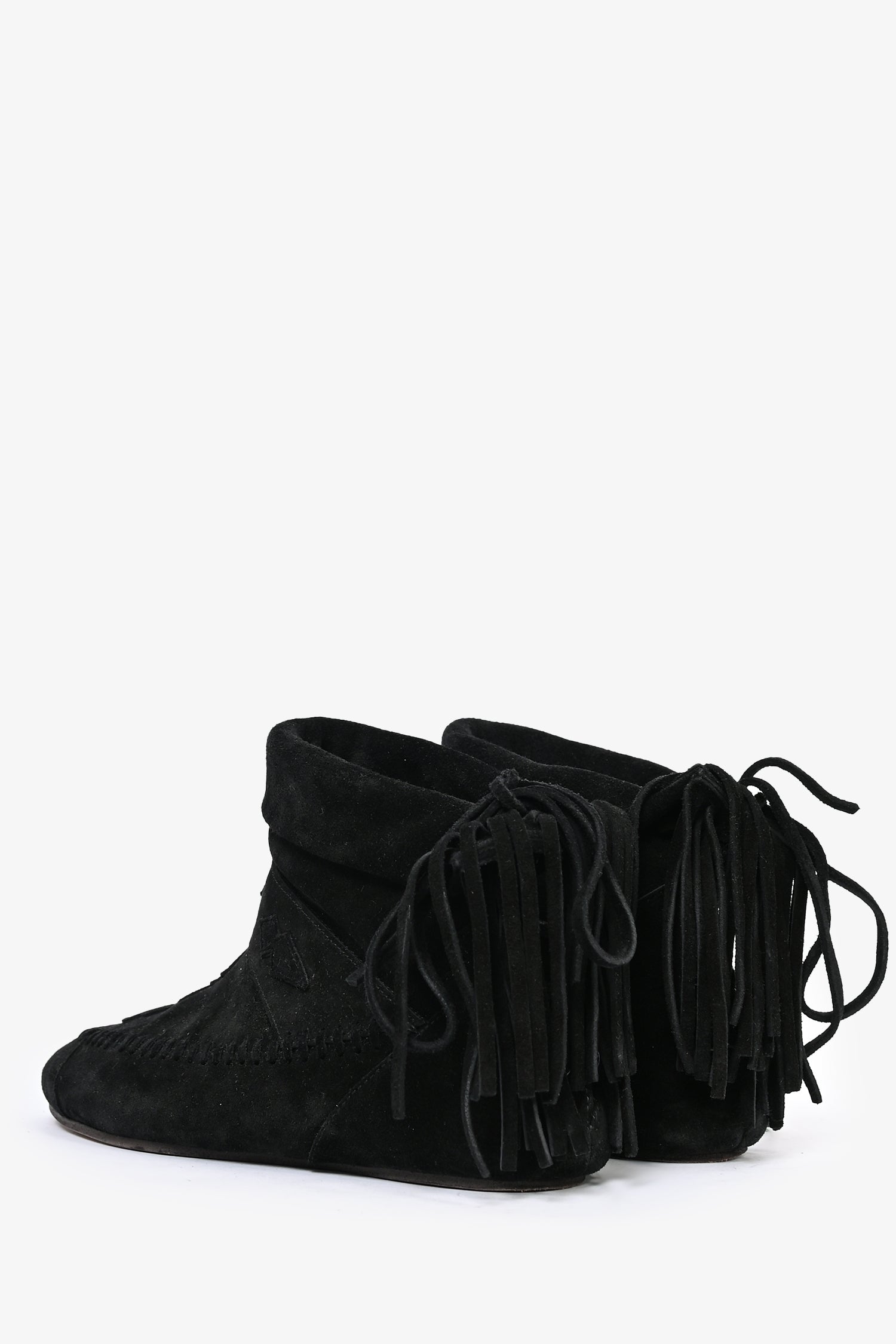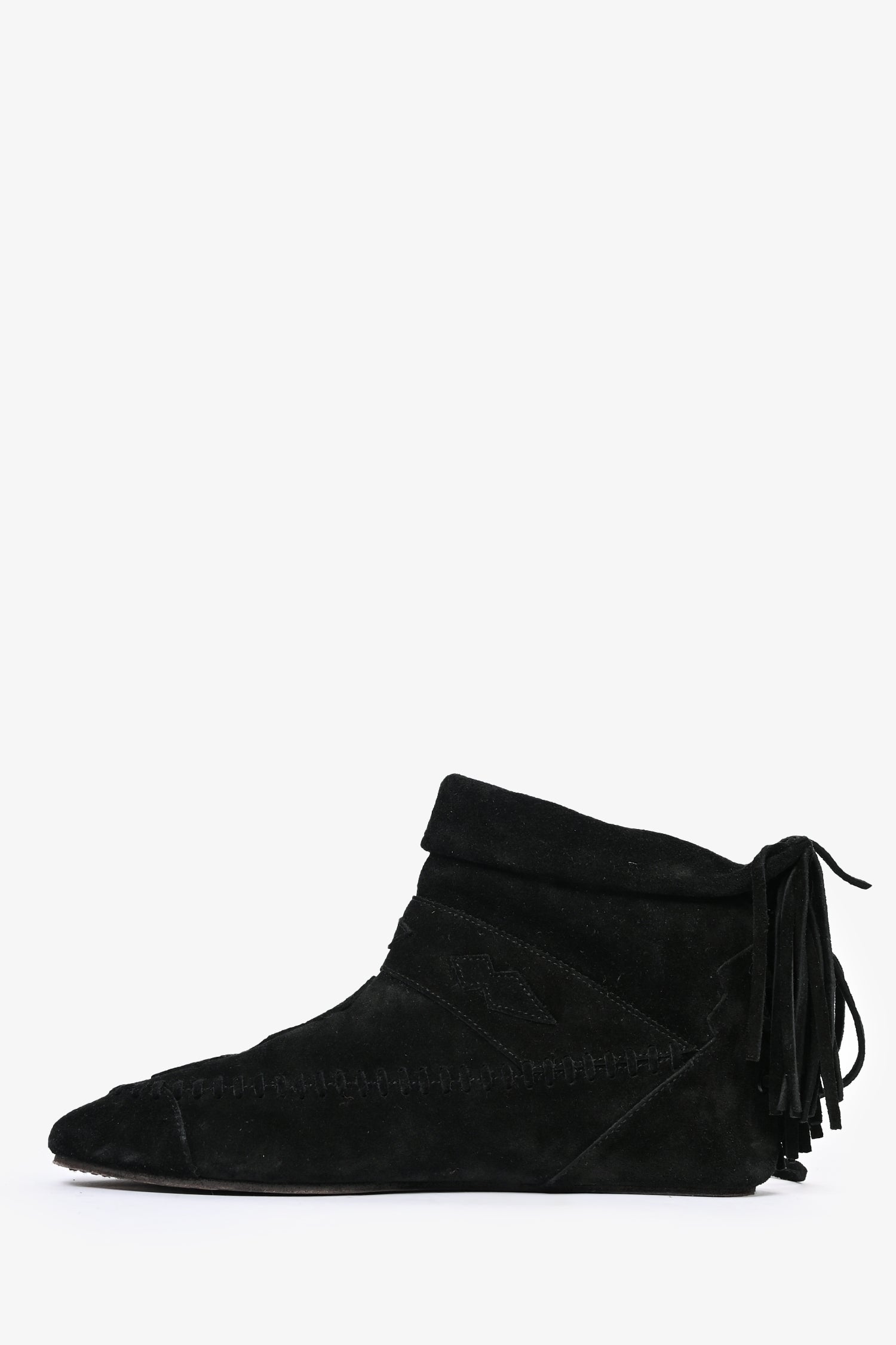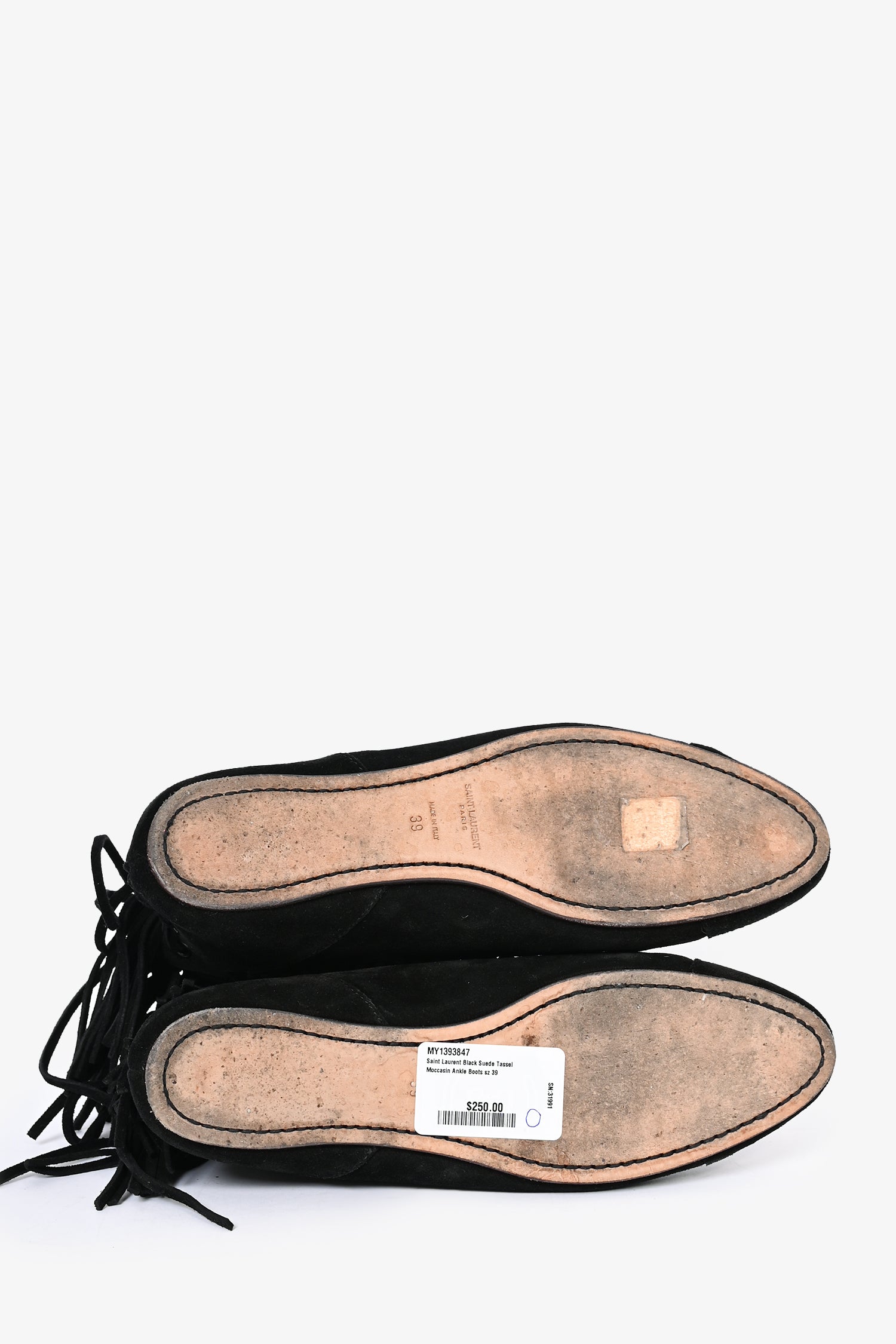 Saint Laurent Black Suede Tassel Moccasin Ankle Boots Size 39