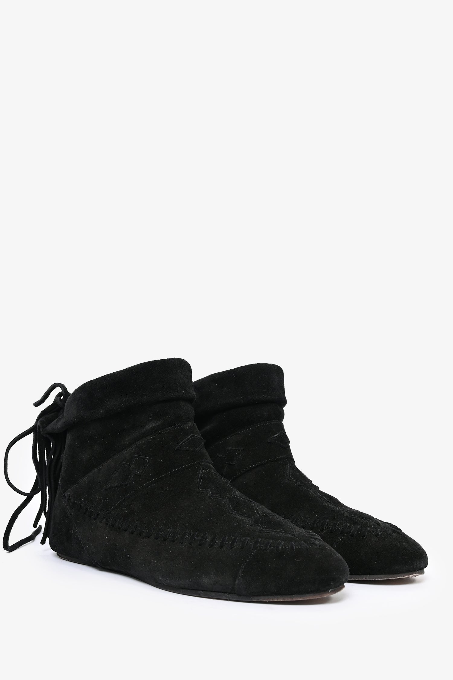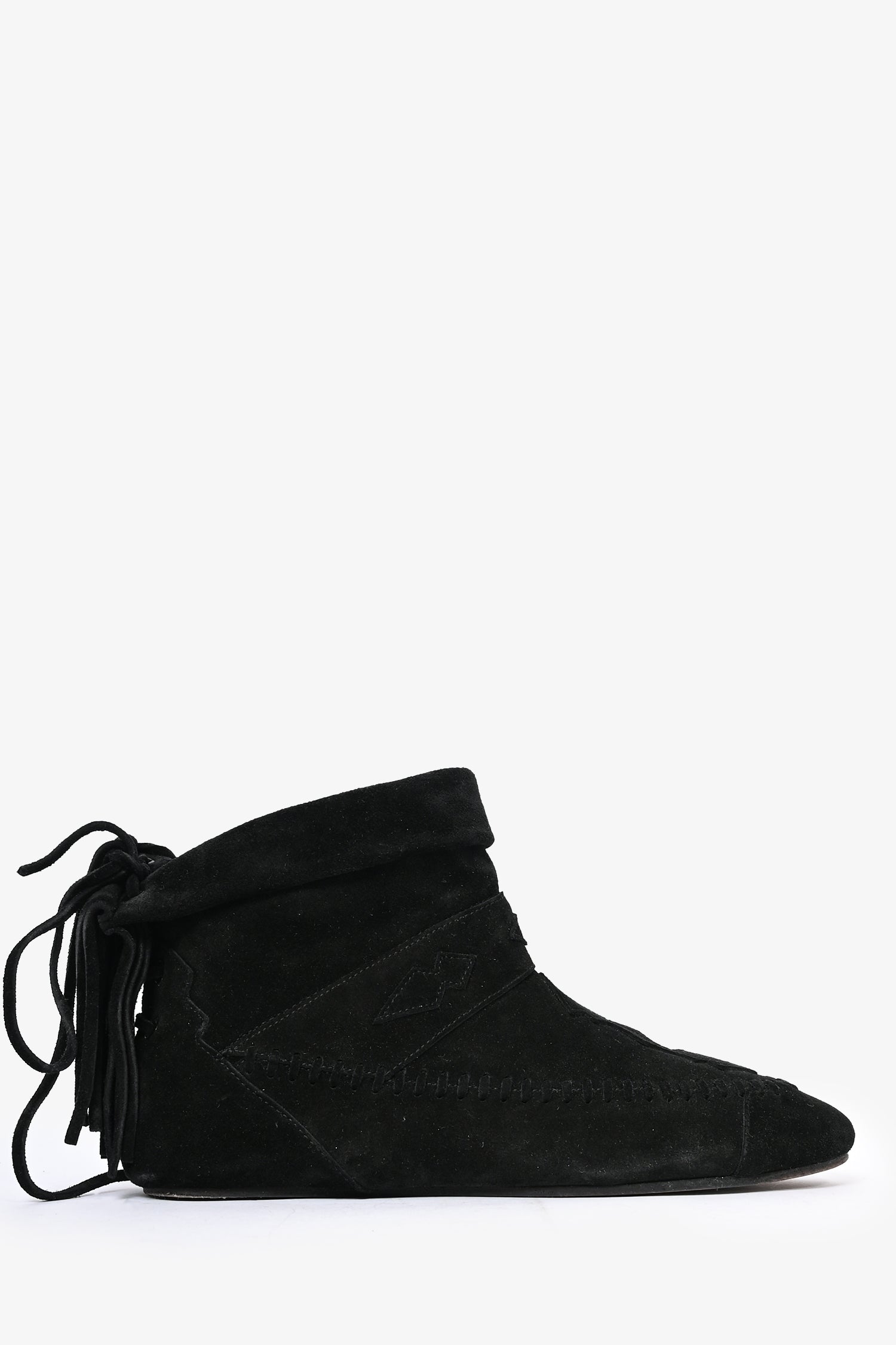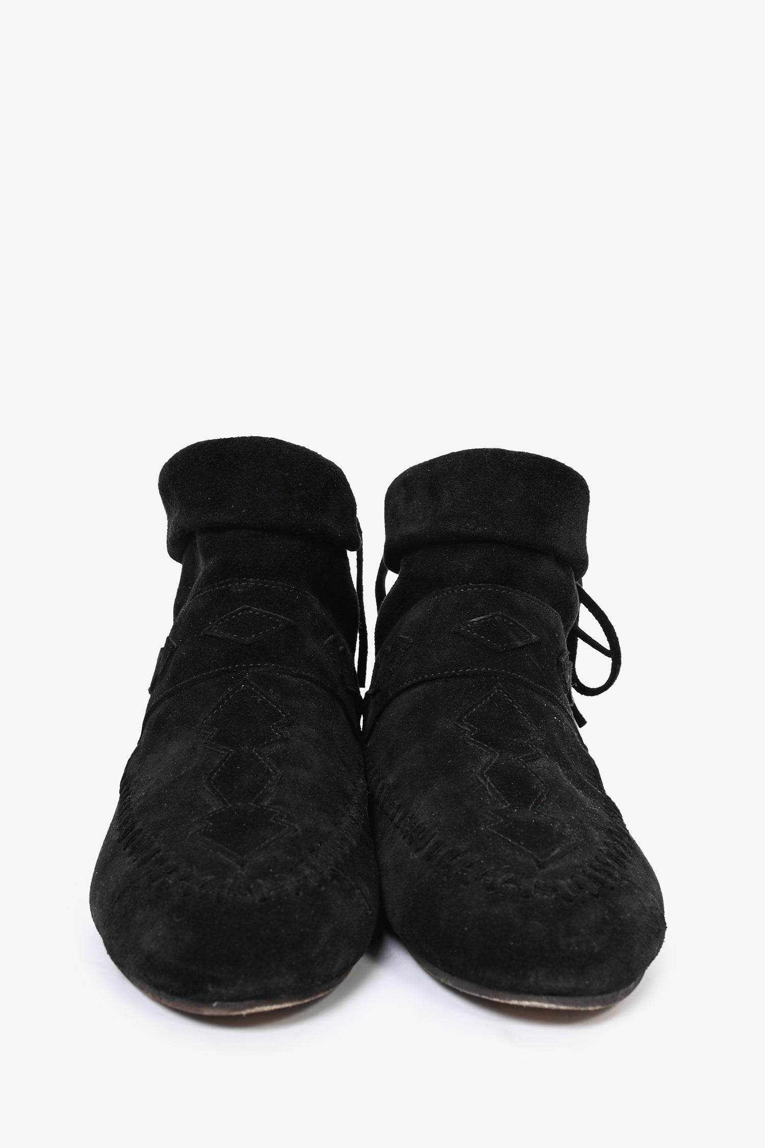 Saint Laurent Black Suede Tassel Moccasin Ankle Boots Size 39