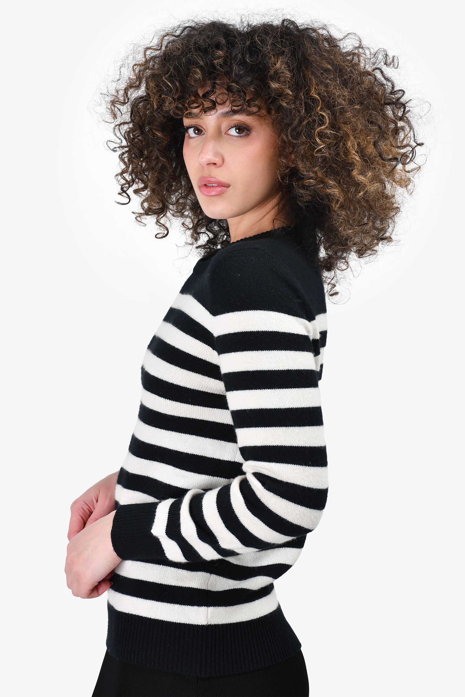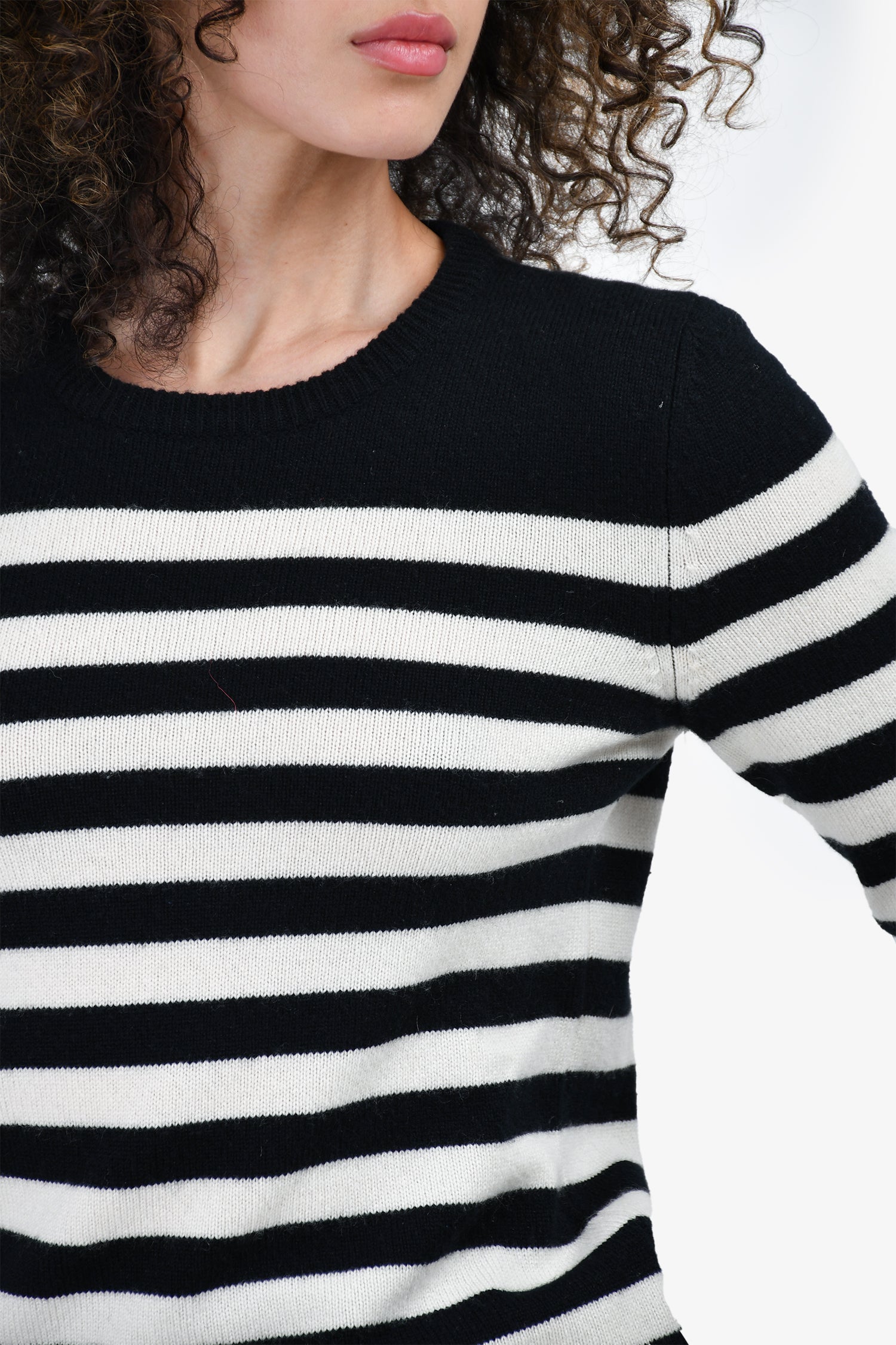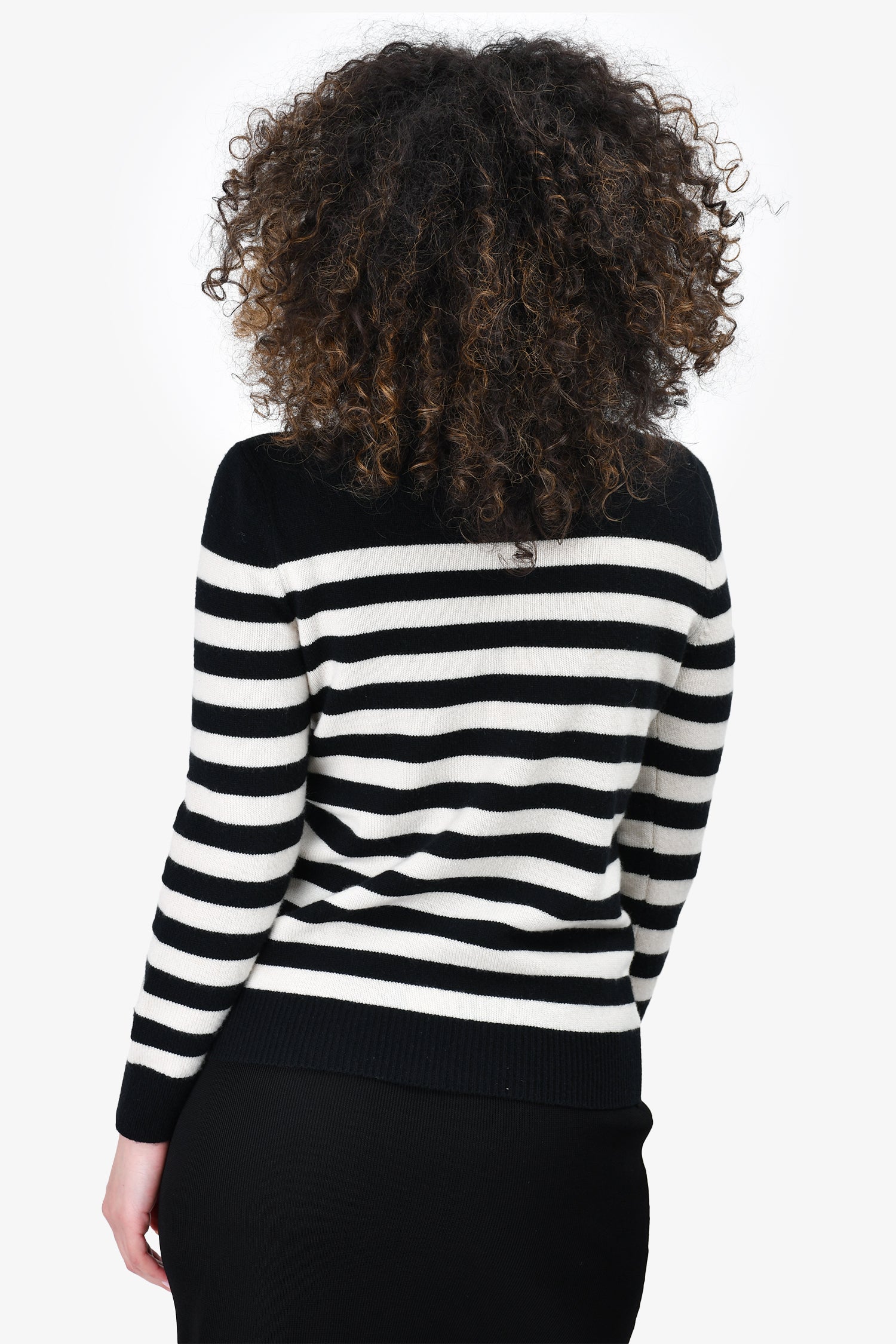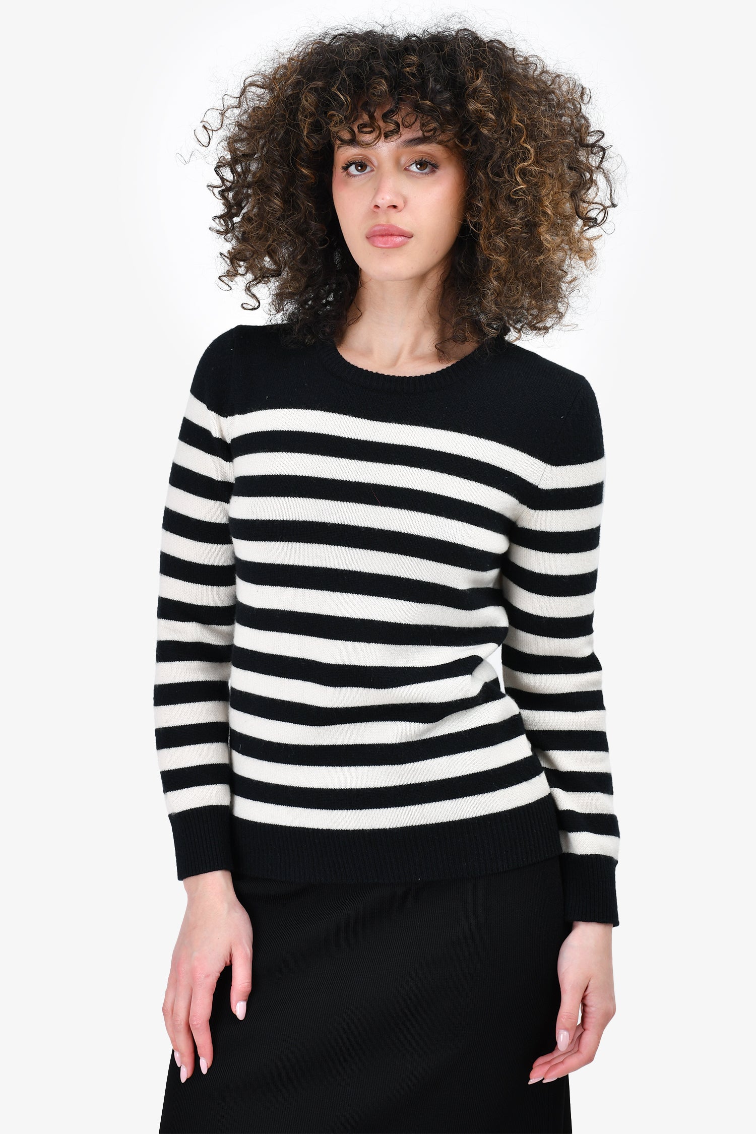 Refresh availabilitySaint Laurent Black/White Wool Striped Sweater. Round neck. Pull-on. Ribbed neck, cuffs and hem.