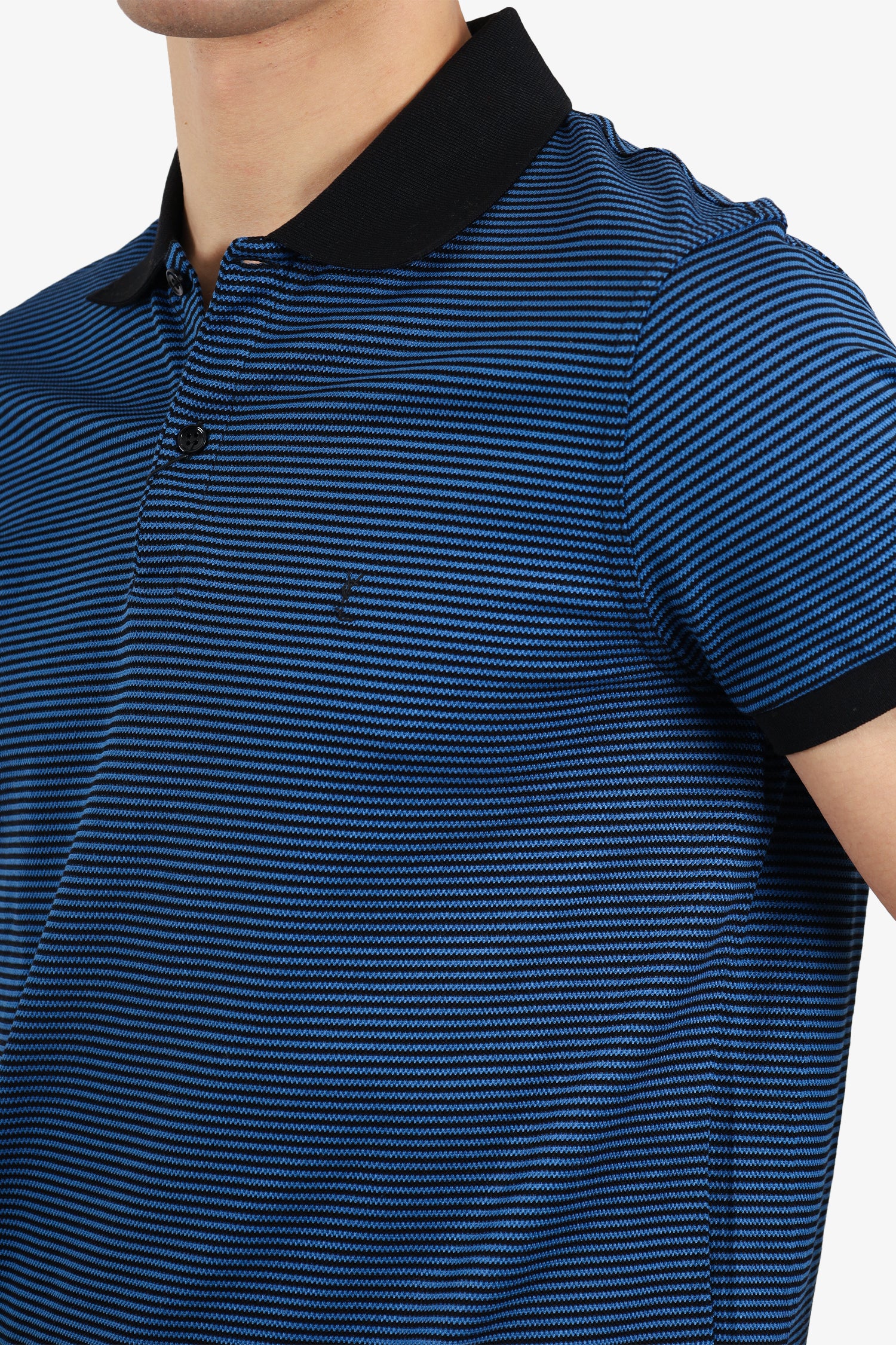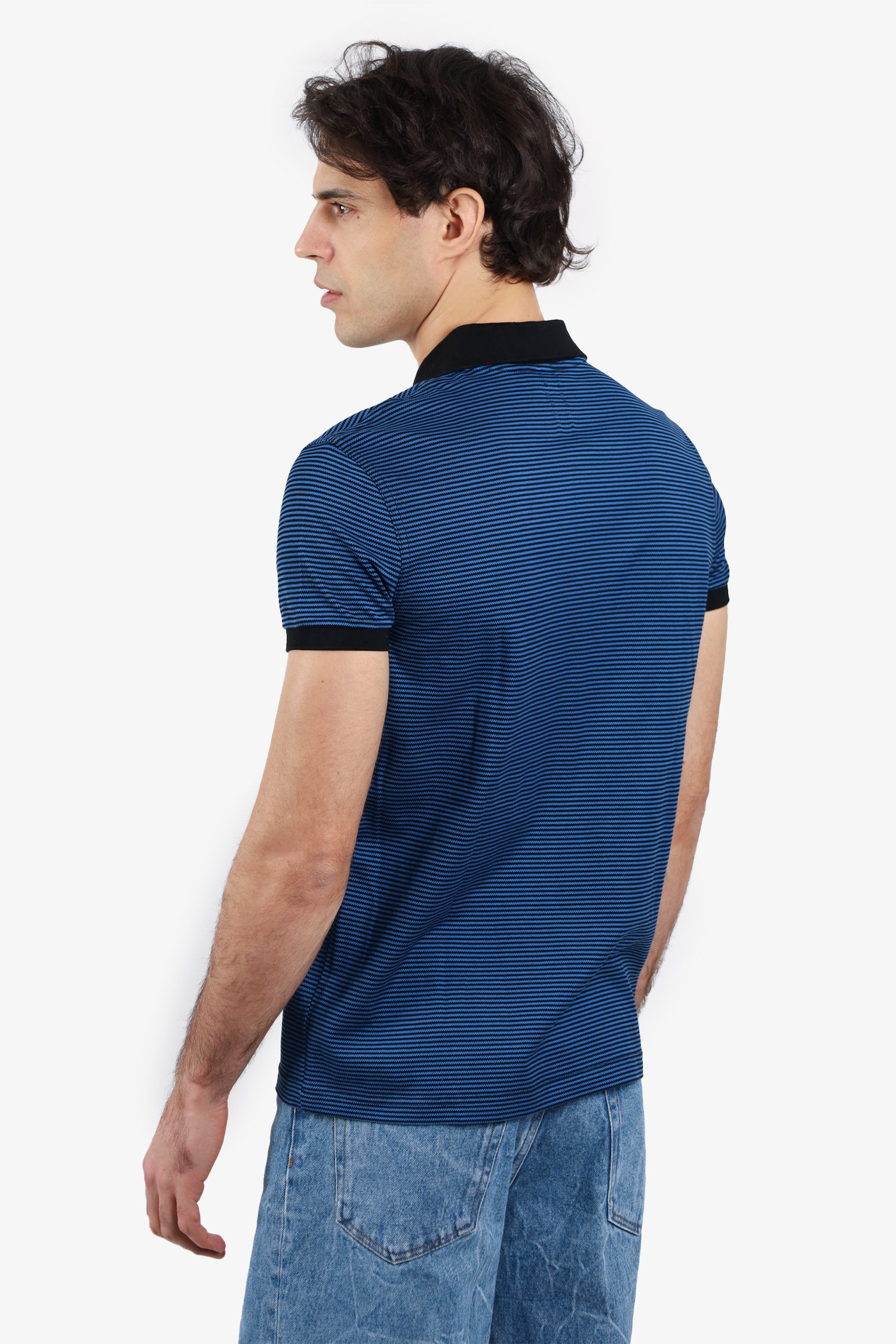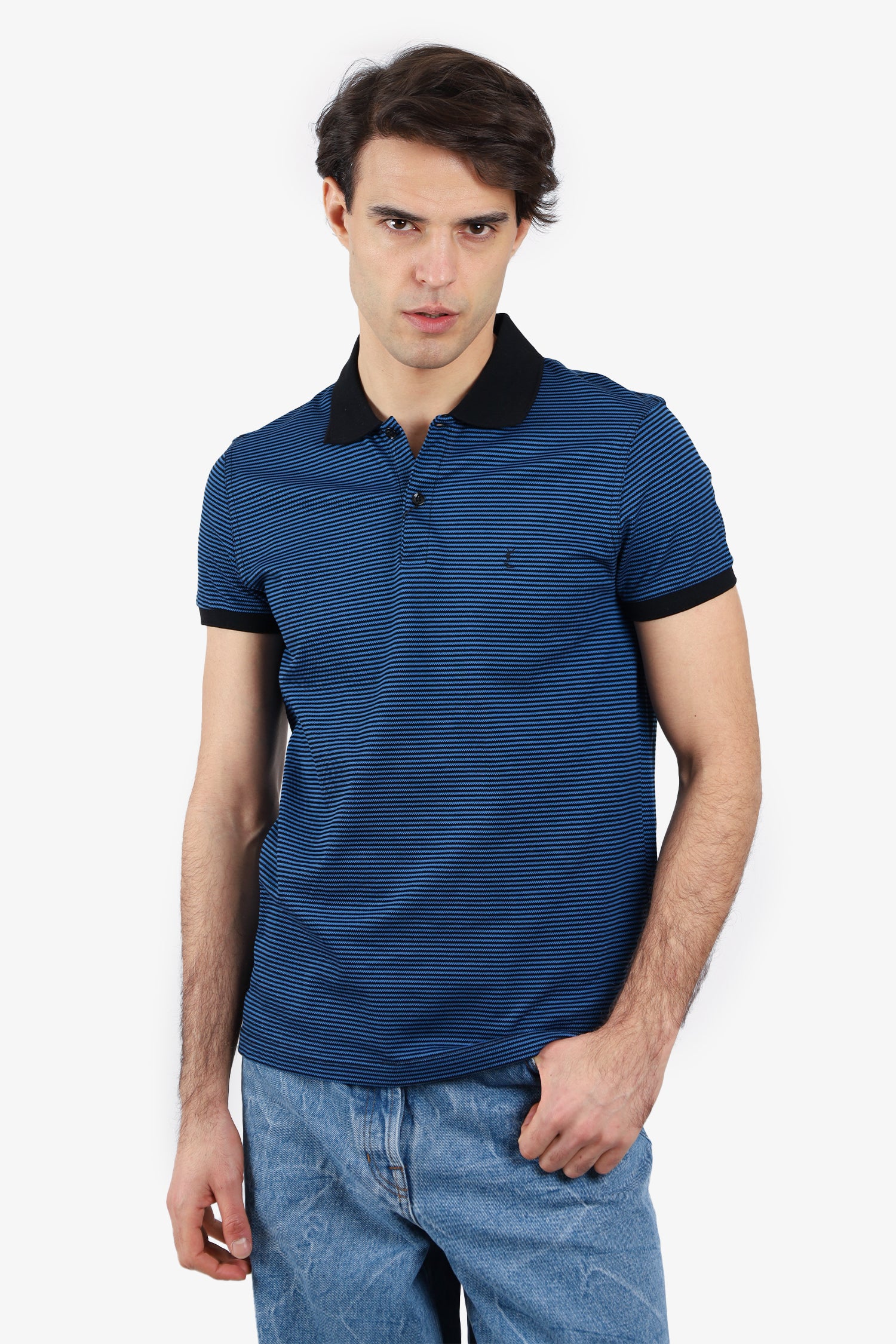 Refresh availabilitySaint Laurent Blue/Black Striped Polo Shirt. Collared neckline. Tonal stitching.