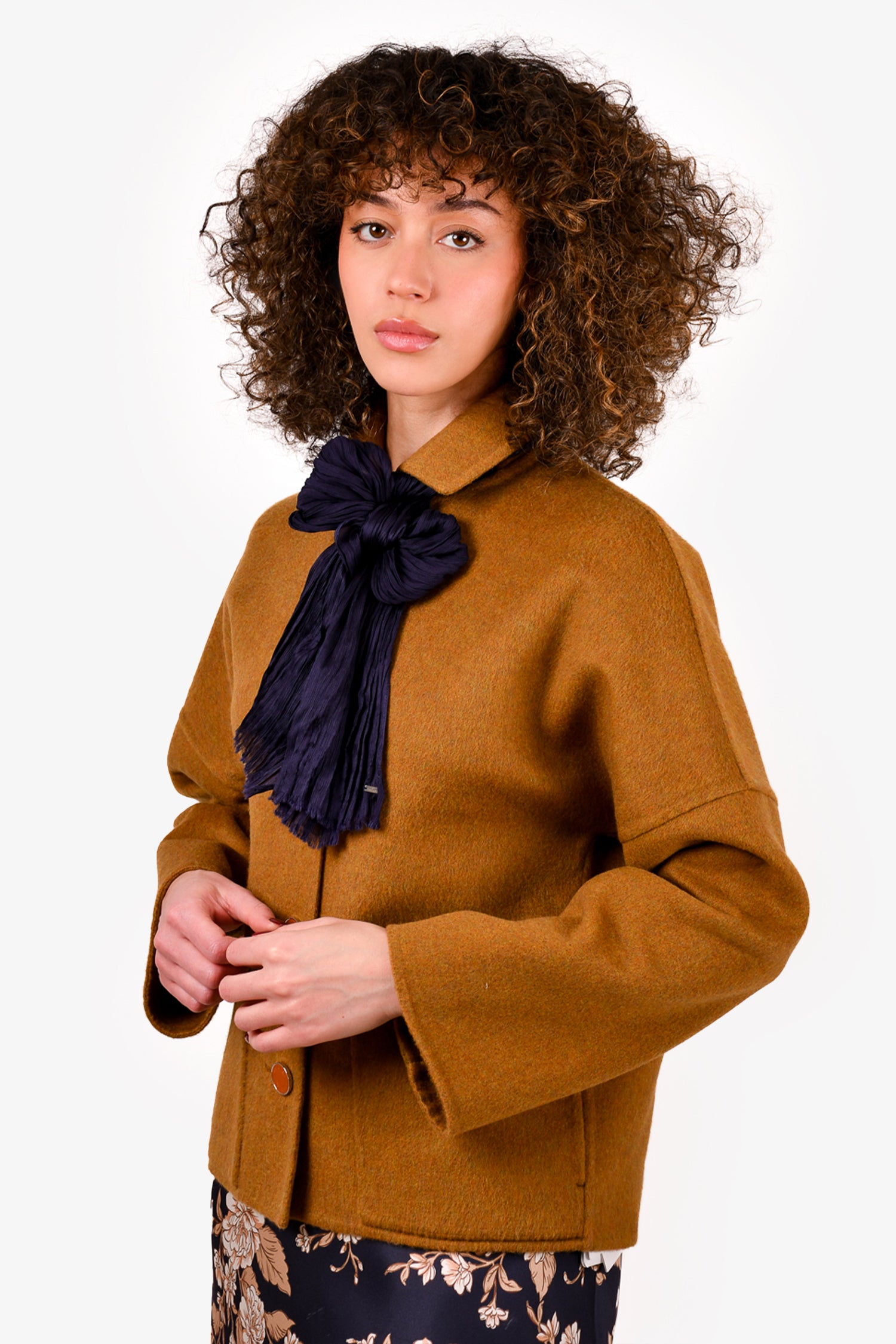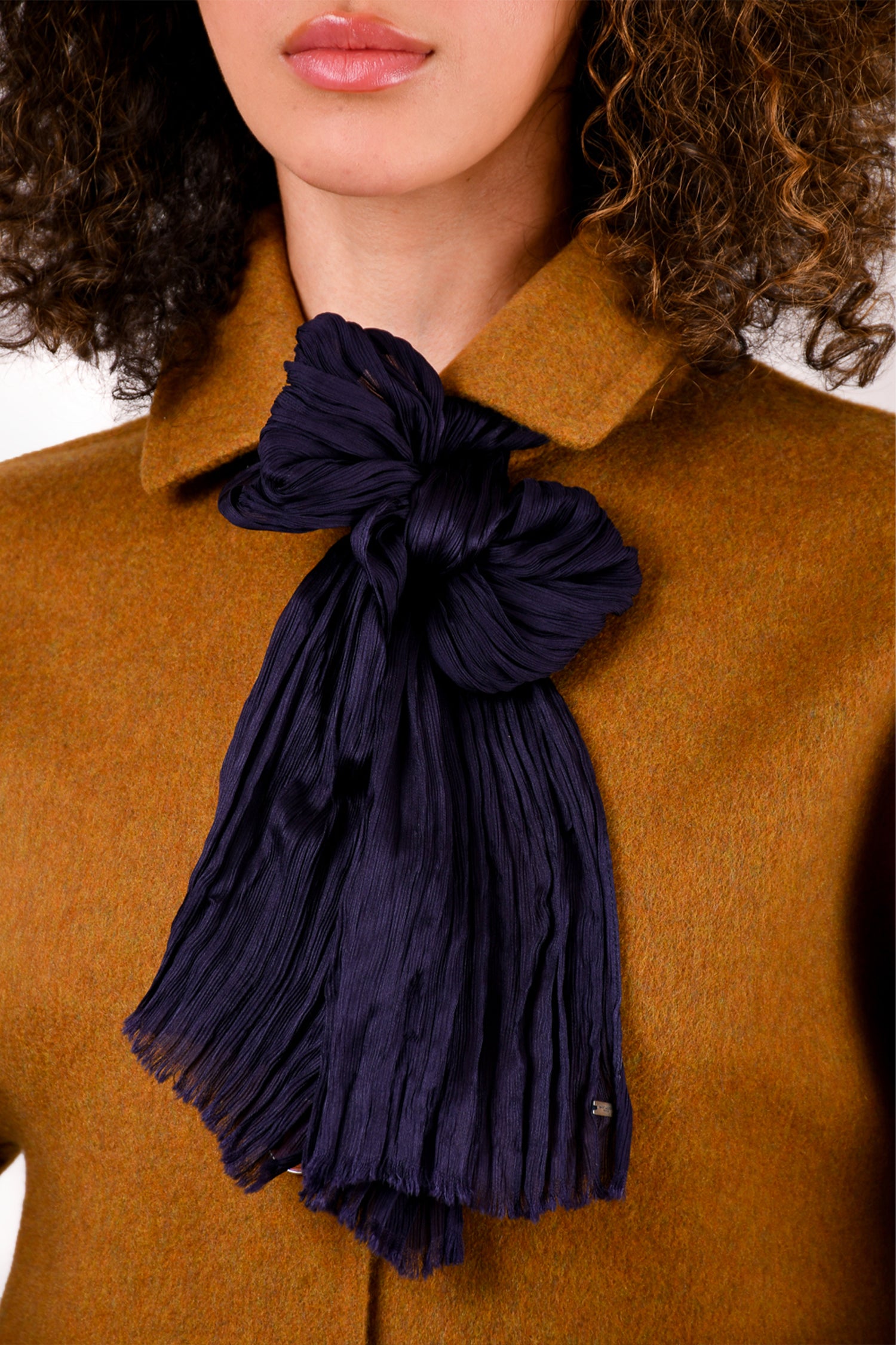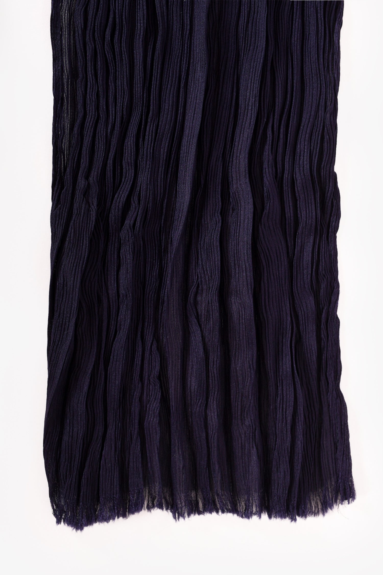 Saint Laurent Navy Blue Silk Pleated Scarf