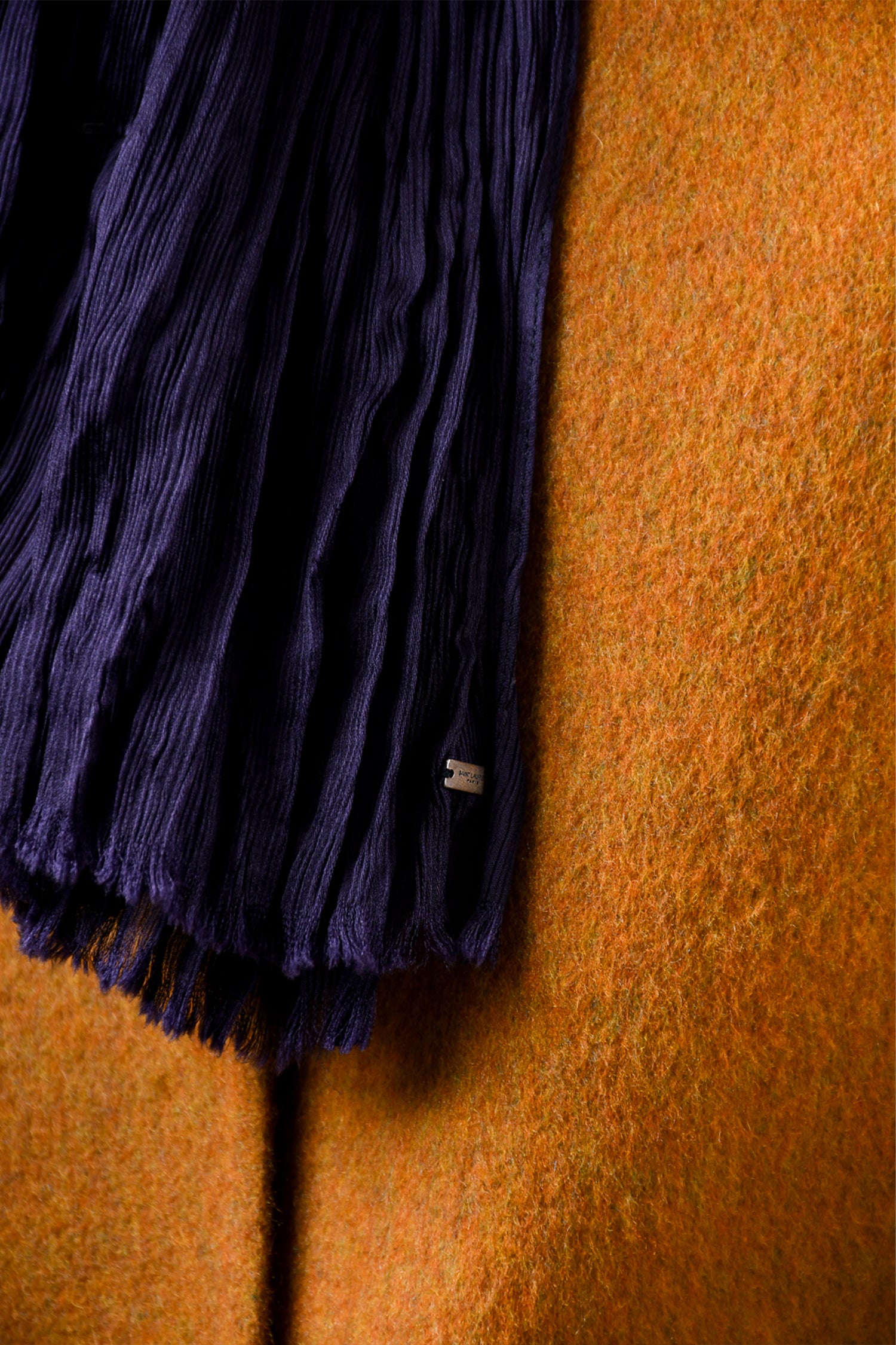 Refresh availabilitySaint Laurent Navy Blue Silk Pleated Scarf. Tonal stitching.