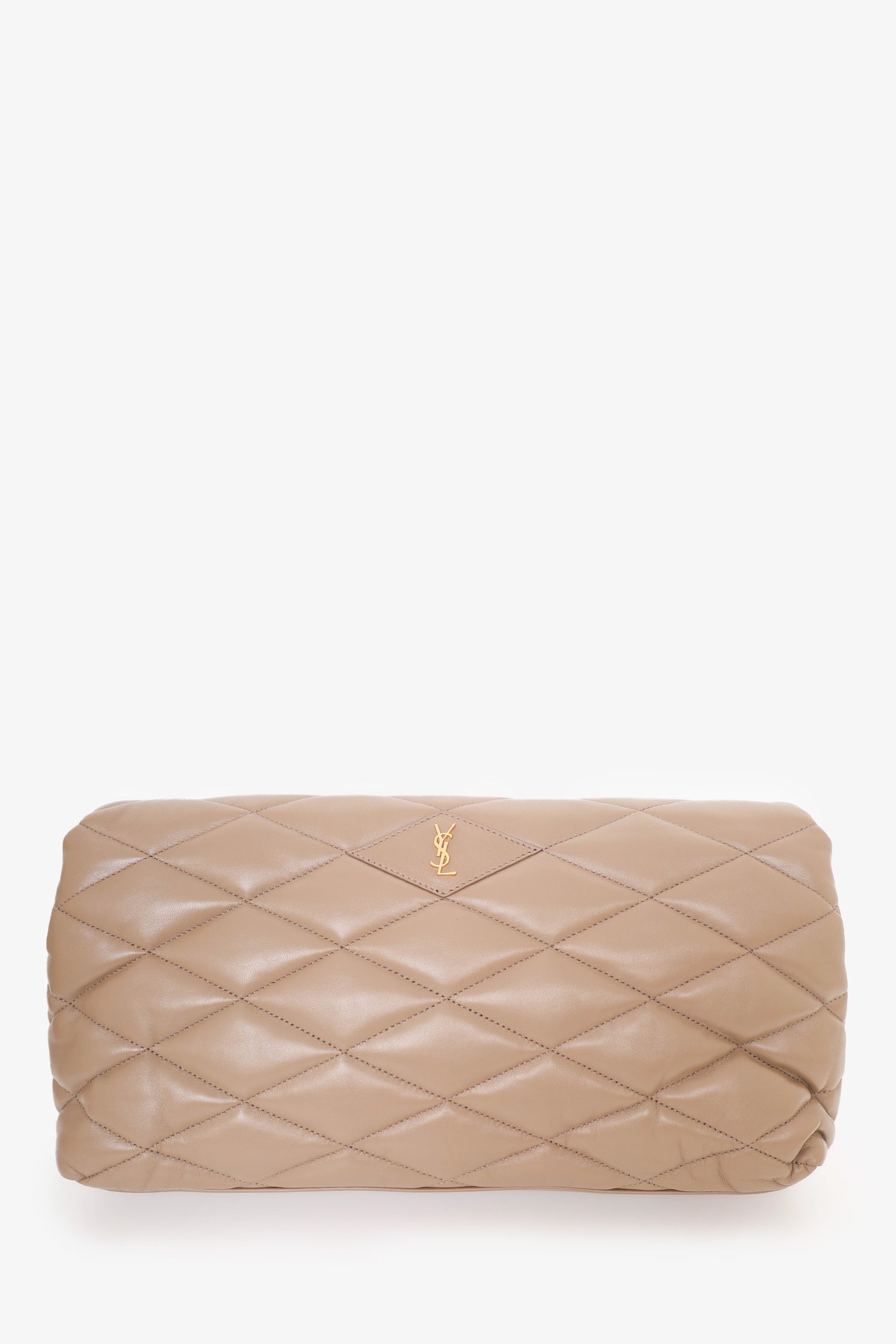 Refresh availabilitySaint Laurent Brown Lambskin Quilted Sade Puffer Envelope Clutch. Interior zip closure pocket. Rear logo embellishment. Gold-tone hardware. Tonal stitching.