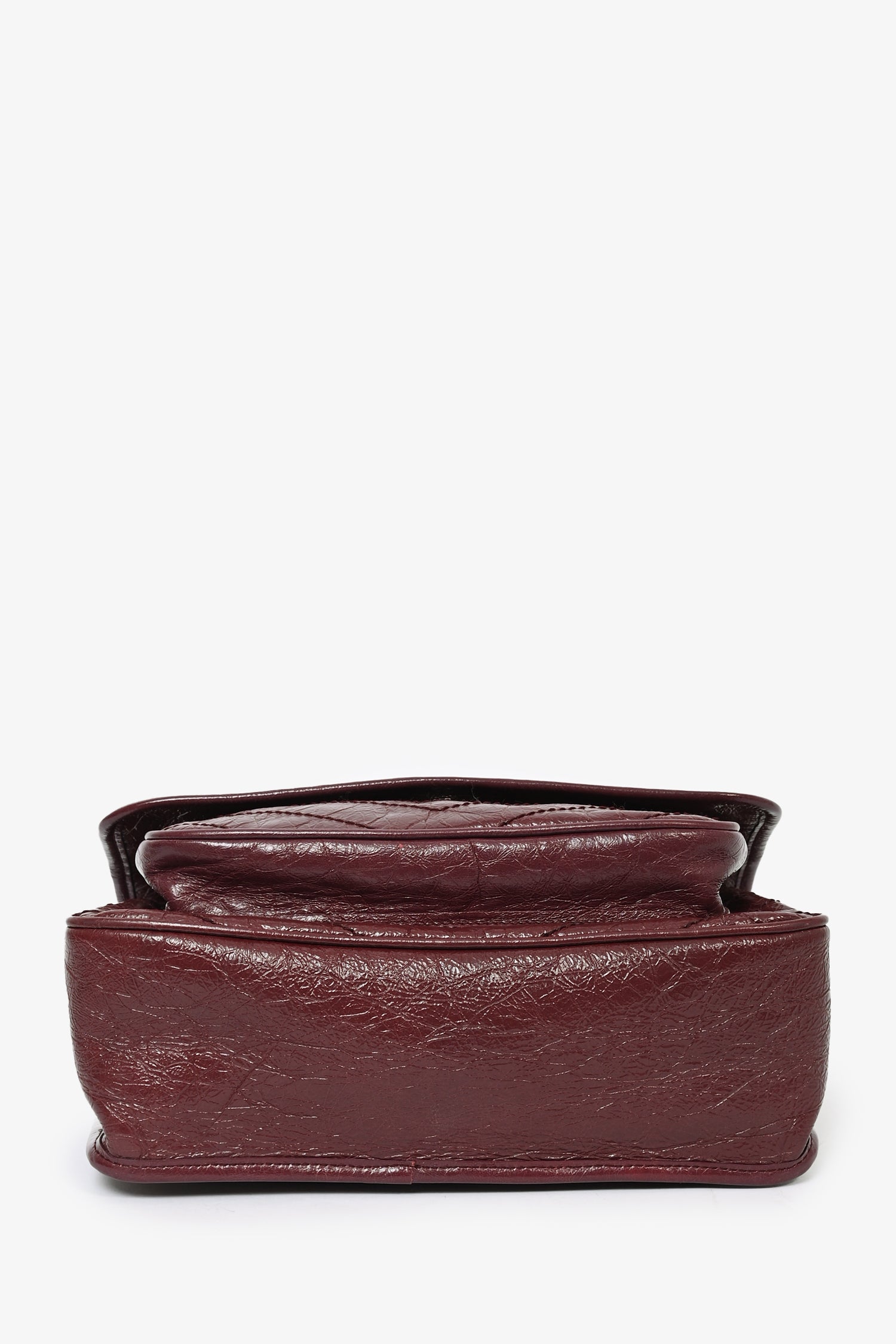 Saint Laurent Maroon Crinkled Leather Medium 'Niki' Shoulder Bag