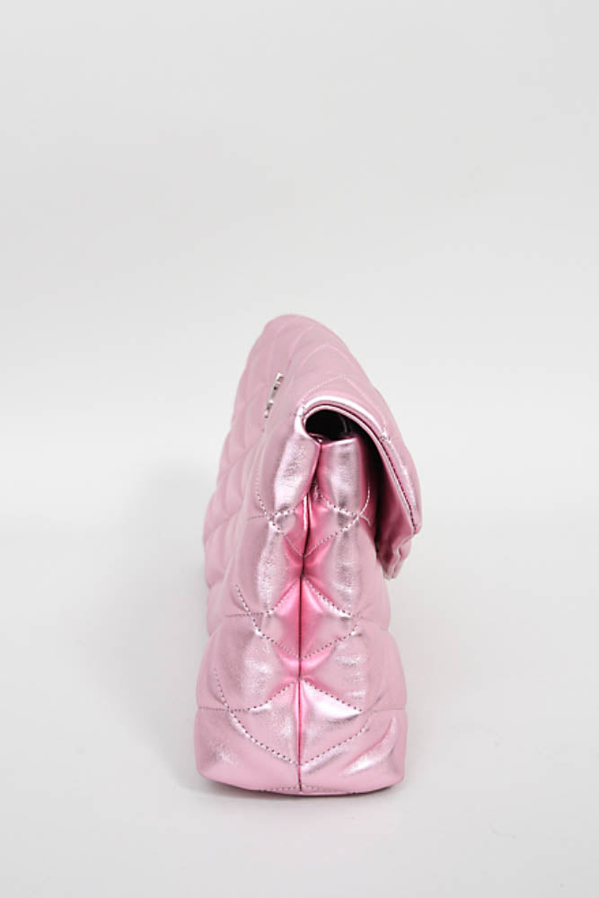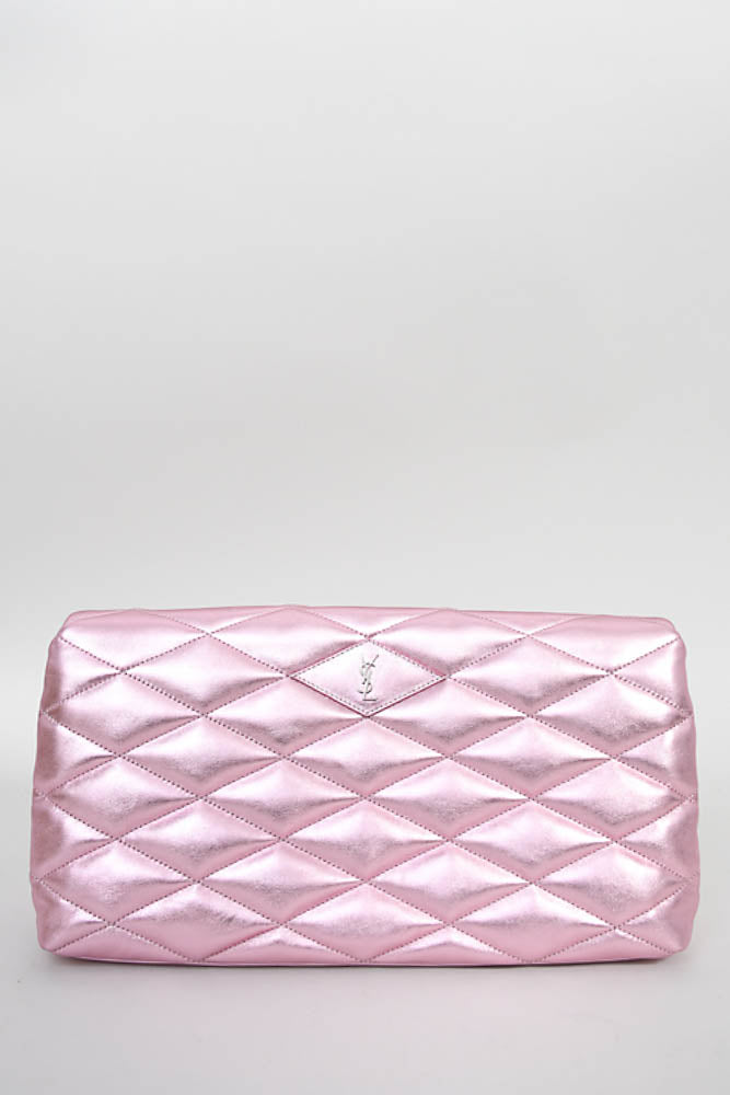 Saint Laurent Pink Metallic Envelope Quilted Clutch