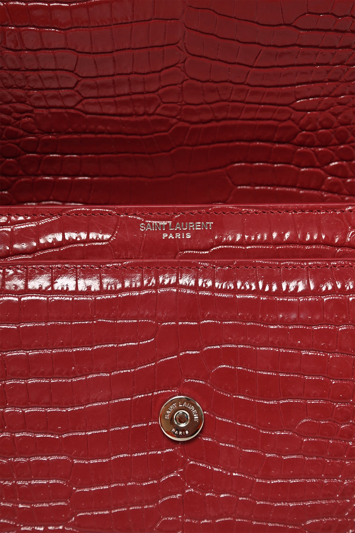 Saint Laurent Red Croc Embossed Leather 'Sunset' Medium Crossbody Bag