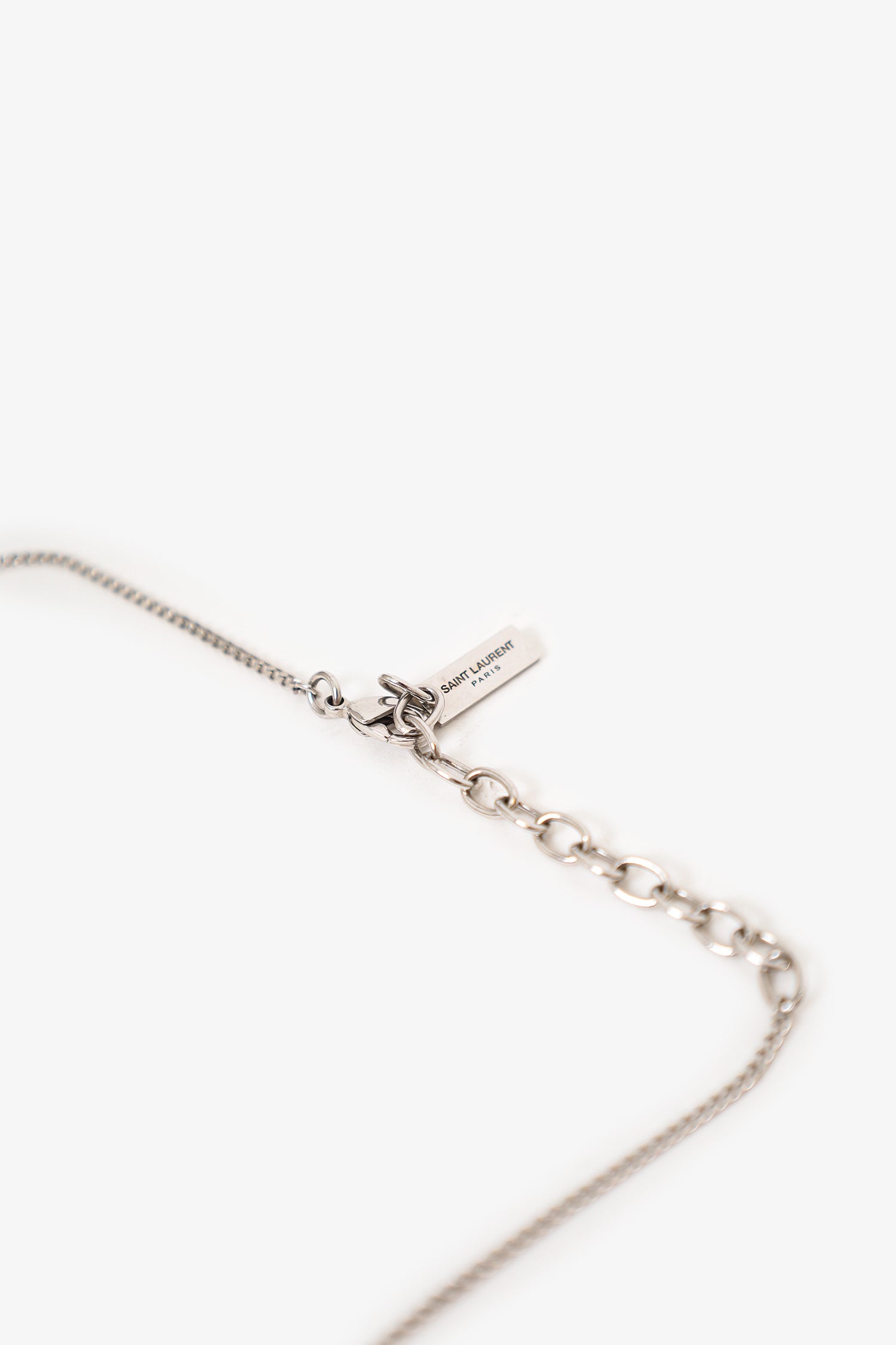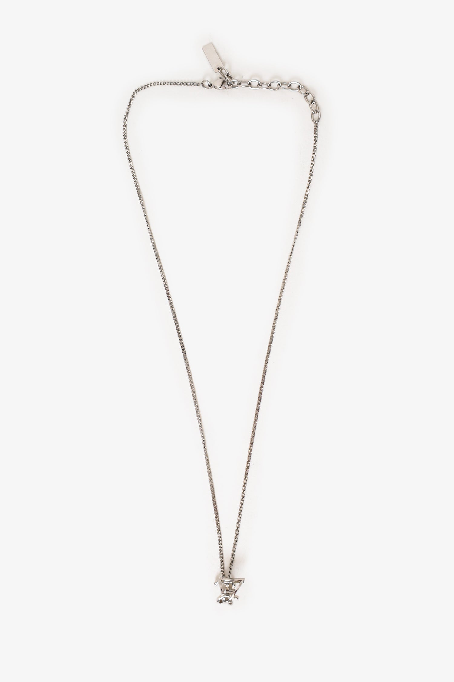 Refresh availabilitySaint Laurent Silver Tone Cassandre Twist Pendant Necklace. Rear lobster-clasp closure. Silver-tone hardware.