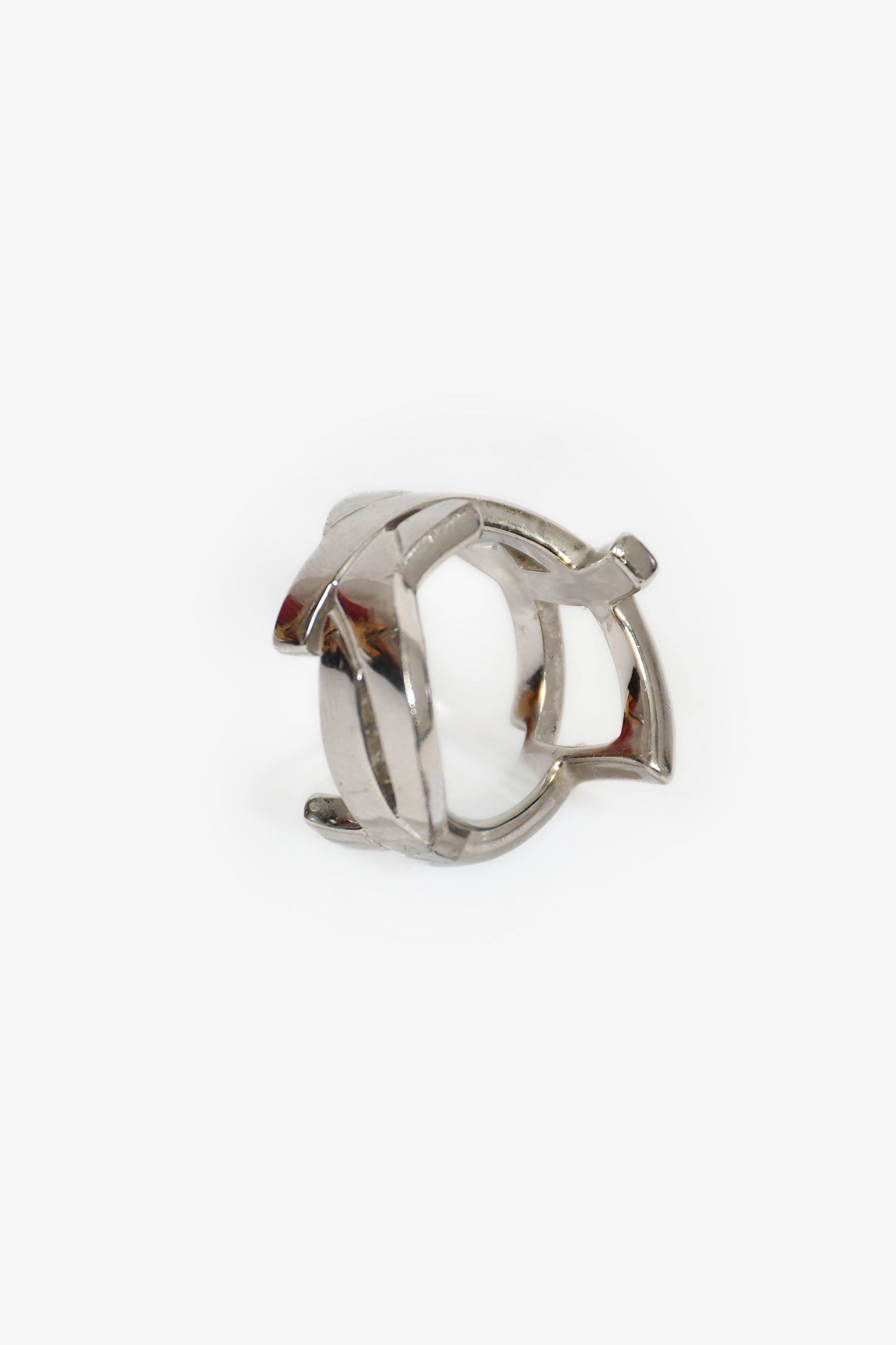 Refresh availabilitySaint Laurent Silver Tone Logo Monogram Ring. 'Cassandre' logo.