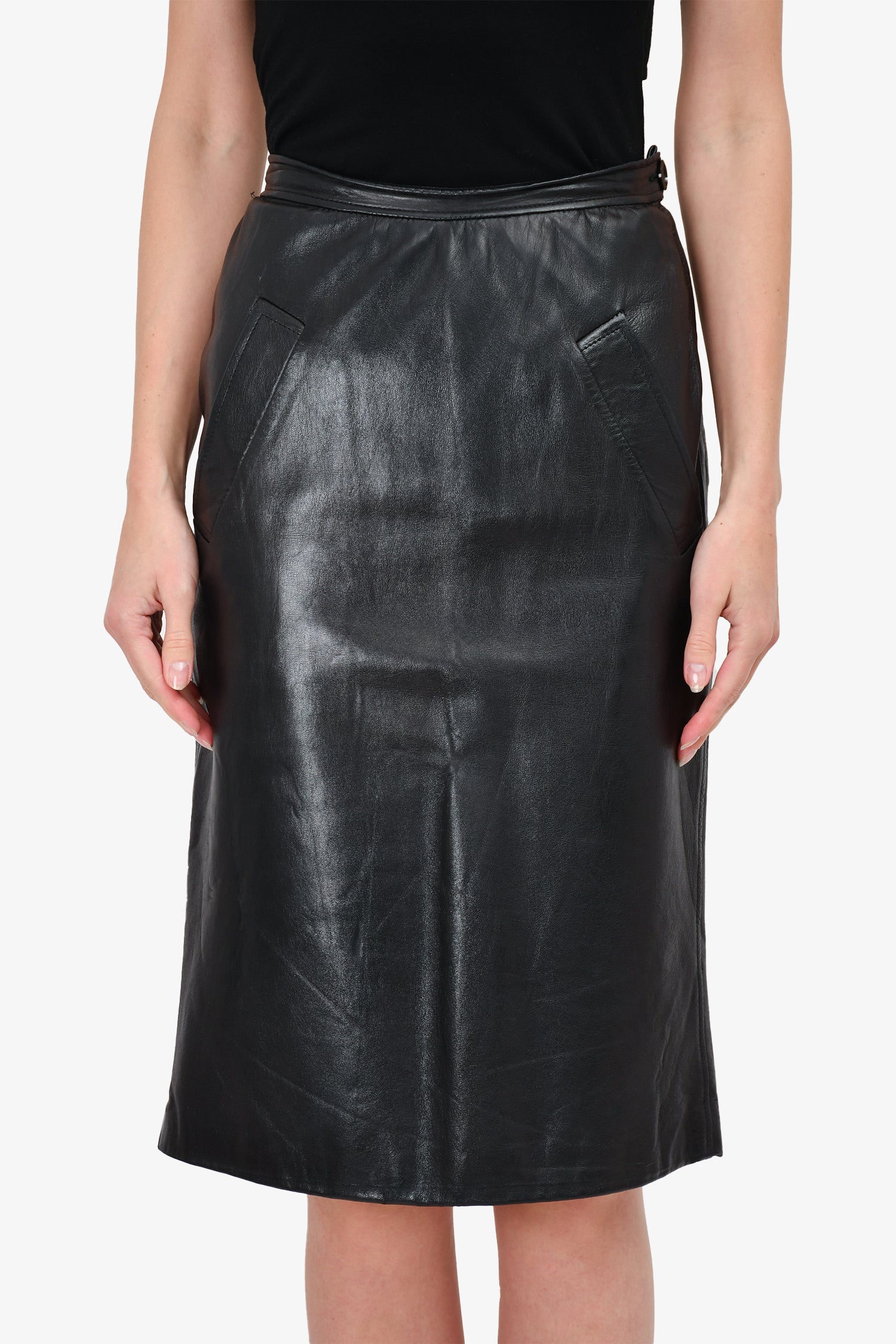 Refresh availabilitySaint Laurent Vintage Leather Skirt. Side zip and button closure. Front pockets. Lined.