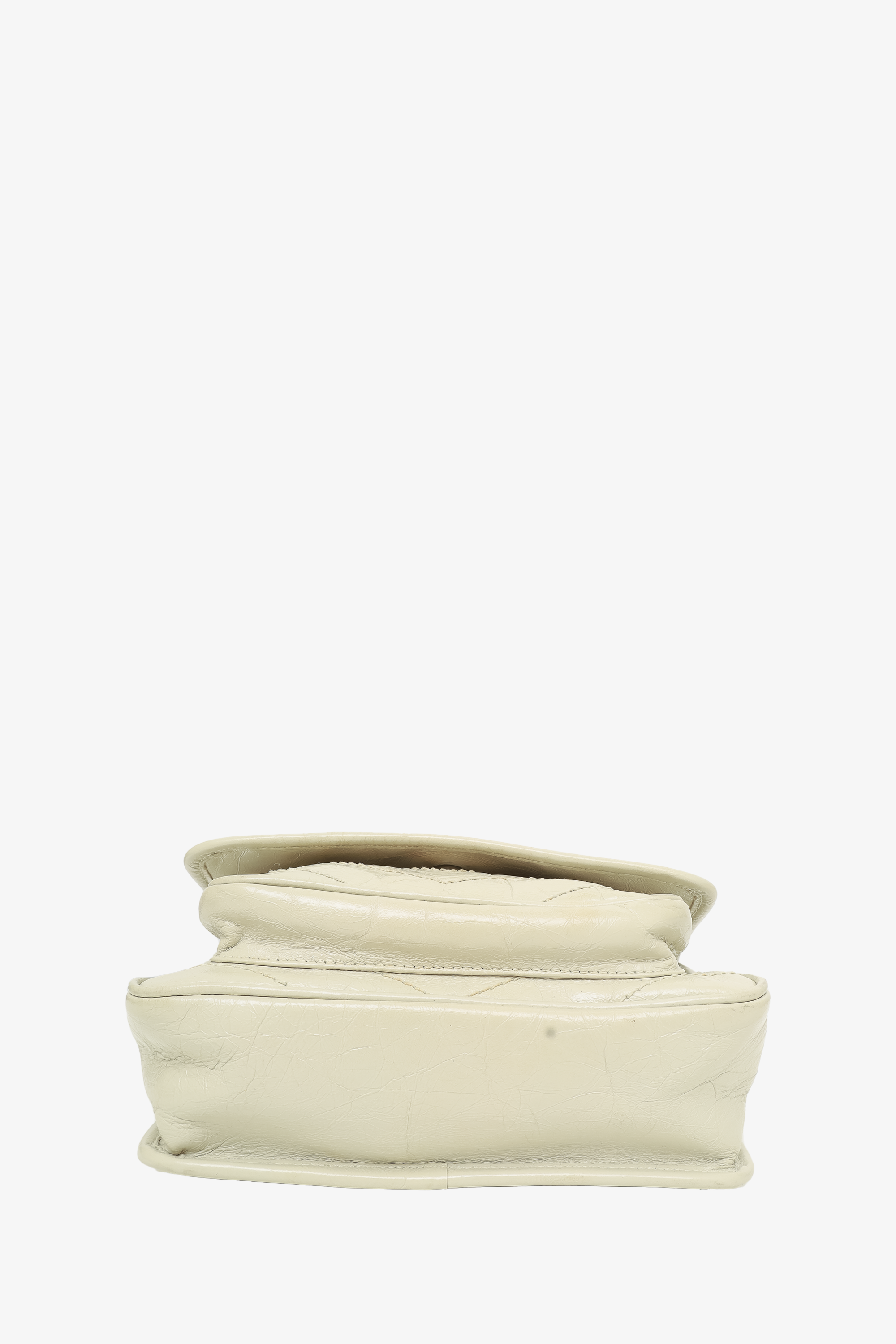 Saint Laurent White Crinkle Leather Baby Niki Shoulder Bag