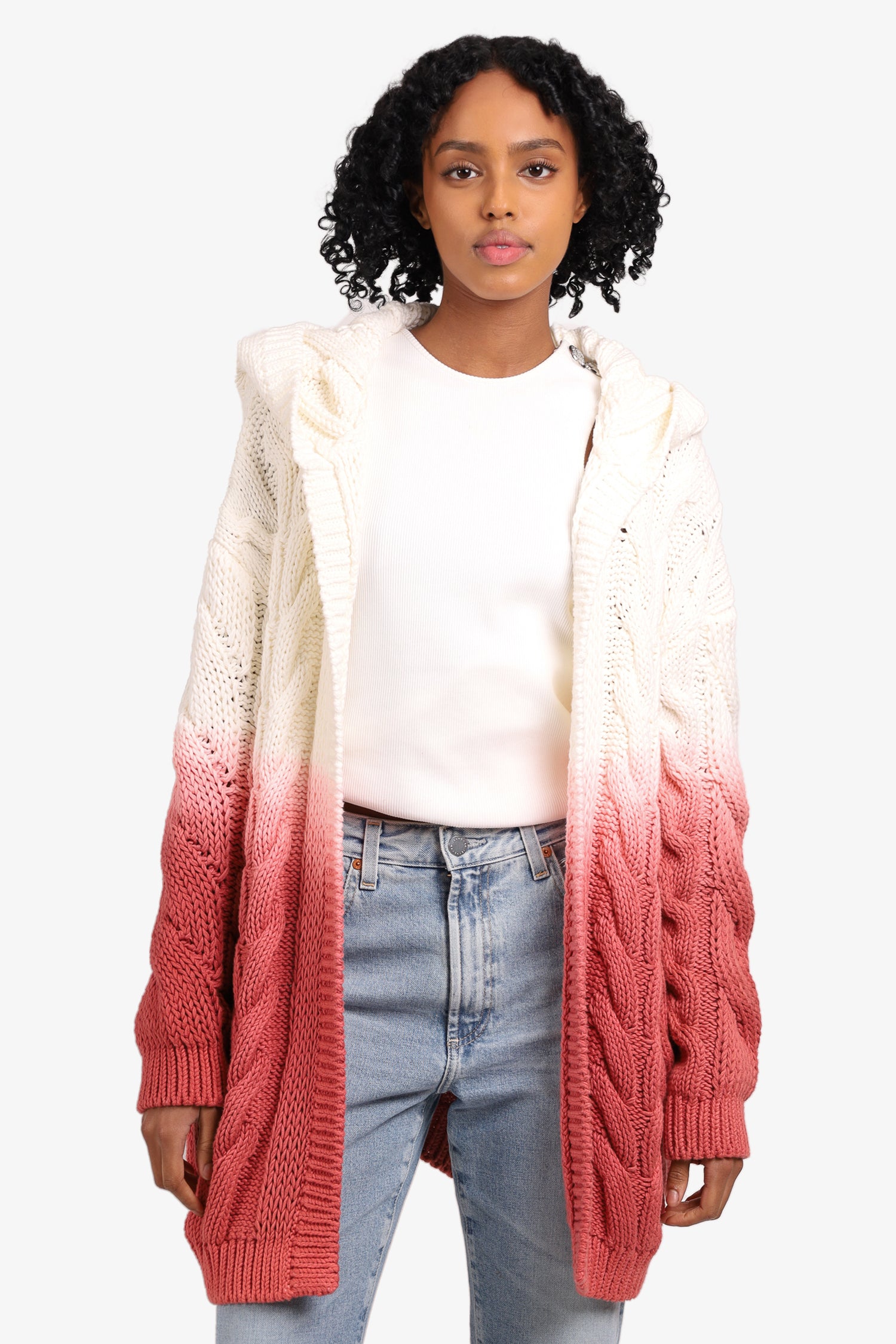 Saint Laurent White / Pink Tie Dye Open Hooded Cardigan. Open front. Dual side pockets. Tonal stitching.