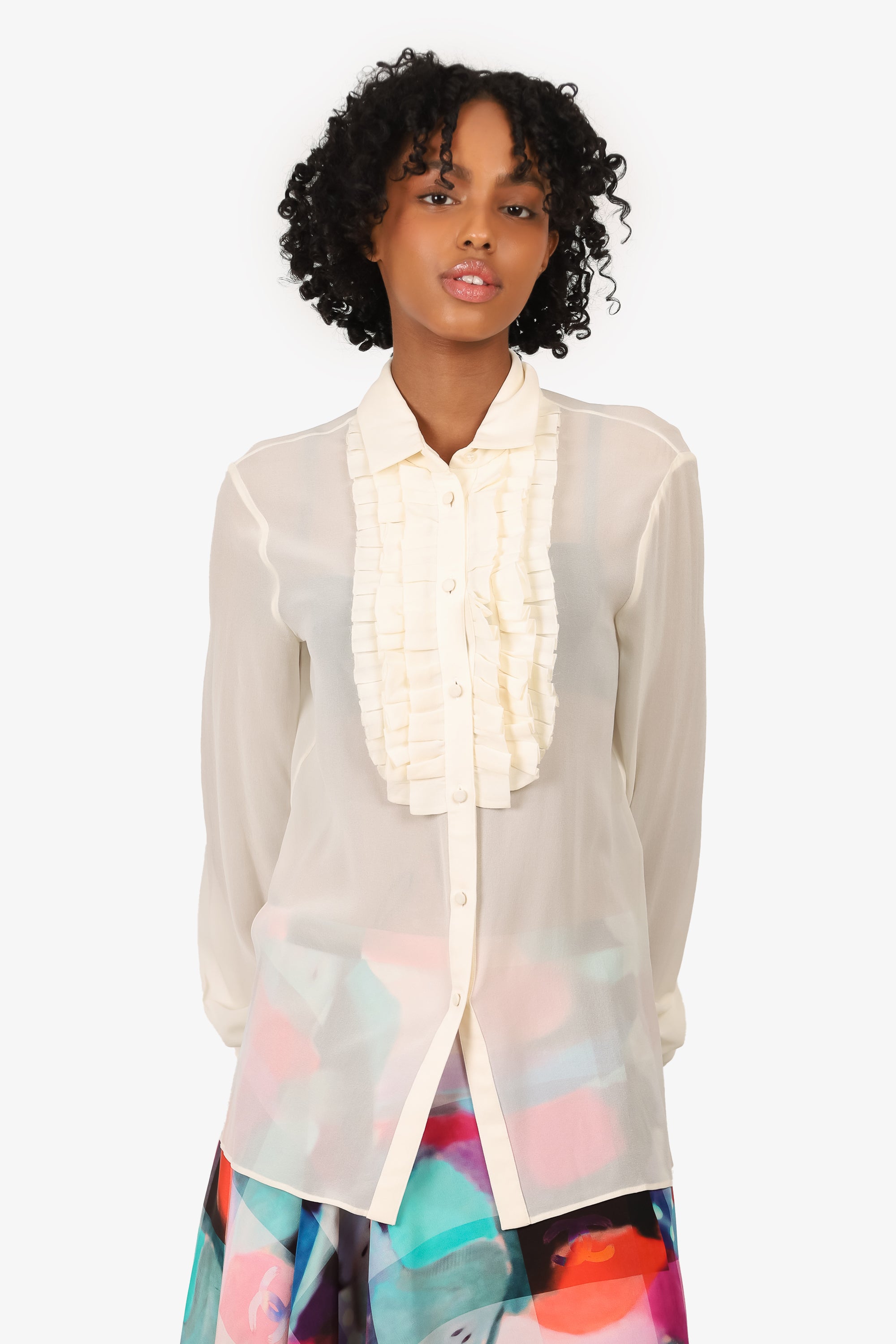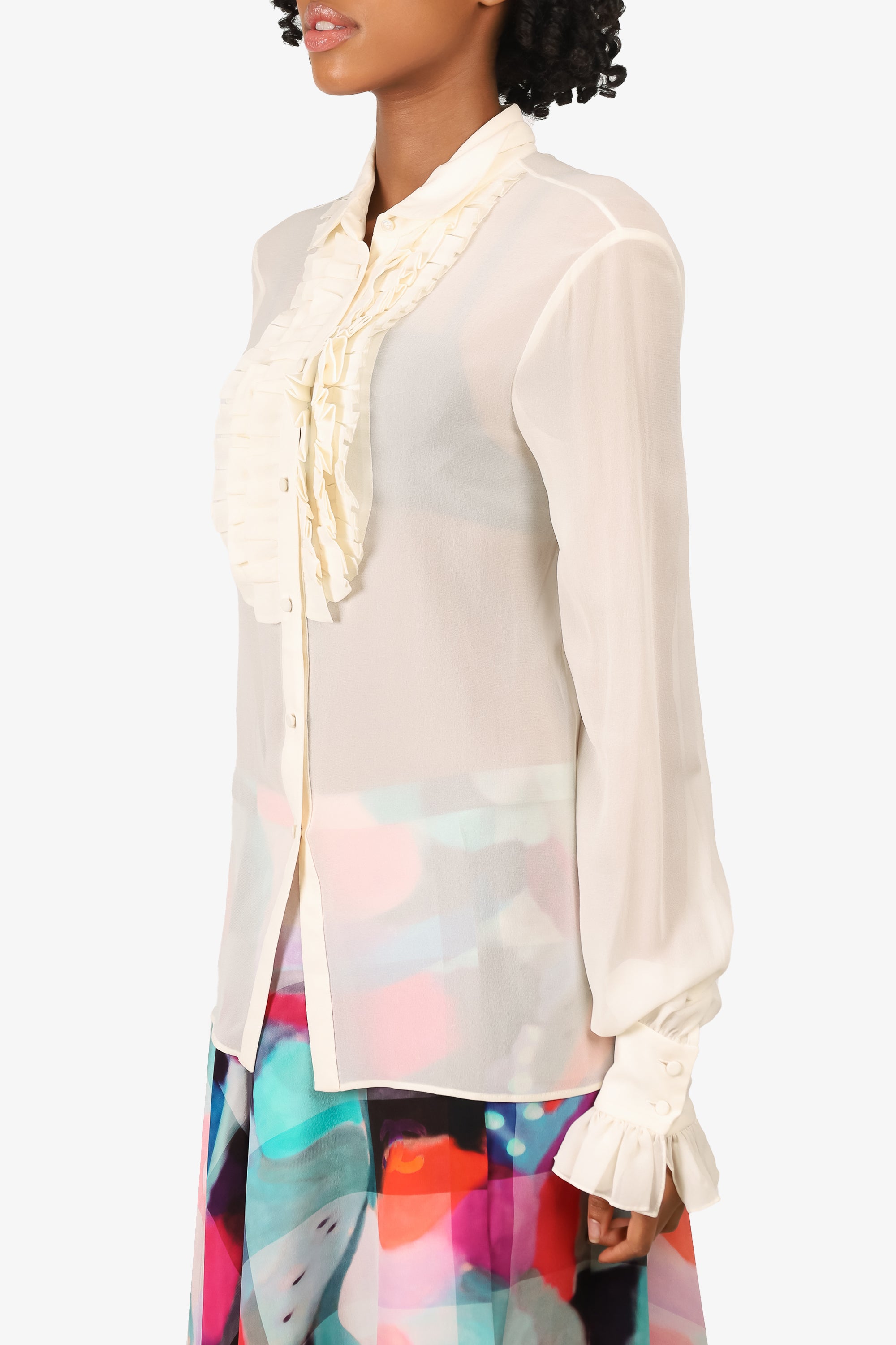 Saint Laurent White Silk Ruffled Blouse Size 36
