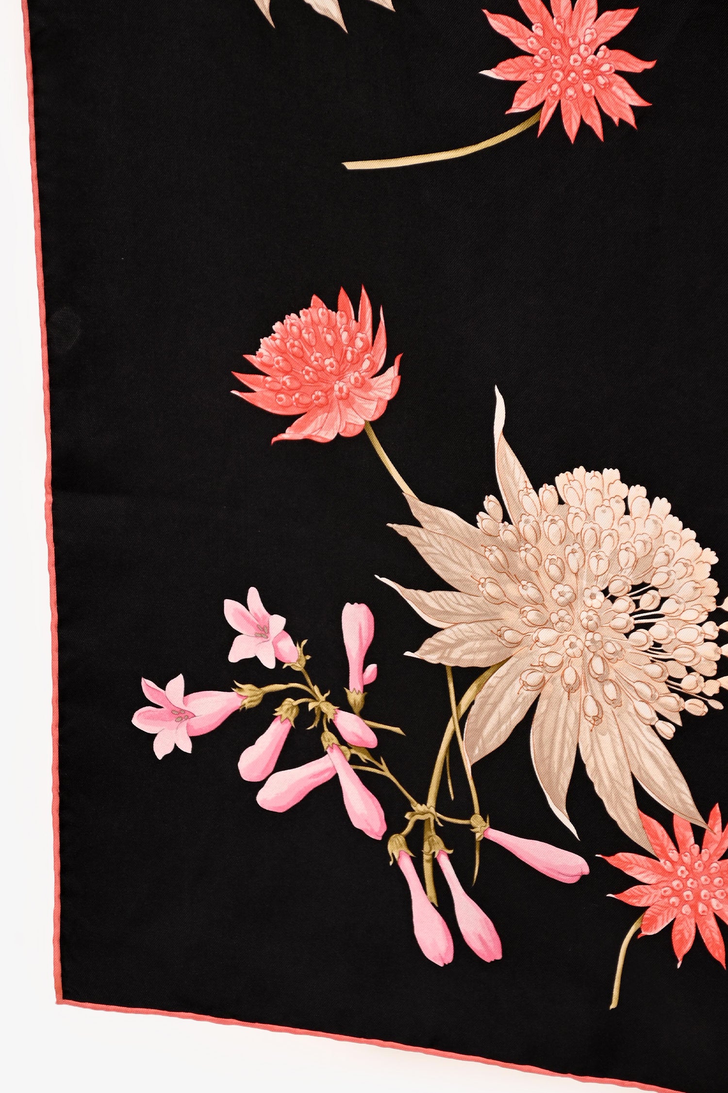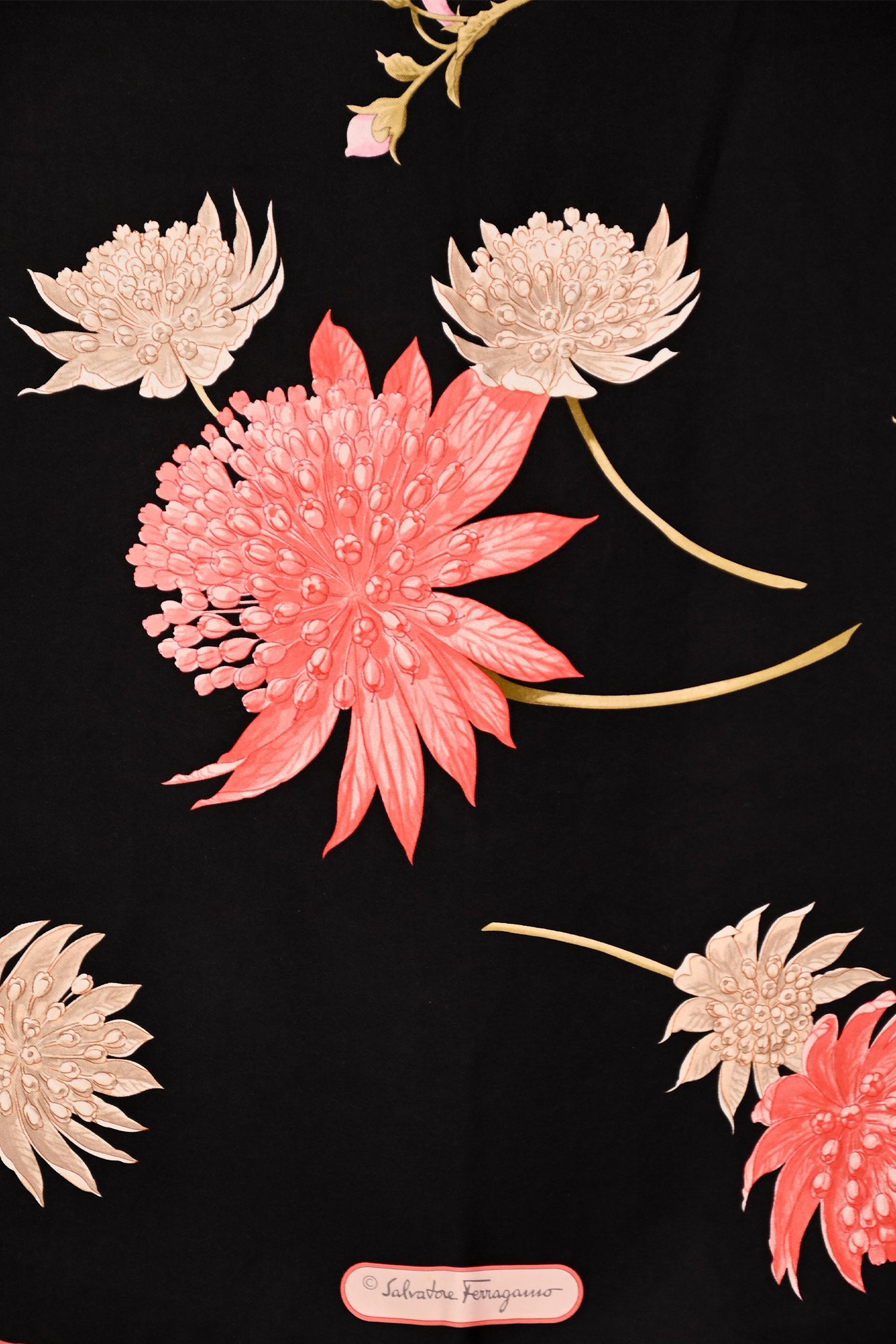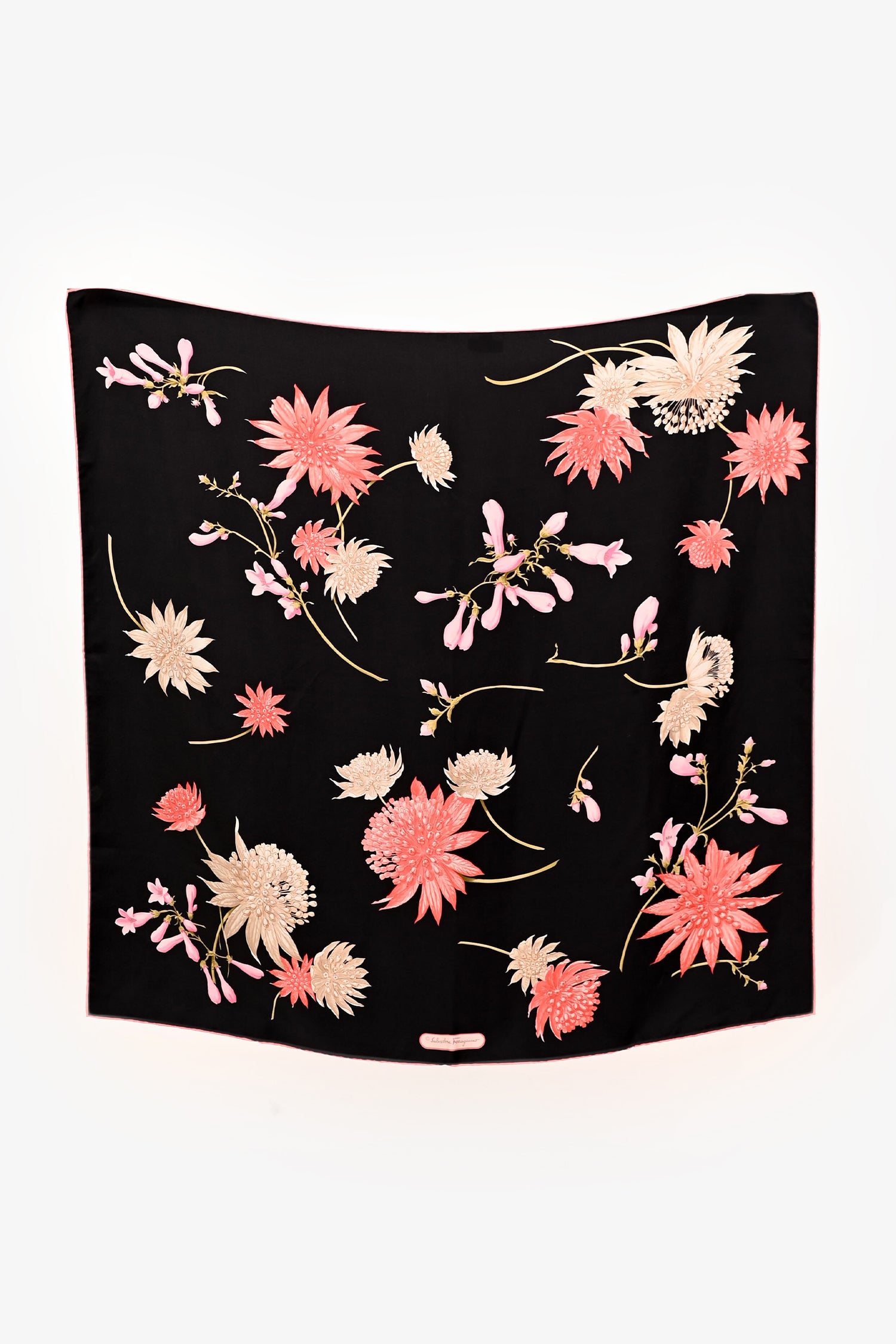 Refresh availabilitySalvatore Ferragamo Black Floral Square Scarf. Tonal stitching.