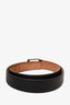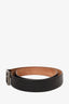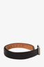 Salvatore Ferragamo Black Grained Leather Silver Square Buckle Belt Size 105