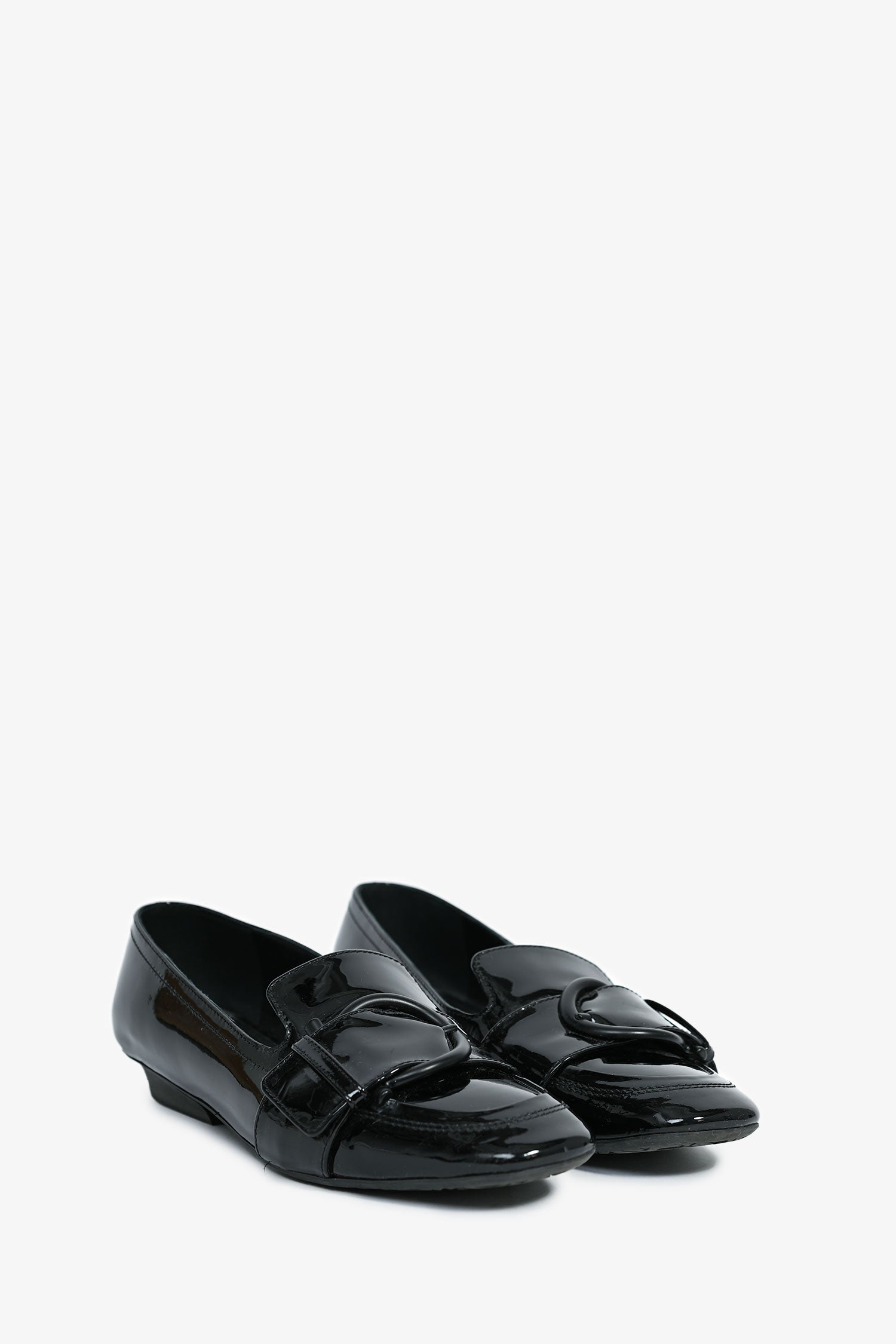 Salvatore Ferragamo Black Patent Leather Large Buckle 'Bonnie' Loafers Size 8