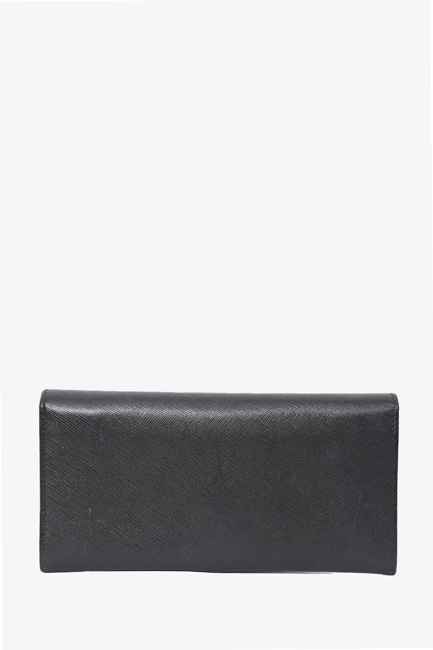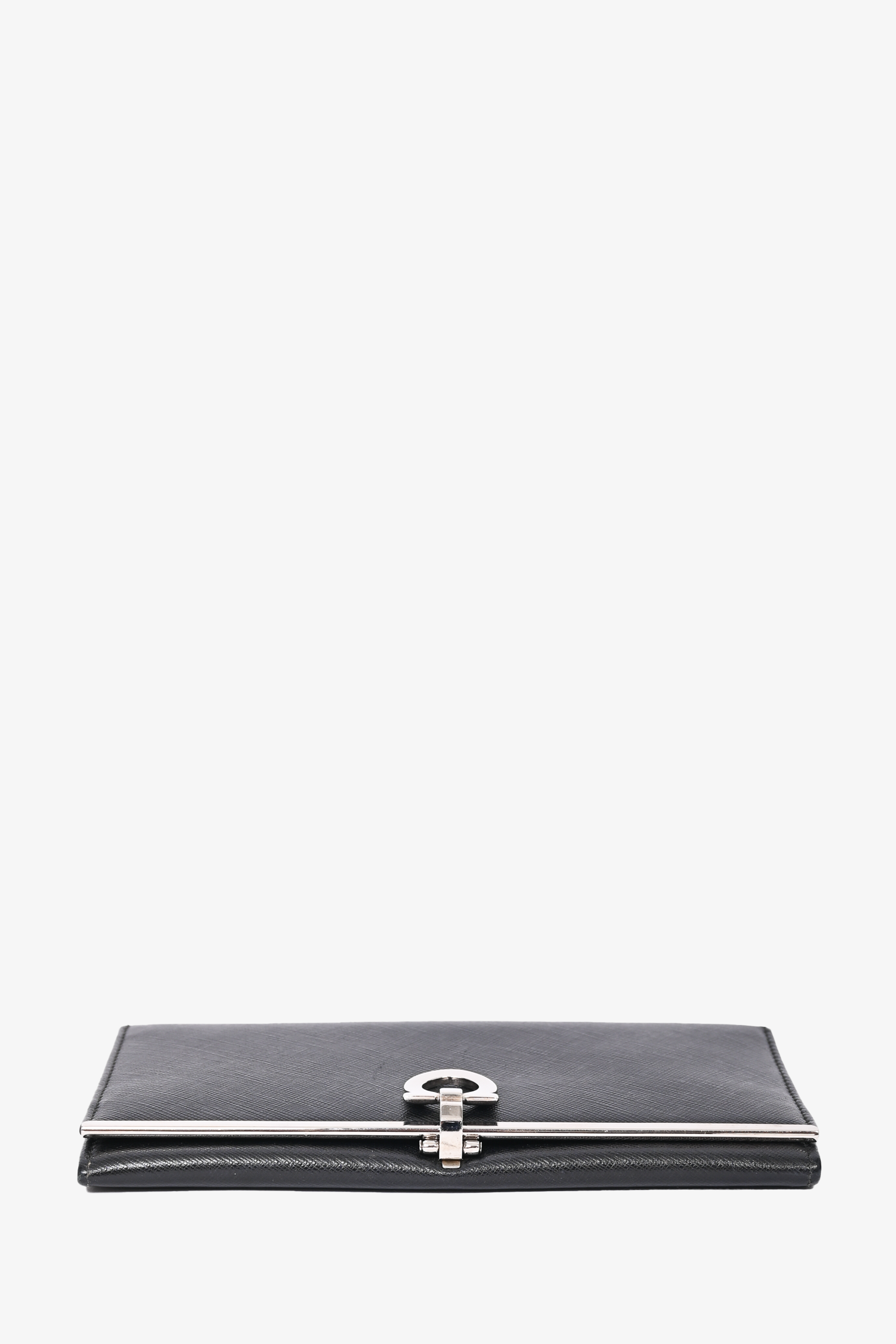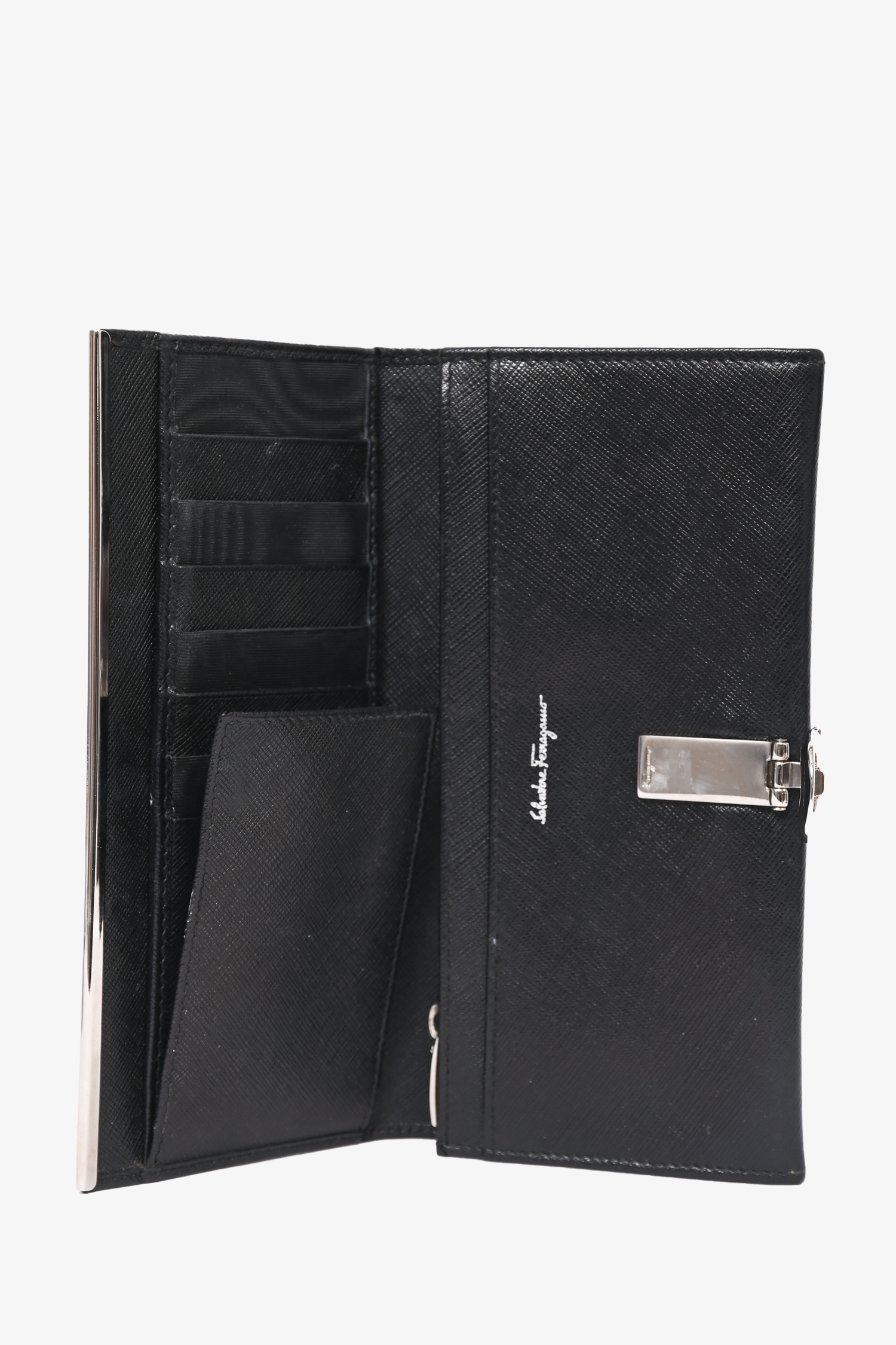 Salvatore Ferragamo Black Saffiano Leather Silver Gancini Closure Wallet