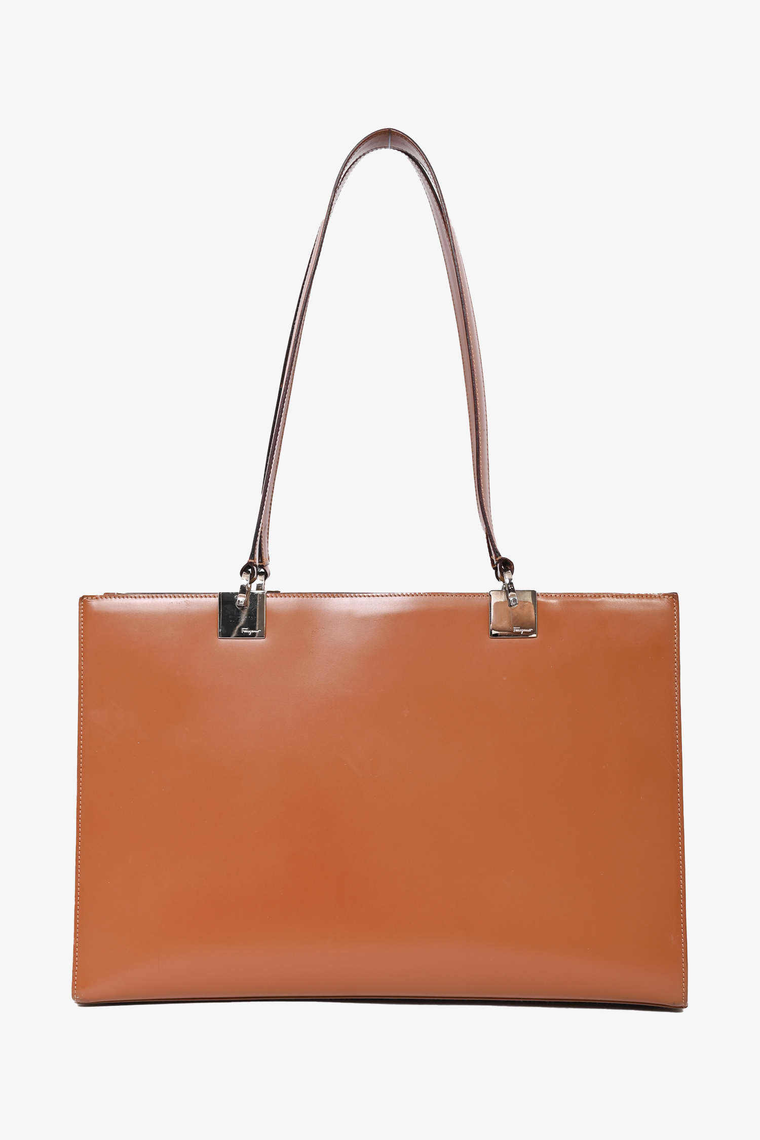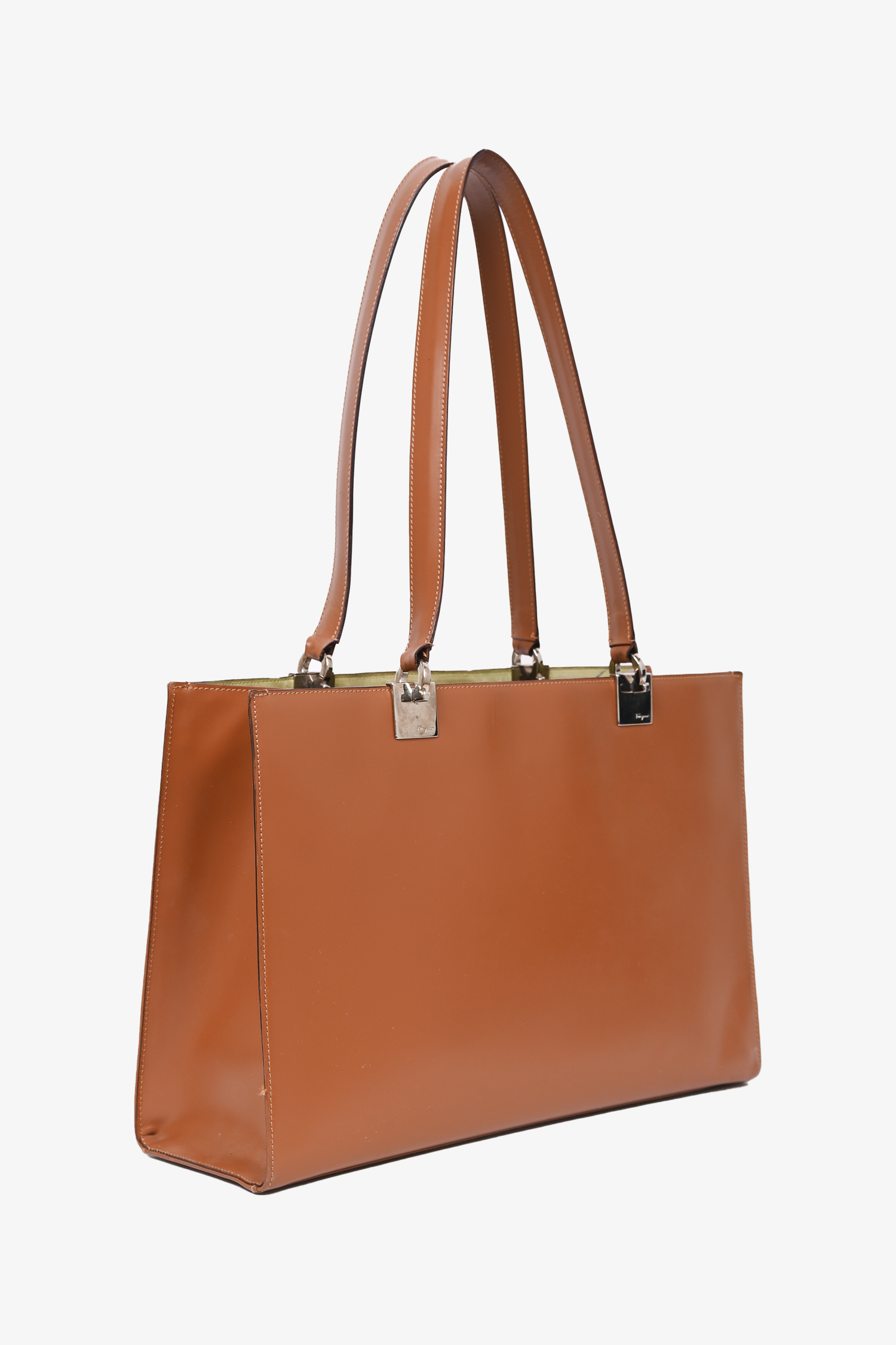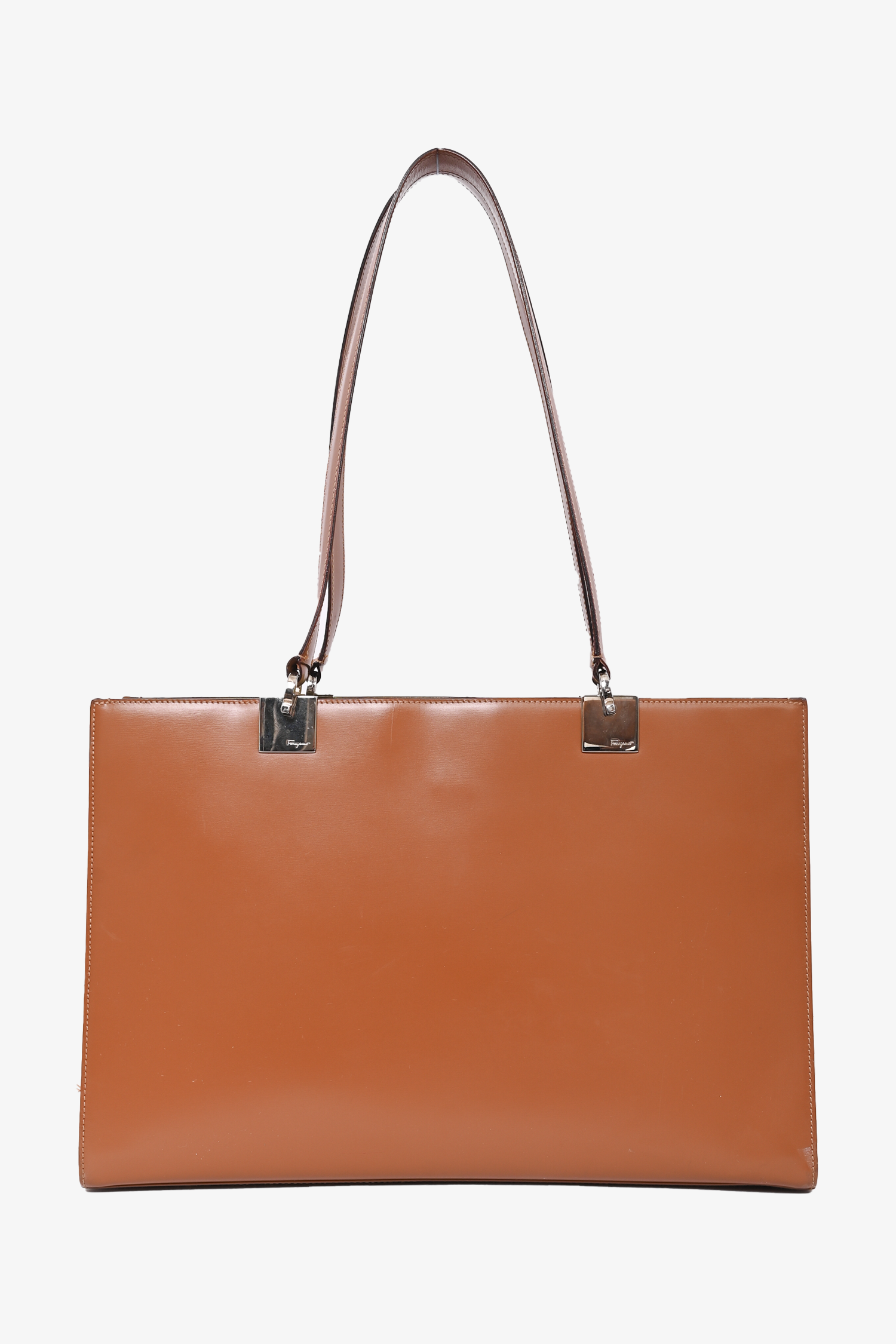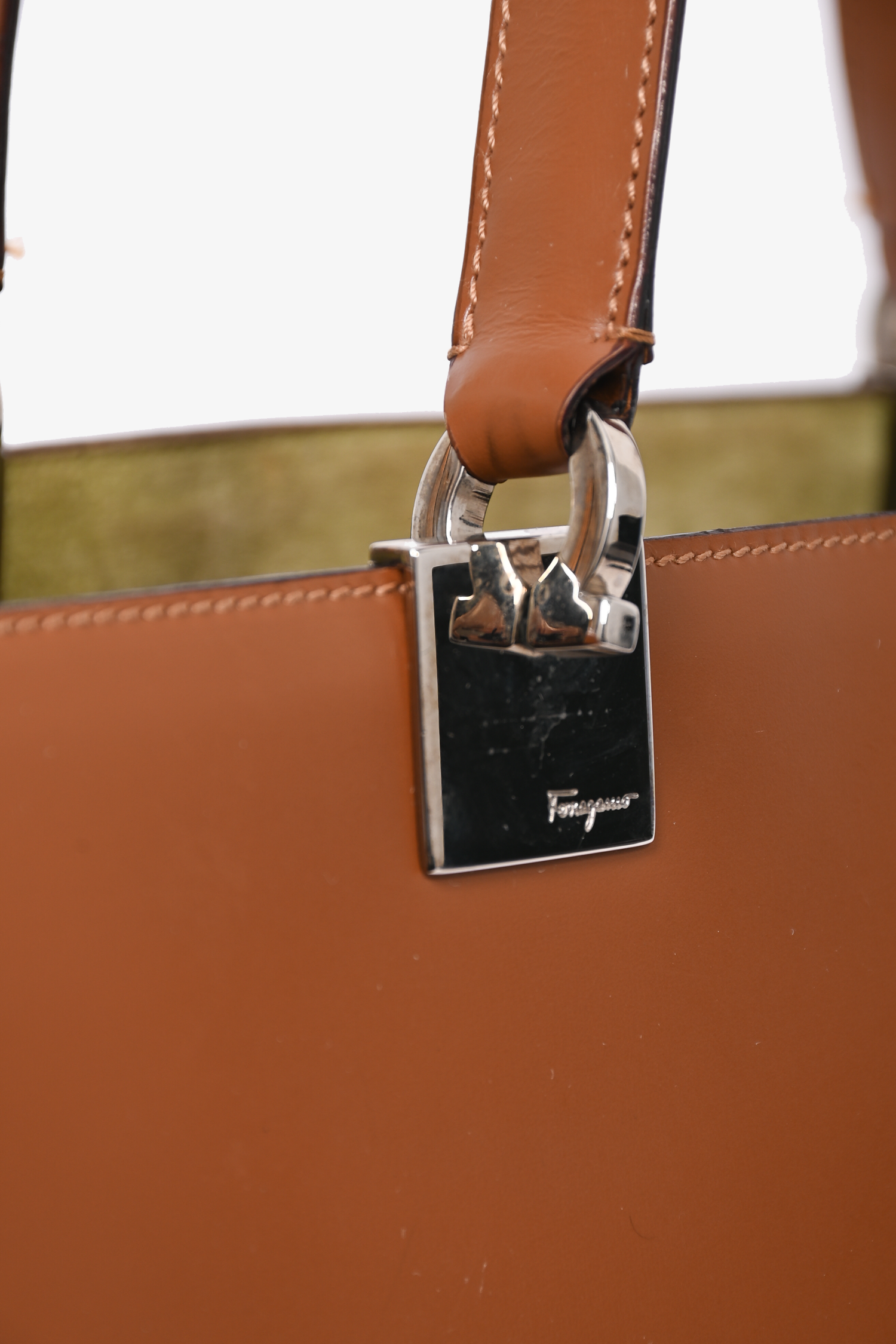 Salvatore Ferragamo Brown Leather Tote With Suede Interior