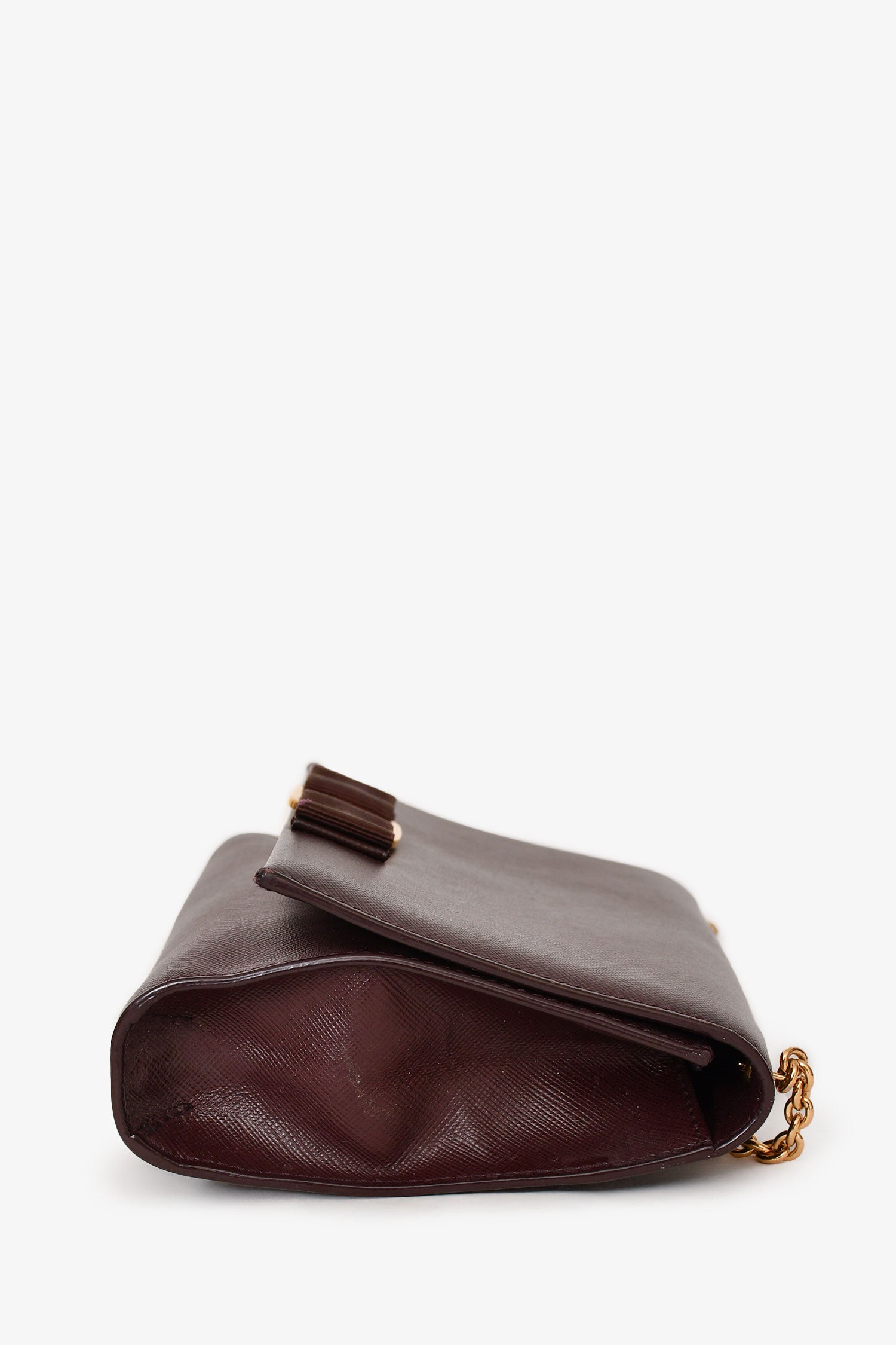 Salvatore Ferragamo Burgundy Leather Bow Crossbody